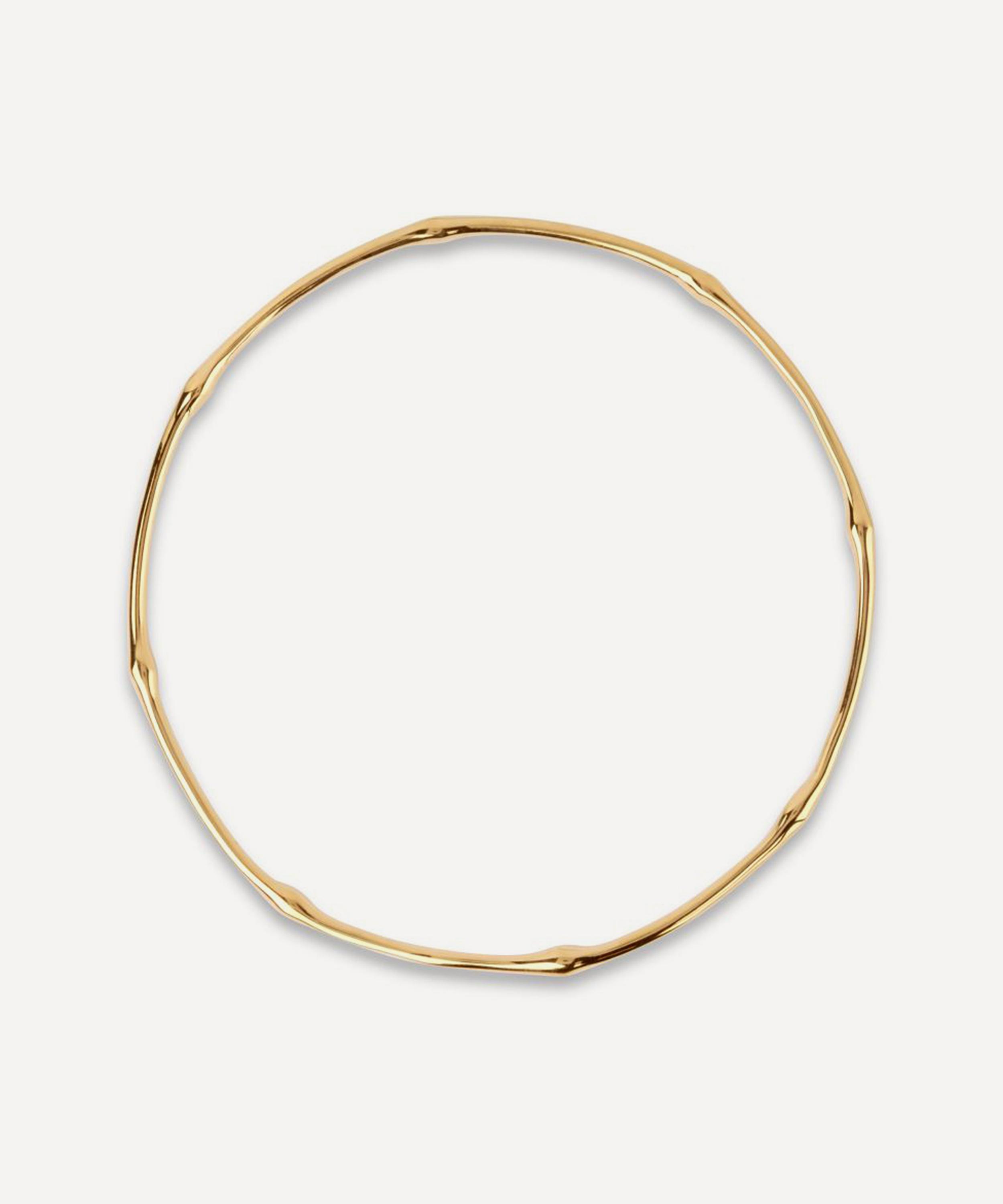 Handcrafted from sterling silver plated in 22 carat gold vermeil, this Bamboo bangle from Dinny Hall is sculpted to mirror the smooth shape and undulating nodules of a bamboo branch.