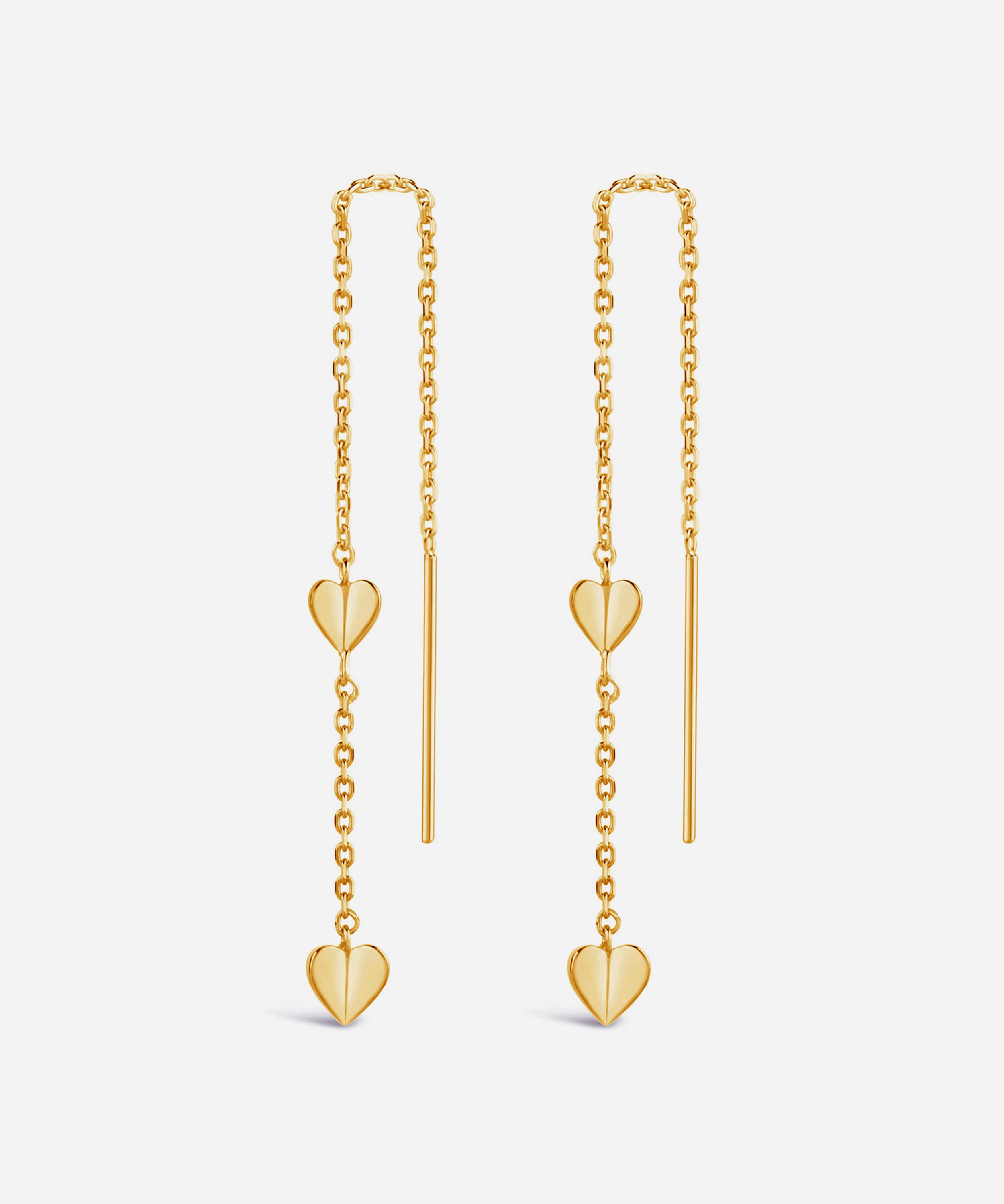 These gold plated vermeil silver Folded Heart threaded chain earrings epitomise the charm and simplicity of Dinny Hall's Bijou collection.