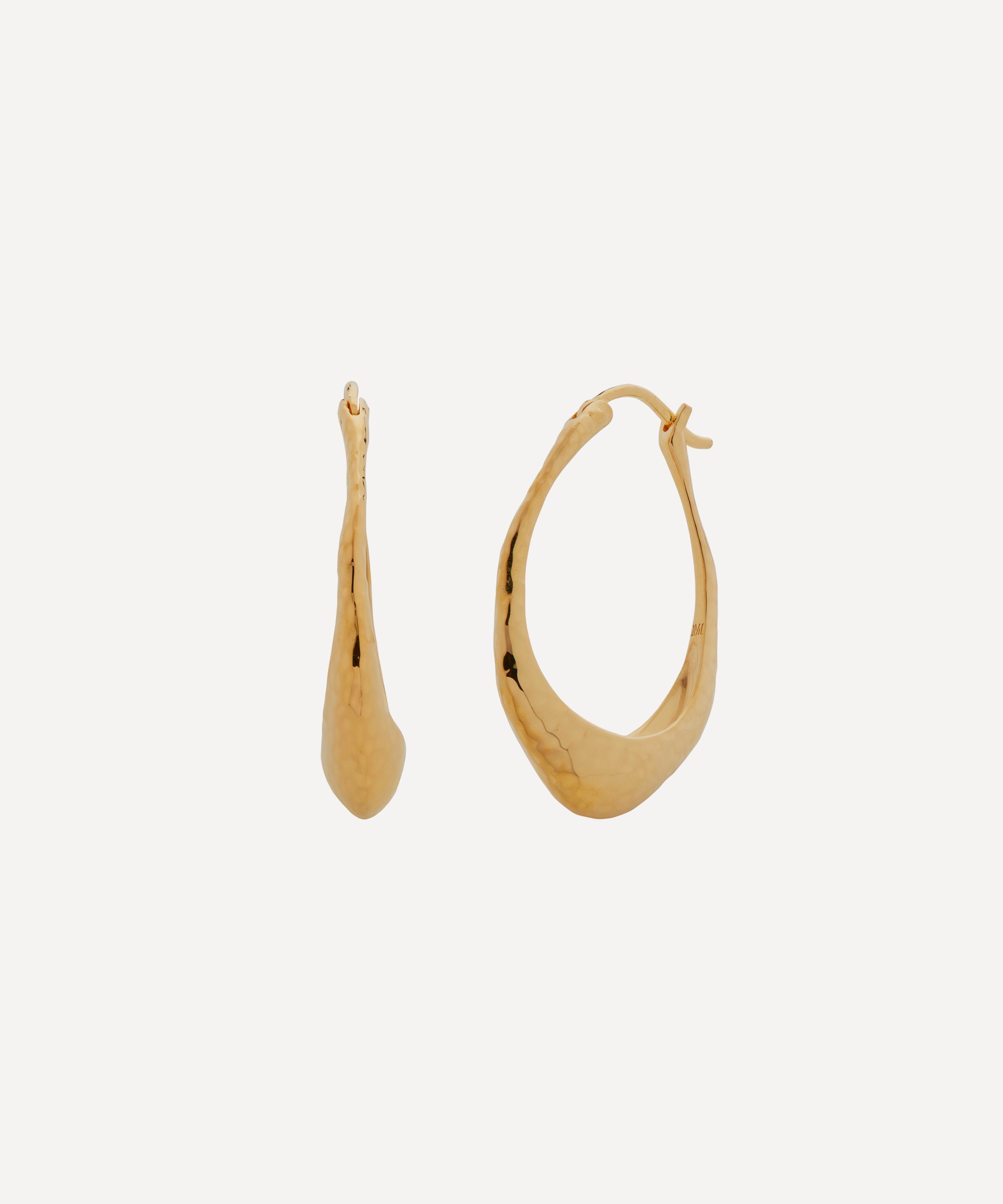 Crafted from recycled sterling silver plated in 18 carat gold vermeil, these undulating hoop earrings are part of Monica Vinader's Deia collection.