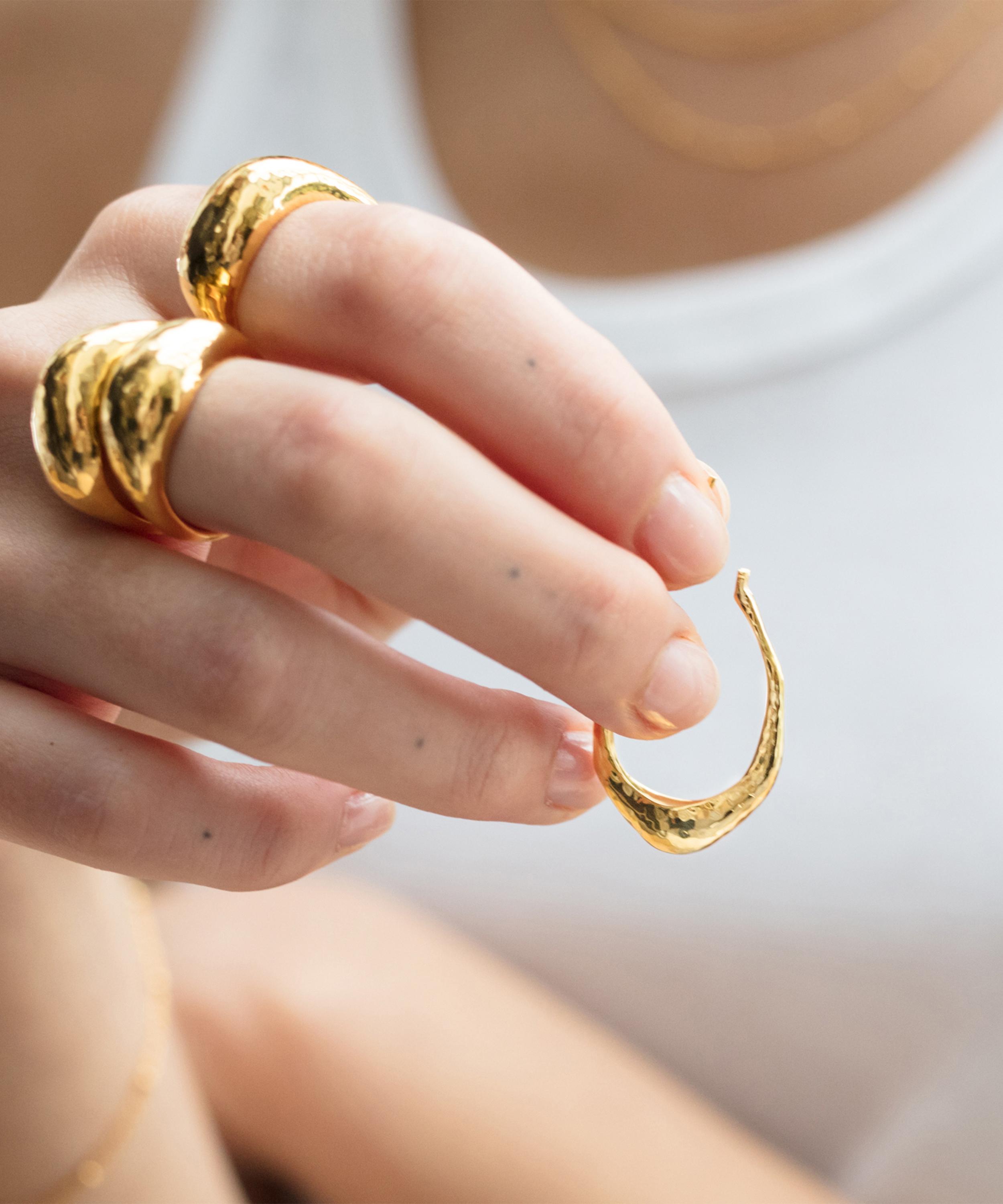Named after the Italian word for goddess, the Deia collection is a celebration of independence and individuality, inspired by the power of adornment in ancient civilisations. Each of these hoop earrings showcases an elegantly tapering silhouette with a high-polished finish and the same lightly hammered surface texture that features in every Deia design. Stack them with a pair of smaller hoops from the collection to emphasise their sculptural, organic forms.