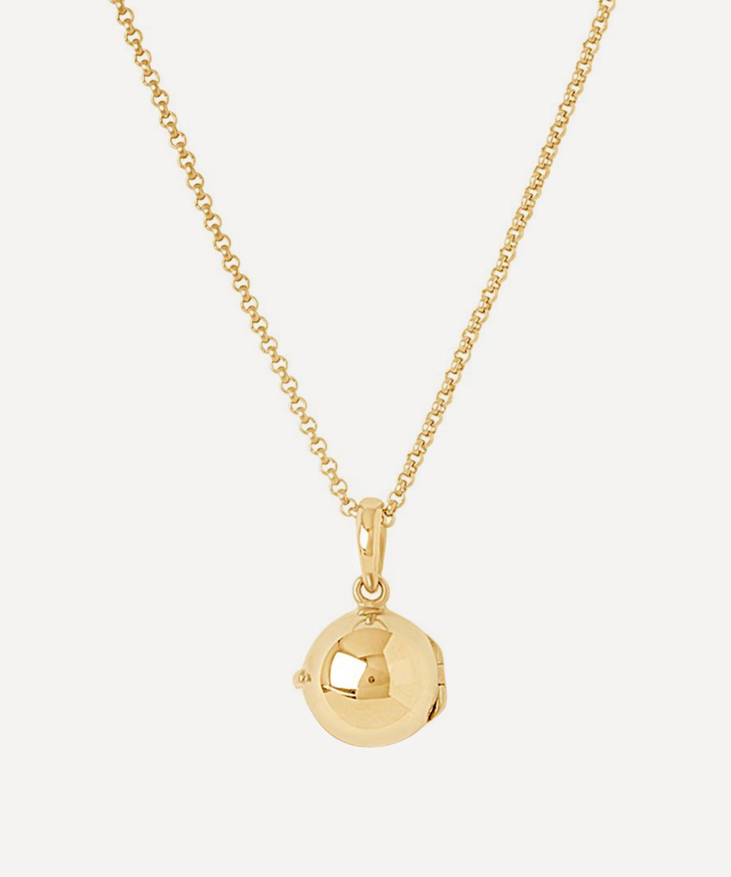 Crafted from sterling silver plated in 22 carat gold vermeil, this small orb locket necklace is the central motif of Dinny Hall's My World collection.
