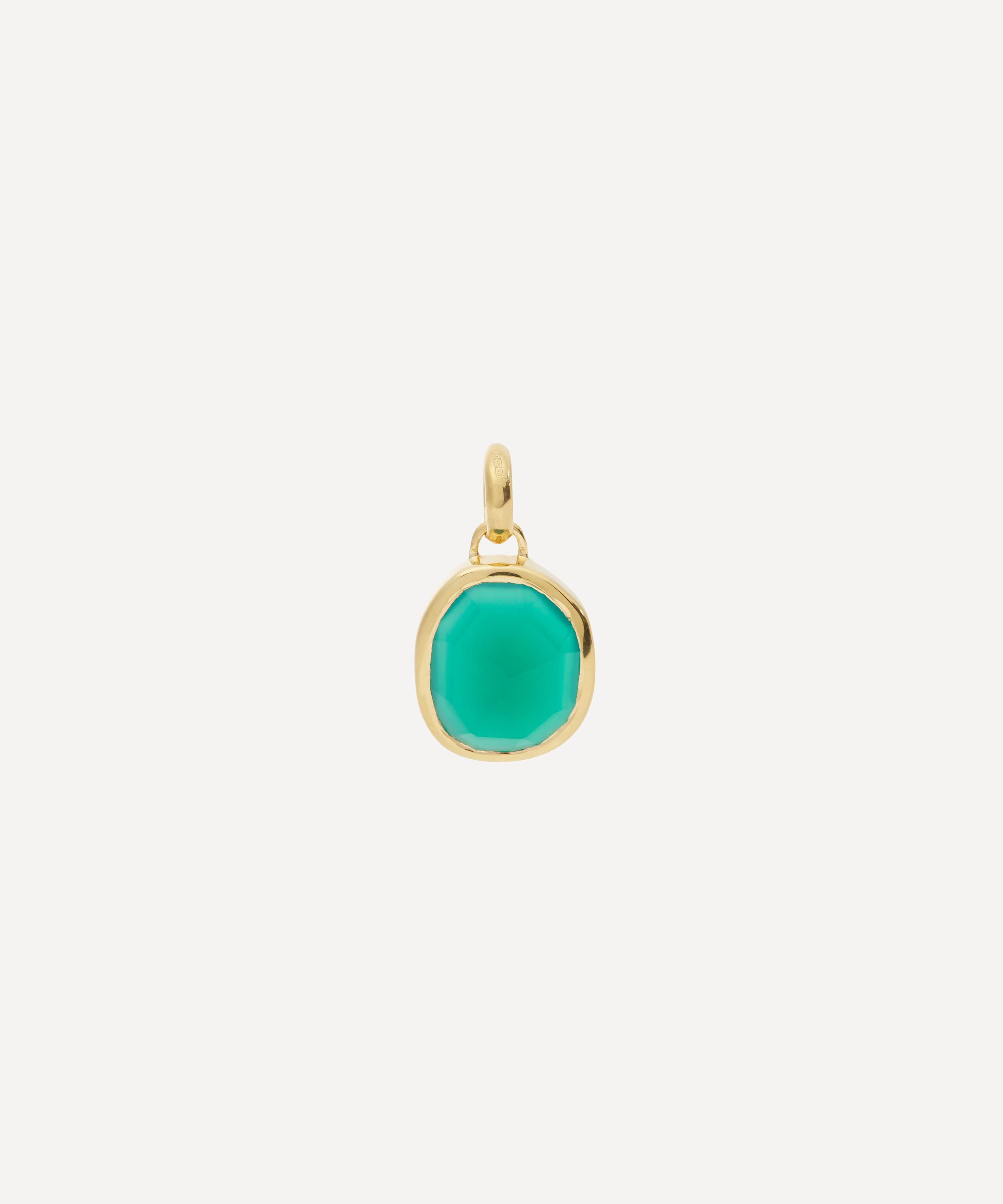 Crafted from high polished 18 carat gold plated vermeil silver, this pendant is irregularly shaped for an organic feel, reminiscent of a pebble found on the seashore. A rose-cut, bezel-set green onyx takes centre stage for a vibrantly finished statement piece; ideal for wearing alone or with a companion pendant. Perfectly suited to an open neckline, consider layering with chains of different lengths for a unique take on evening jewellery.