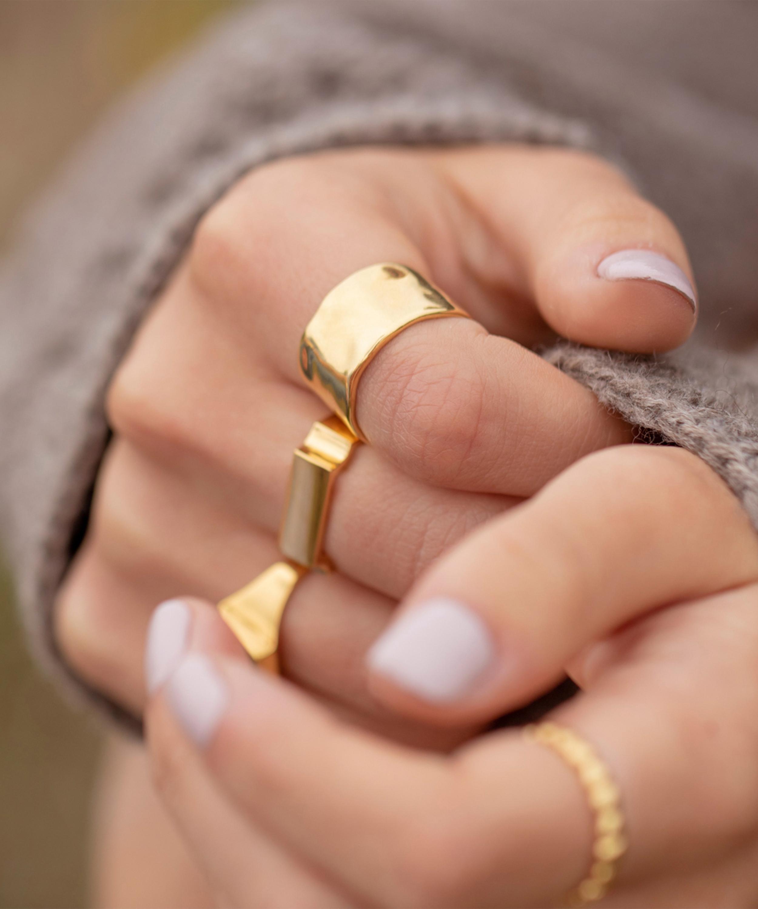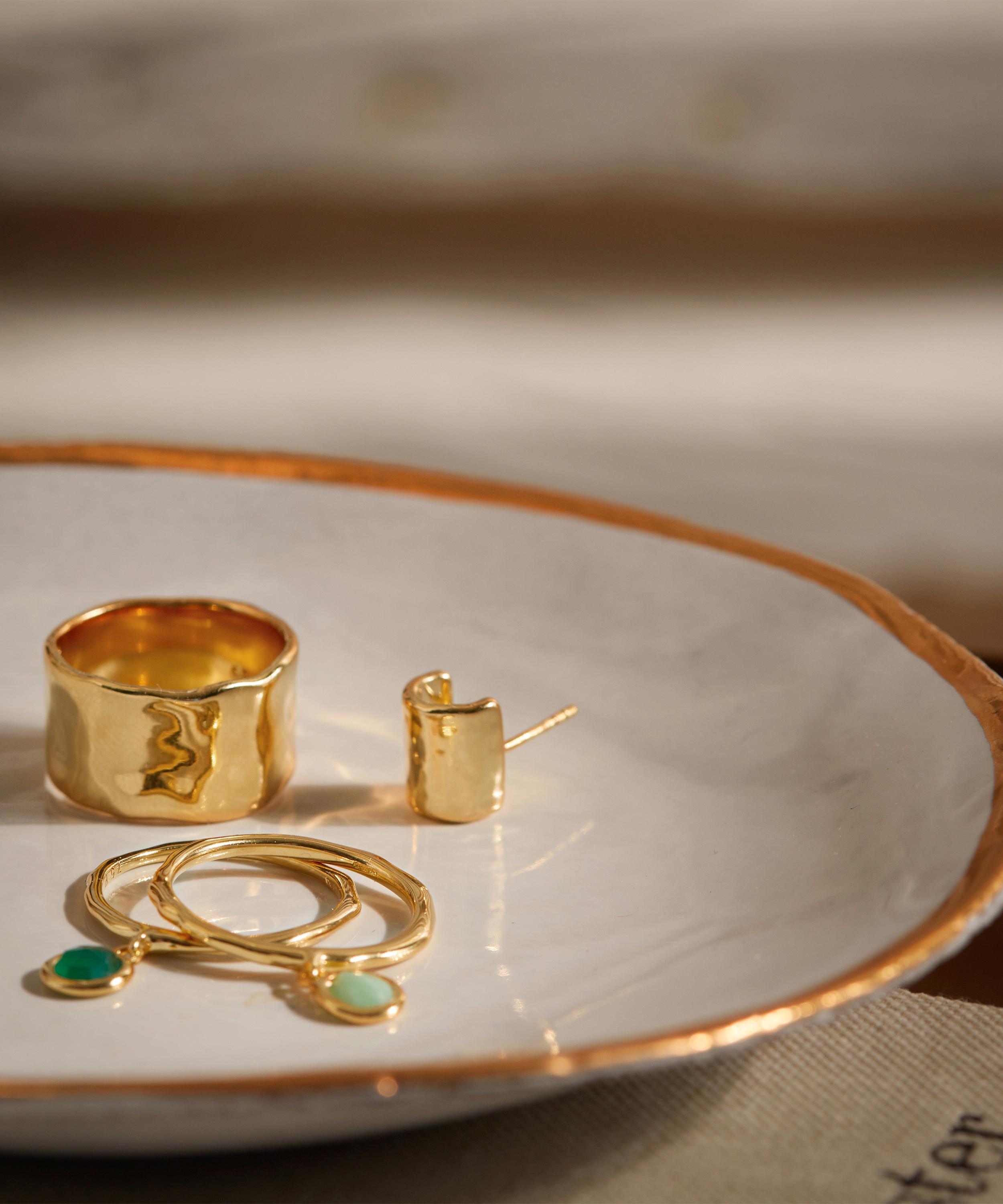 Perfect for stacking or styling alone, this ring is characterised by a wide, high-polished band with a lightly hammered surface that's reminiscent of the sea. Designed with both style and versatility in mind, try stacking it with several other plain gold bands for a minimal everyday look, or team it with one of the designer's signature gem-encrusted Siren styles for a colour-rich, contemporary curation.