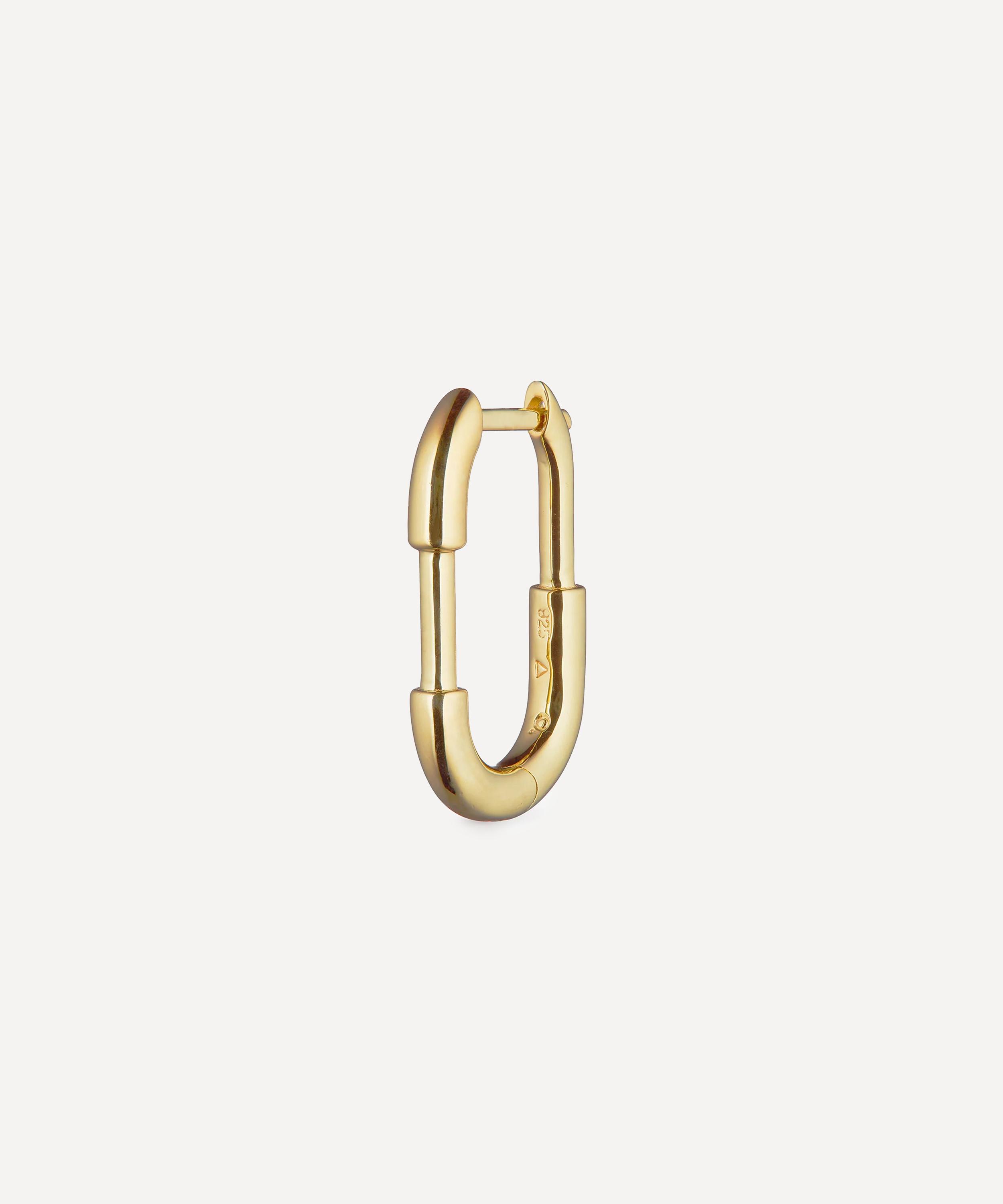 Handcrafted from sterling silver plated in gold vermeil, this single hoop earring is a signature style from Otiumberg. Characterised by a curvaceous stadium shape with a graduating thickness and high-polished finish, it makes for a versatile staple piece - wear it alone to maintain the minimal aesthetic, or layer it with matching styles for a layered curation.