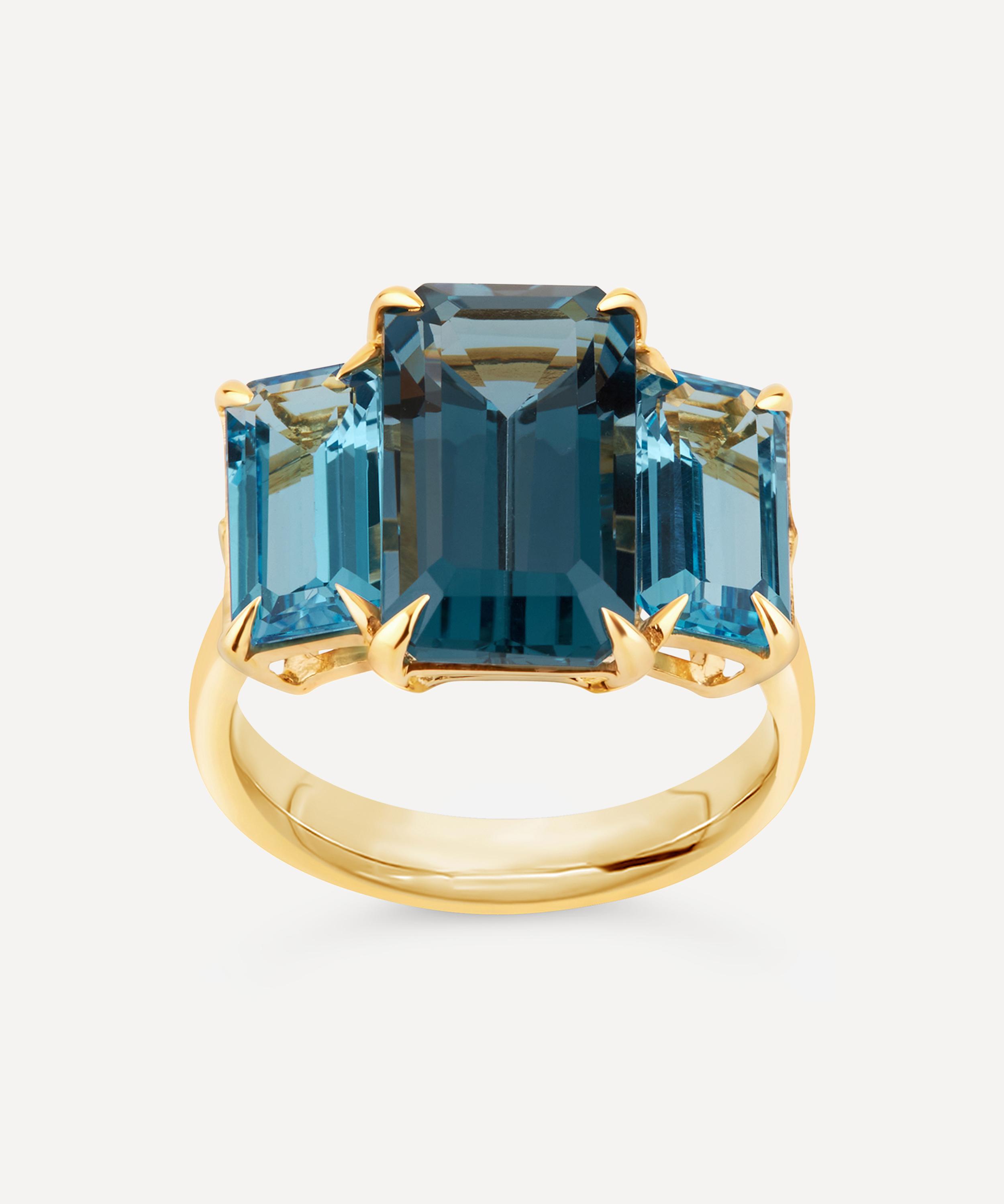 Crafted from sterling silver plated in 22 carat gold vermeil, Dinny Hall's Trinny blue topaz ring is a contemporary update on the classic cocktail ring - born out of 1920s prohibition America.