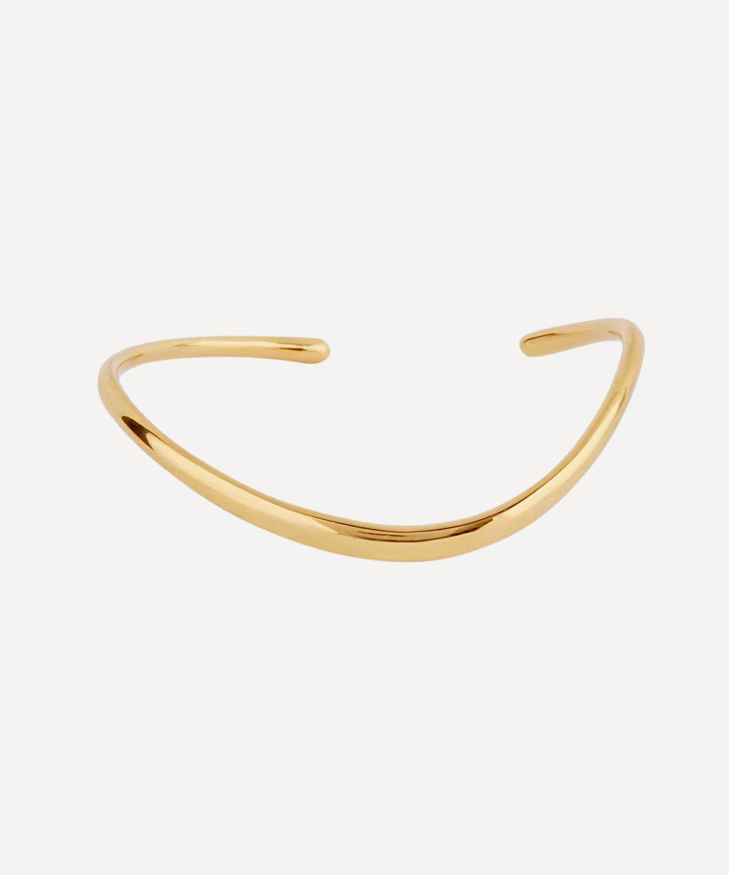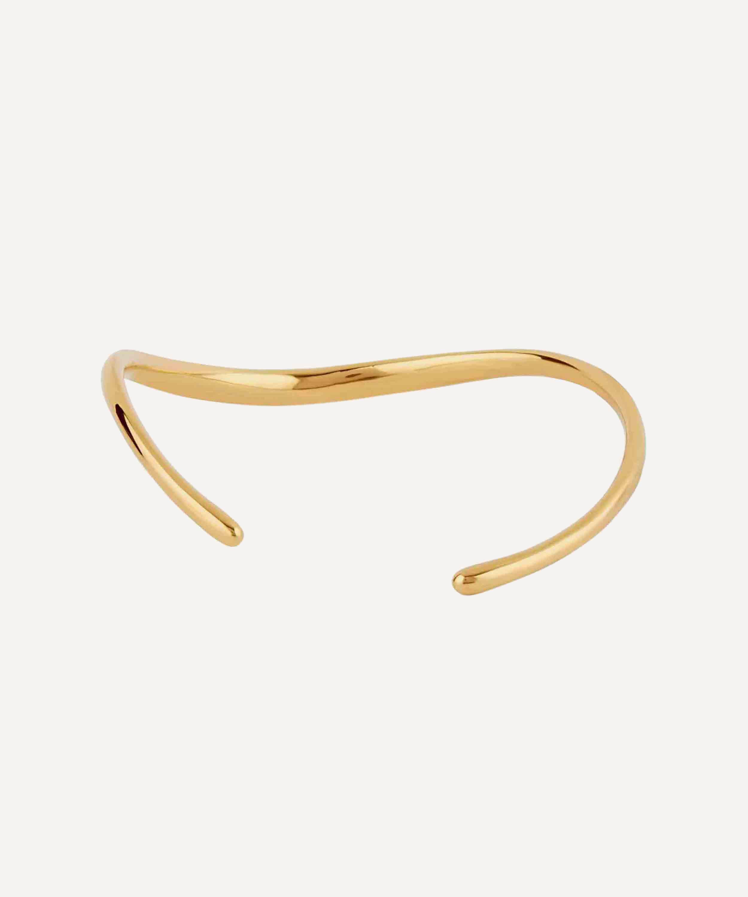 Dinny Hall's Wave collection showcases undulating hand-carved designs which link and interlock to form statement pieces, reminiscent of waves and ripples. This open-form cuff bracelet is an ultra-minimal piece crafted from polished 22 carat gold plated vermeil silver. Designed with both comfort and versatility in mind, it can be worn alone both on the wrist and up the forearm, or linked with other pieces from the collection for your own personally-created look.