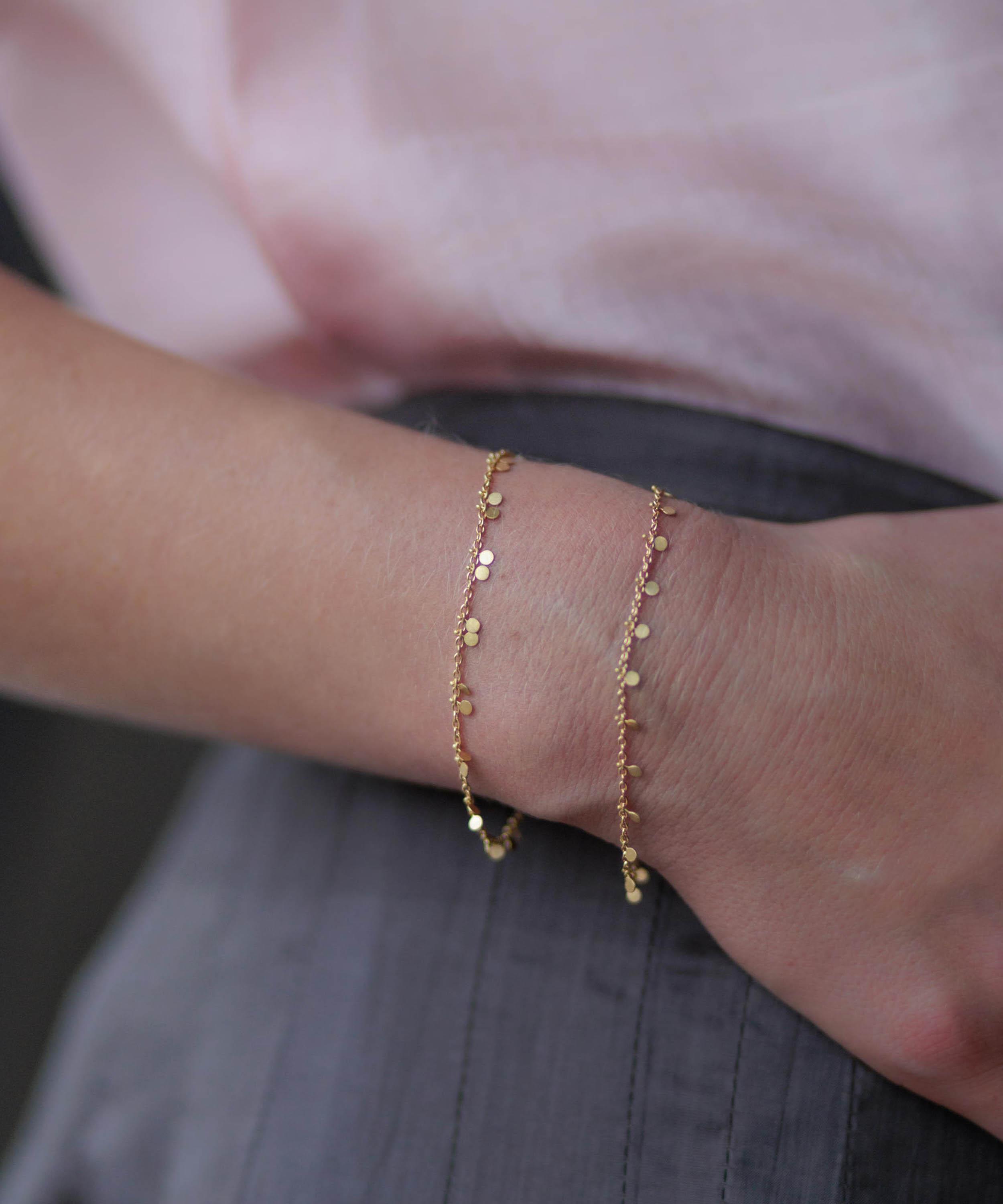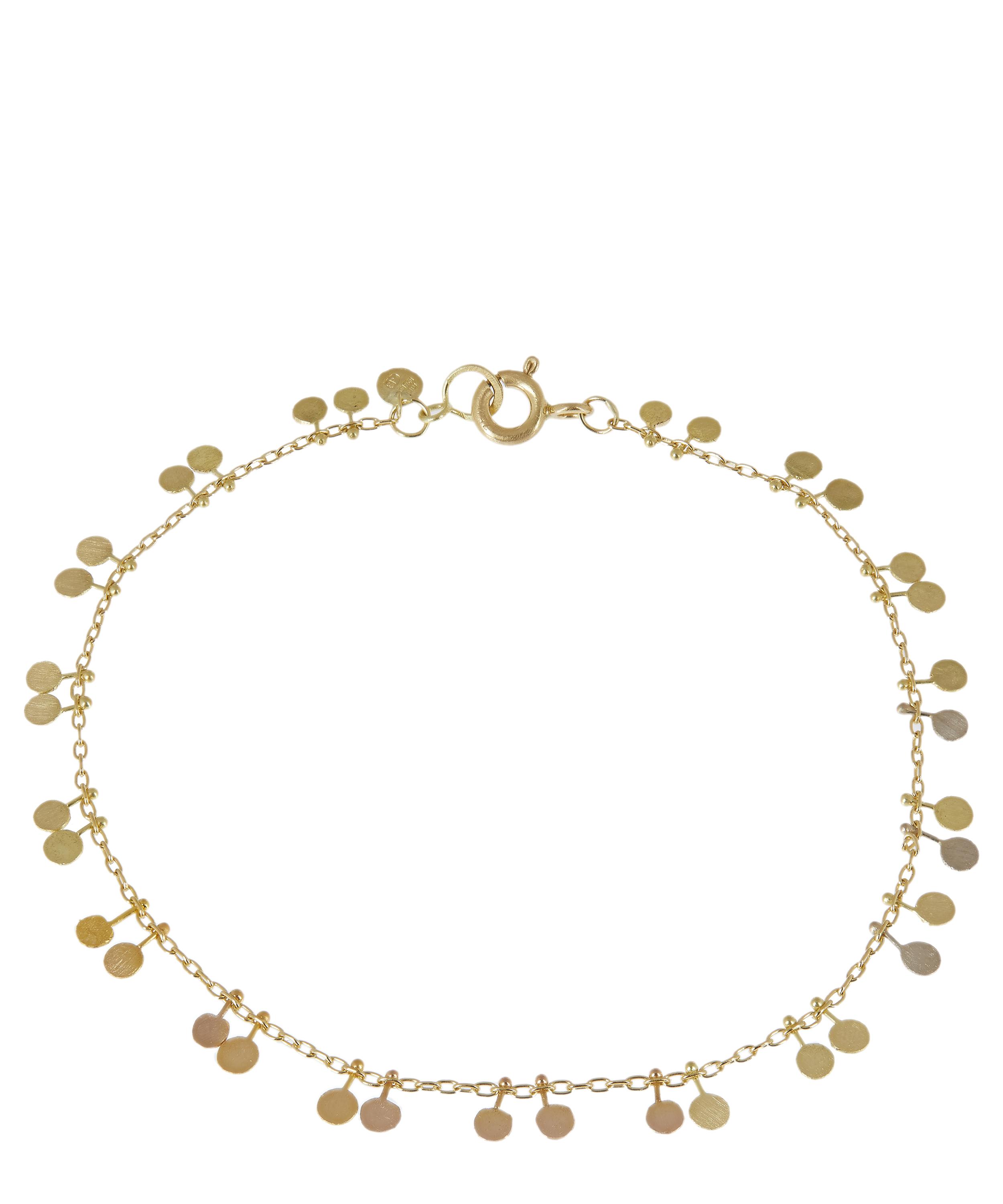 Sia Taylor's designs reflect a preoccupation with the natural world through her fresh interpretations of organic shapes and silhouettes, from seeds and grasses to the internal structures of plants. Handcrafted in the designer's London studio, this delicate chain bracelet is studded with pairs of tiny gold, rose gold and white gold dot charms. A pretty, understated addition to any jewellery curation, it styles beautifully alone or stacked with other favourites.