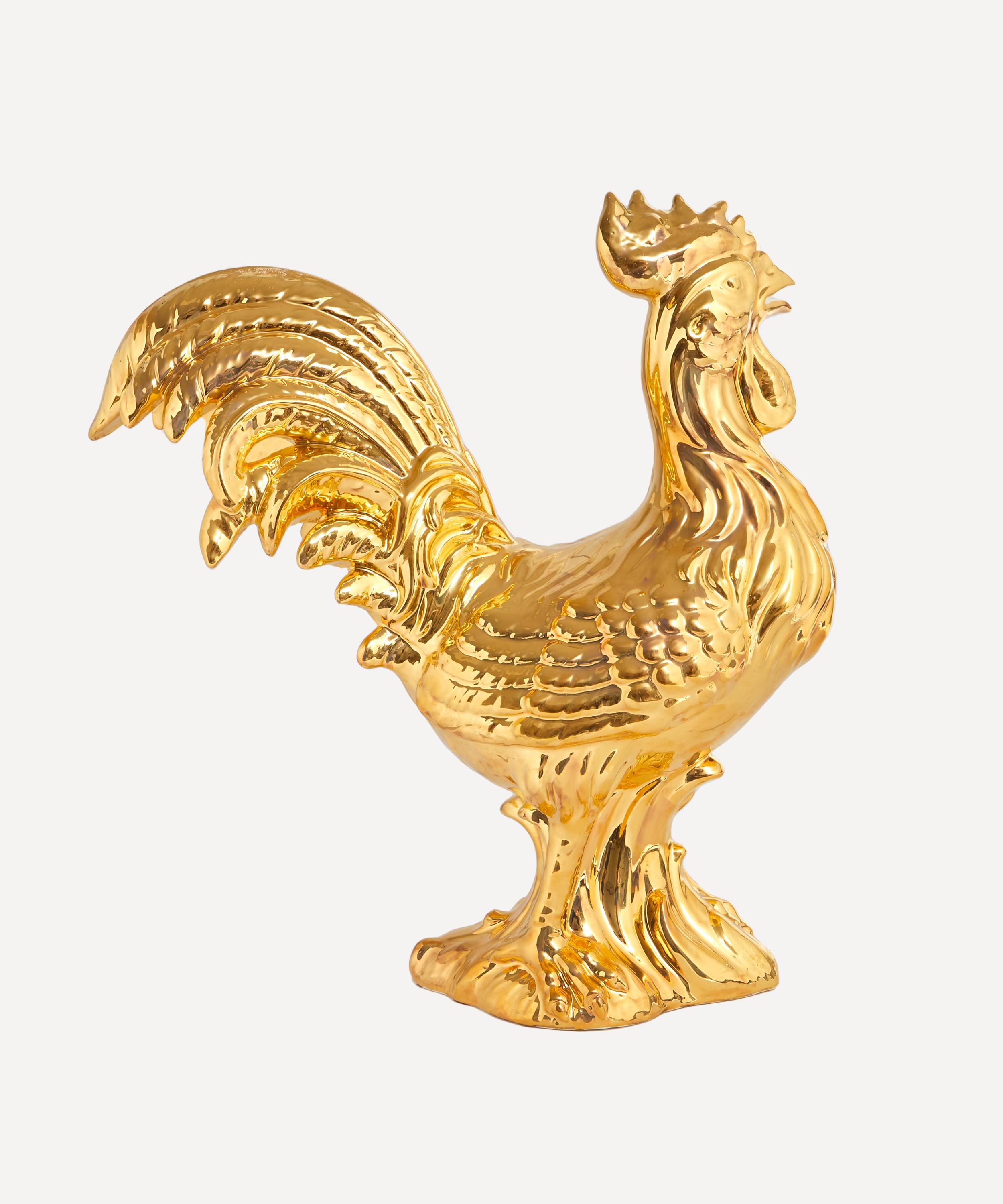Entirely handcrafted in Bassano del Grappa from strong earthenware fired at a high temperature, this rooster features 18k Gold finish achieved from three firings for a 18k gold finish – bringing a beautiful accent of the natural world to your hosting tablescape.Delivery & Returns