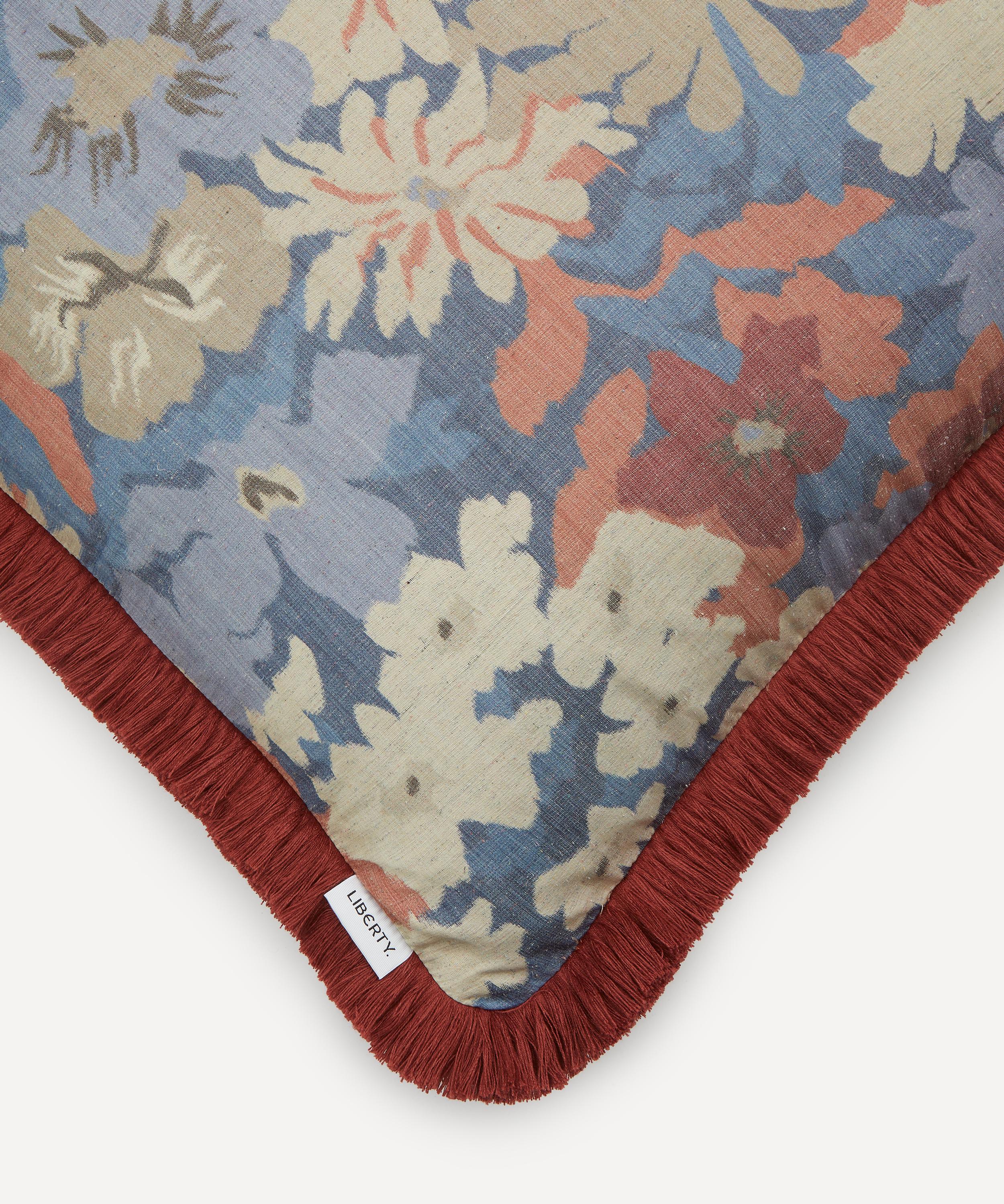 This Liberty square cushion features our Tapis Weave print and is decadently soft with a plump recycled duck feather filling. In honour of 150 years of Liberty, our classic Thorpe print has been dramatically enlarged for a larger, abstracted interpretation of the initial 1968 artwork – appearing here in a beautifully engineered iteration, complete with a fringed edge for an immaculate finish. The cushion’s classic silhouette and richly hued palette add an elegant twist to modern interiors.