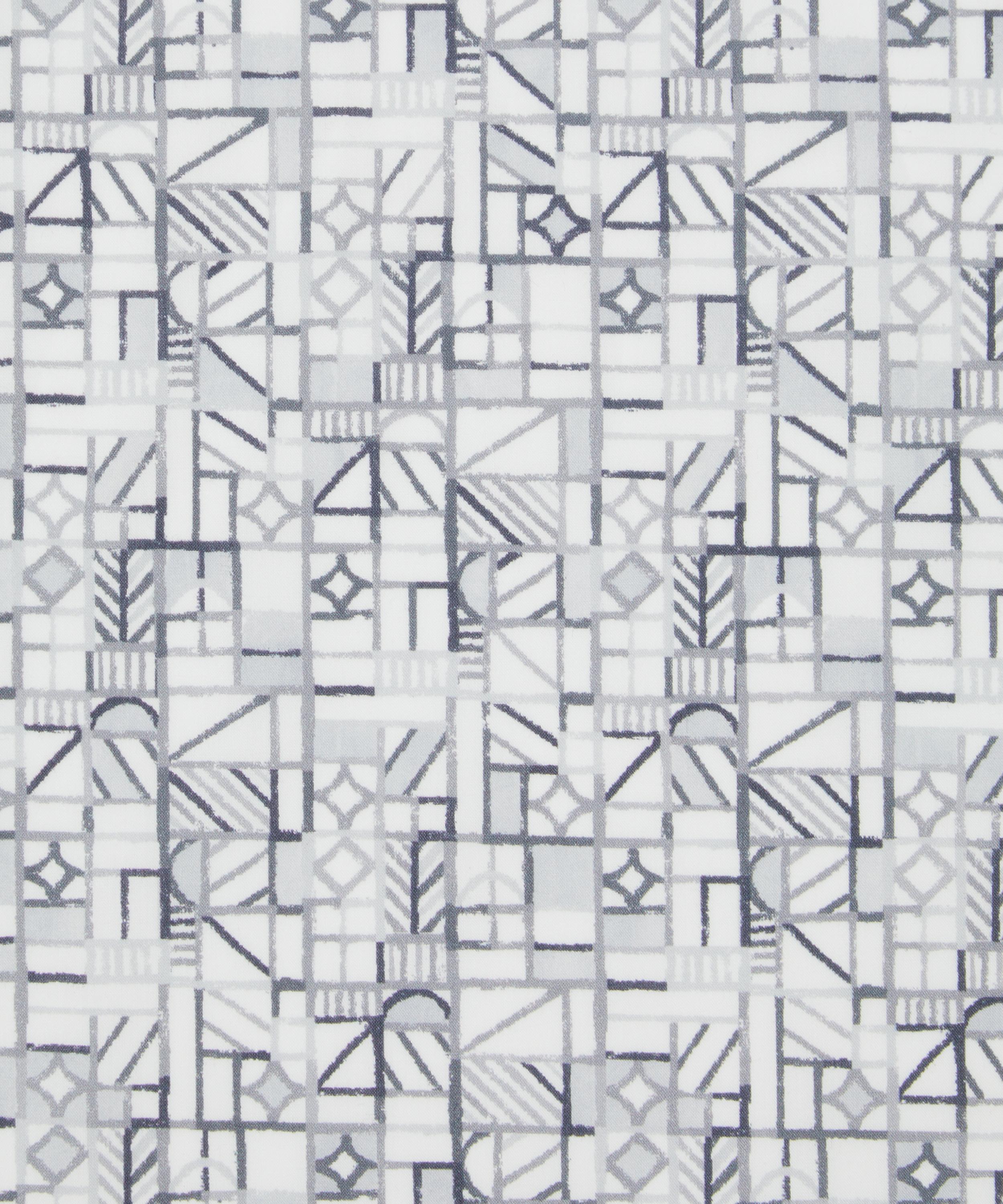 Paying homage to the iconic timber work of the Liberty store’s distinctive exterior architecture, this design was hand-painted in the London studio using a variety of print rollers and printing inks. Adapted into a series of tonal colourways, Grand Tudor House evokes a textural patchwork of alternating, stacked geometric shapes hued in fluctuating shades.