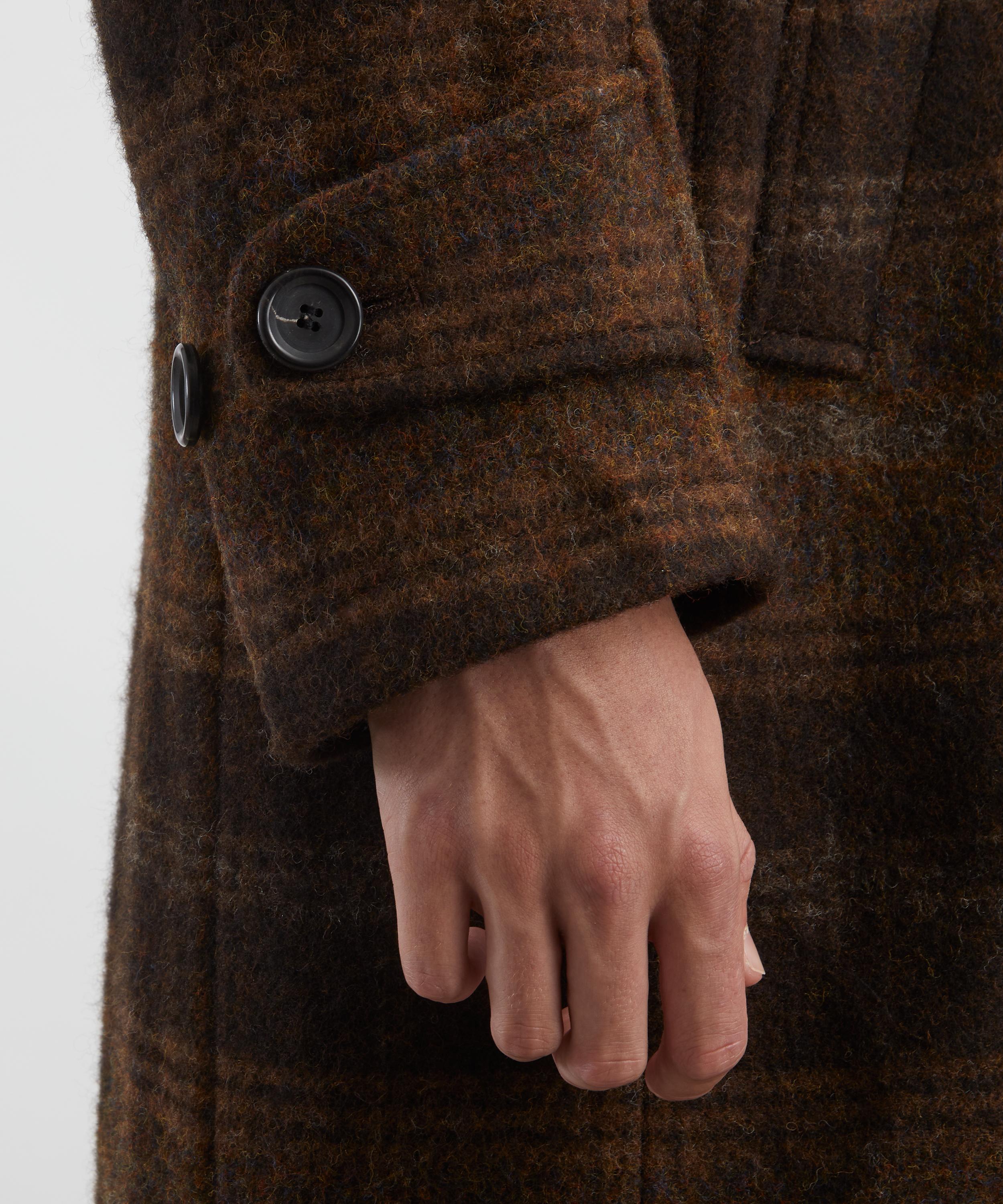 Crafted from Staunton cloth - a richly woven wool plaid - the Grandpa coat adds a touch of polished preppiness to your seasonal wardrobe. With its spread collar, button closure, and a belted waist, this piece is a go-to winter staple that balances comfort and style.