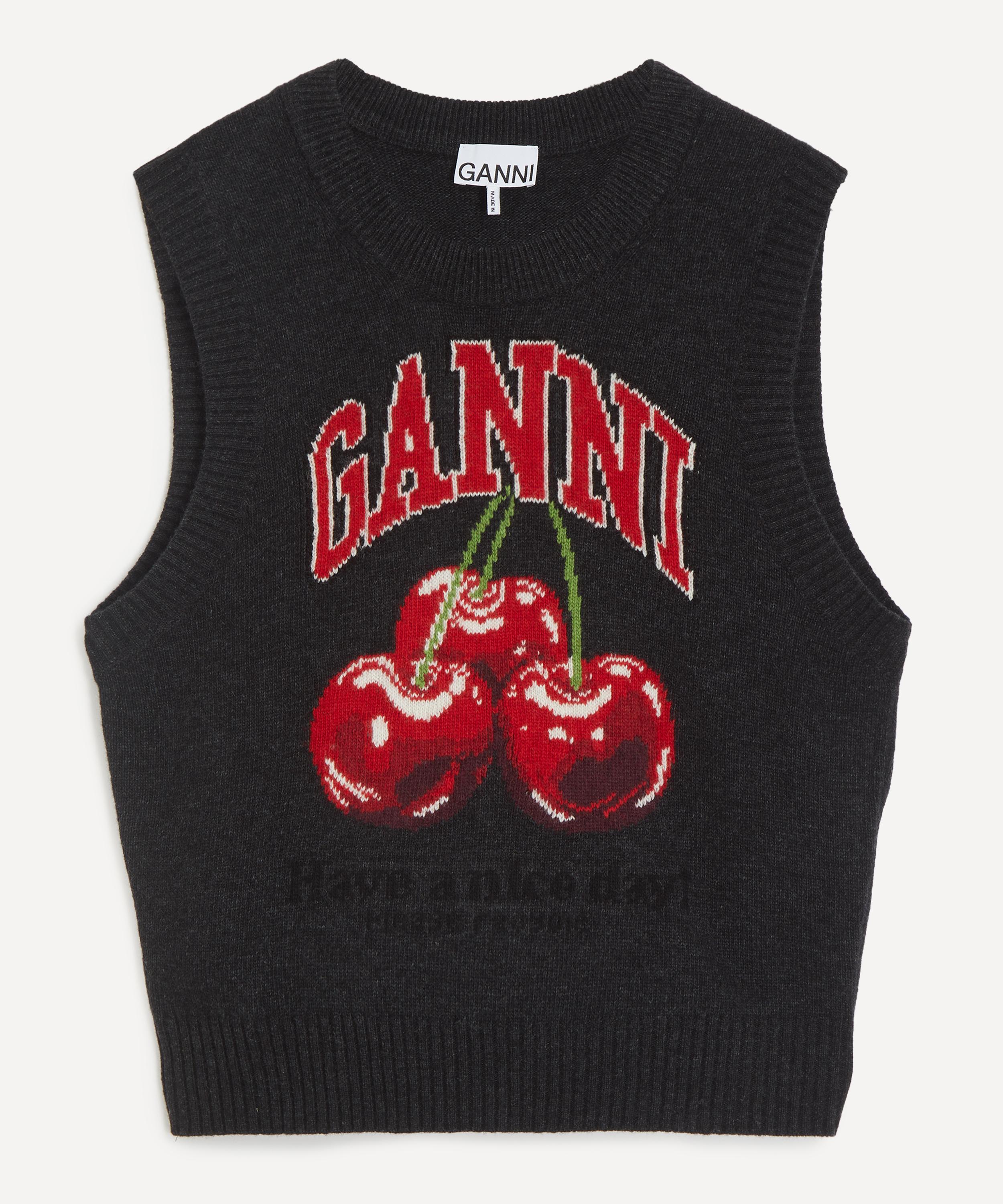 The Graphic Cherry Wool Vest from GANNI stays true to the brand's coveted cool-girl image.