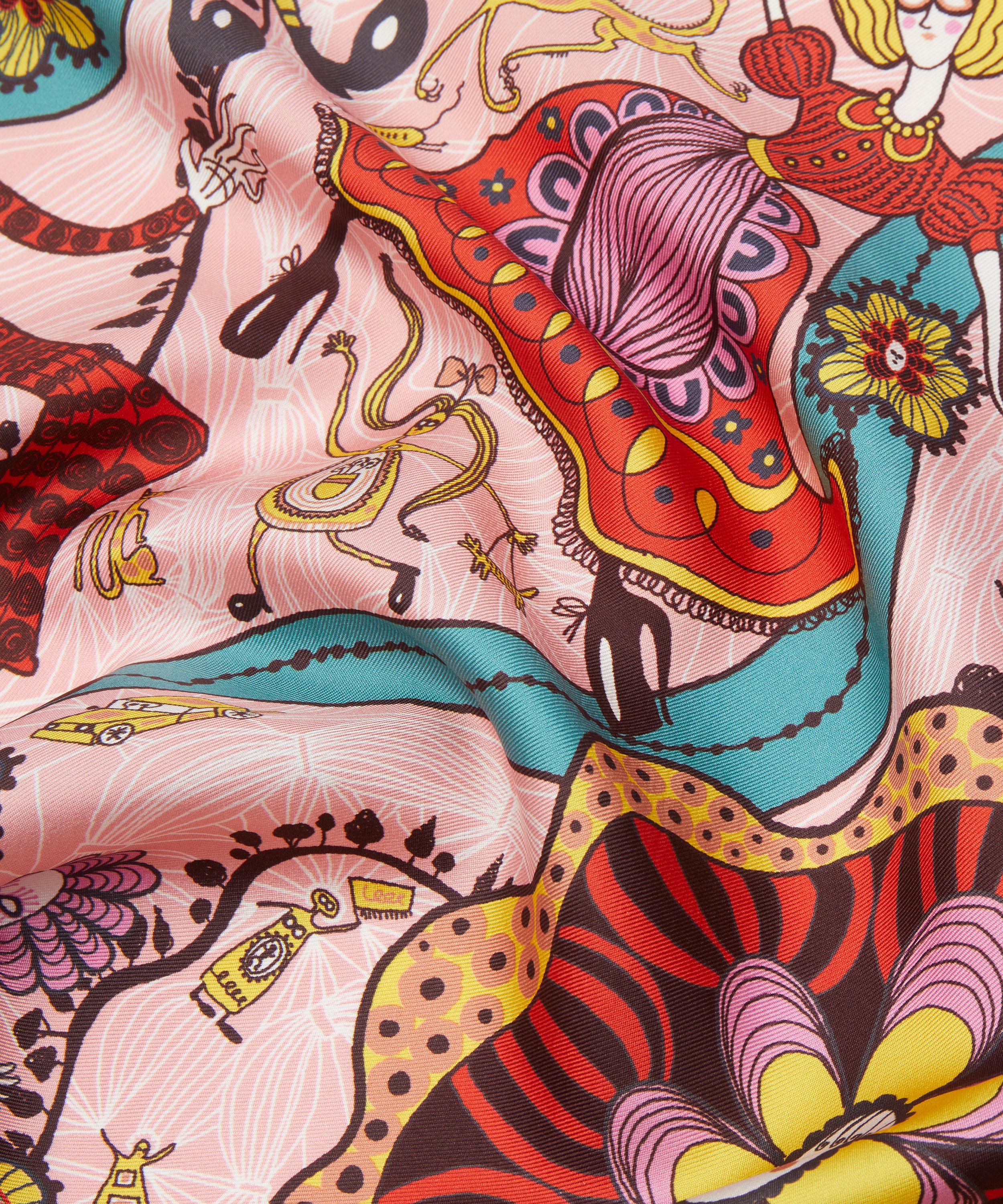 Meticulously crafted in Italy from a luxurious and ultra-soft silk twill fabric with hand-rolled hems, it features the Shirley Smith print by Grayson Perry – inspired by his invented muse Shirley Smith, the central figure of his Delusions of Grandeur exhibition at the Wallace Collection, it depicts imaginative characters and a crude version of Hertford house, where the collection resides. Designed to stand the test of time, this versatile accessory staple will breathe new life into your wardrobe with its rich colouration and texture. Try styling it as a traditional neck scarf to lock in warmth, wear it as a chic wrist band for a bold style statement, or use as a creative embellishment to a bag, the possibilities are endless.