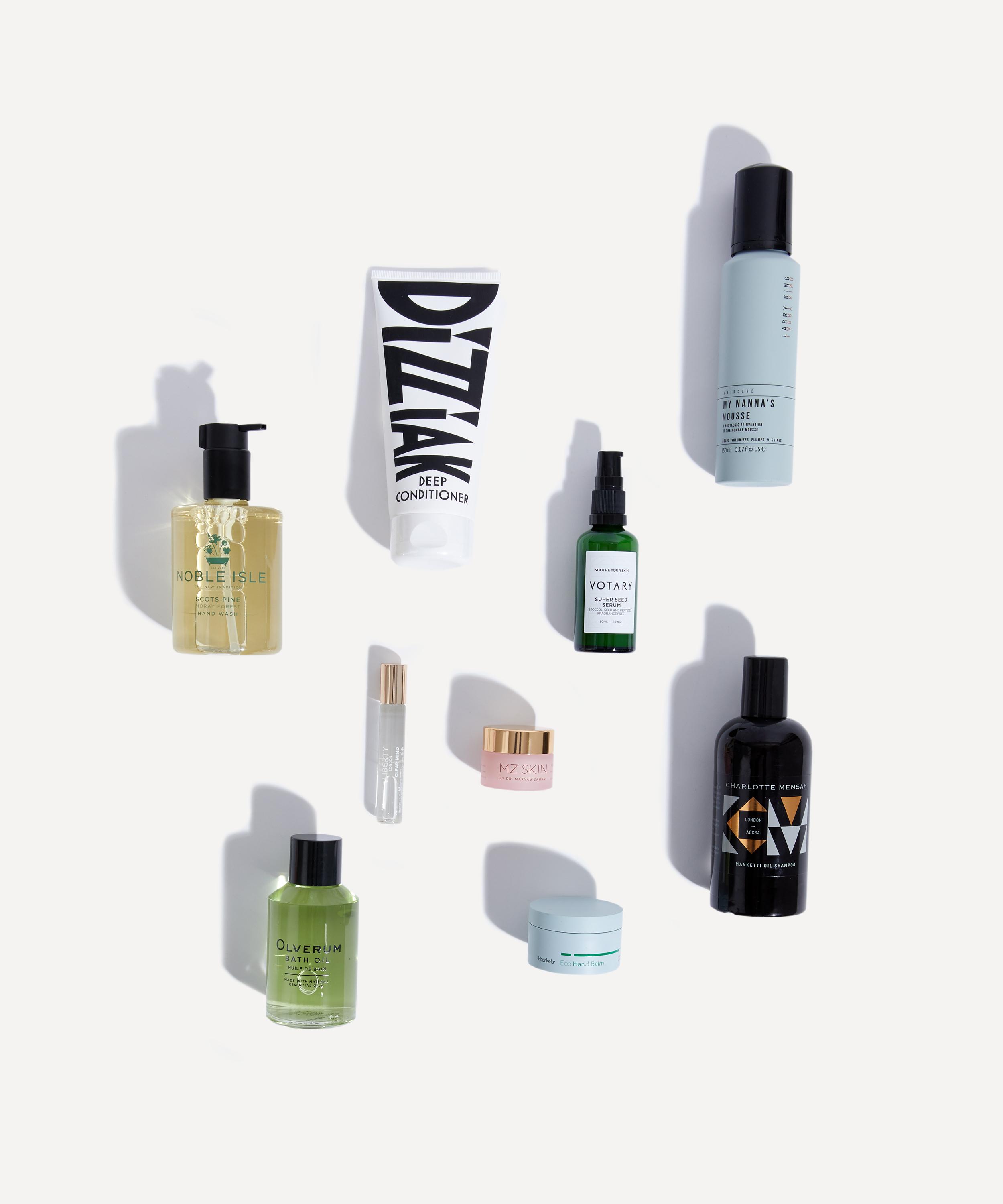 - Great British Beauty Kit includes: Larry King My Nanna's Mousse 150ml, Olverum Bath Oil 125ml, Dizziak Deep Conditioner 200ml, Votary Super Seed Serum 50ml, MZ Skin Soothe & Smooth Hyaluronic Brightening Eye Complex 14ml, Haeckels Eco Hand Balm, Noble Isle Scots Pine Hand Wash 250ml, Charlotte Mensah Manketti Oil Shampoo 250ml, Aromatherapy Associates Clear Mind Roller Ball 10ml and a Liberty print washbag