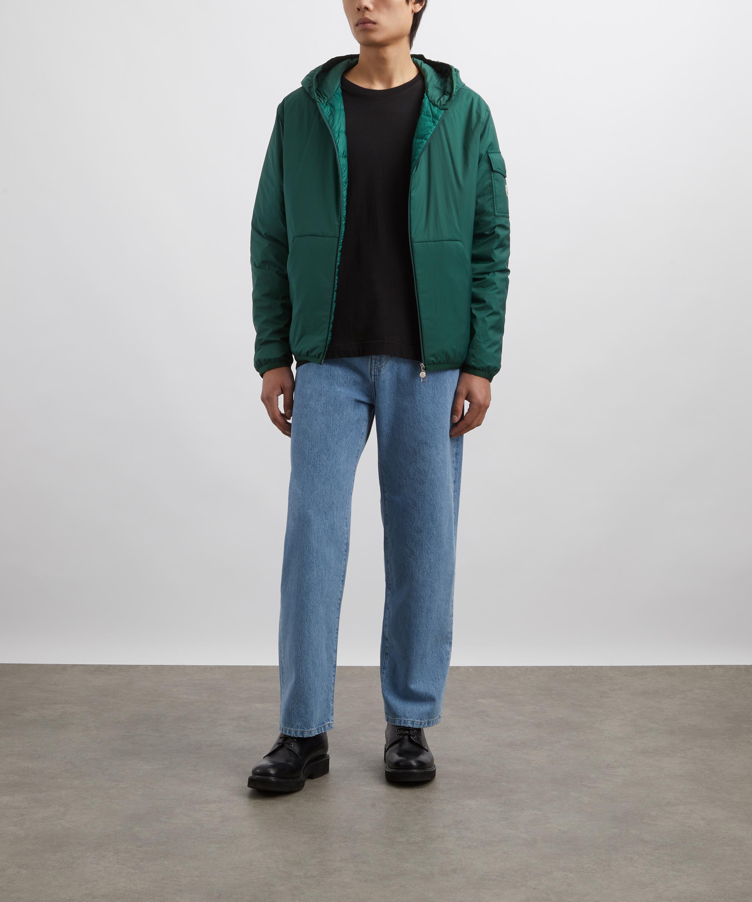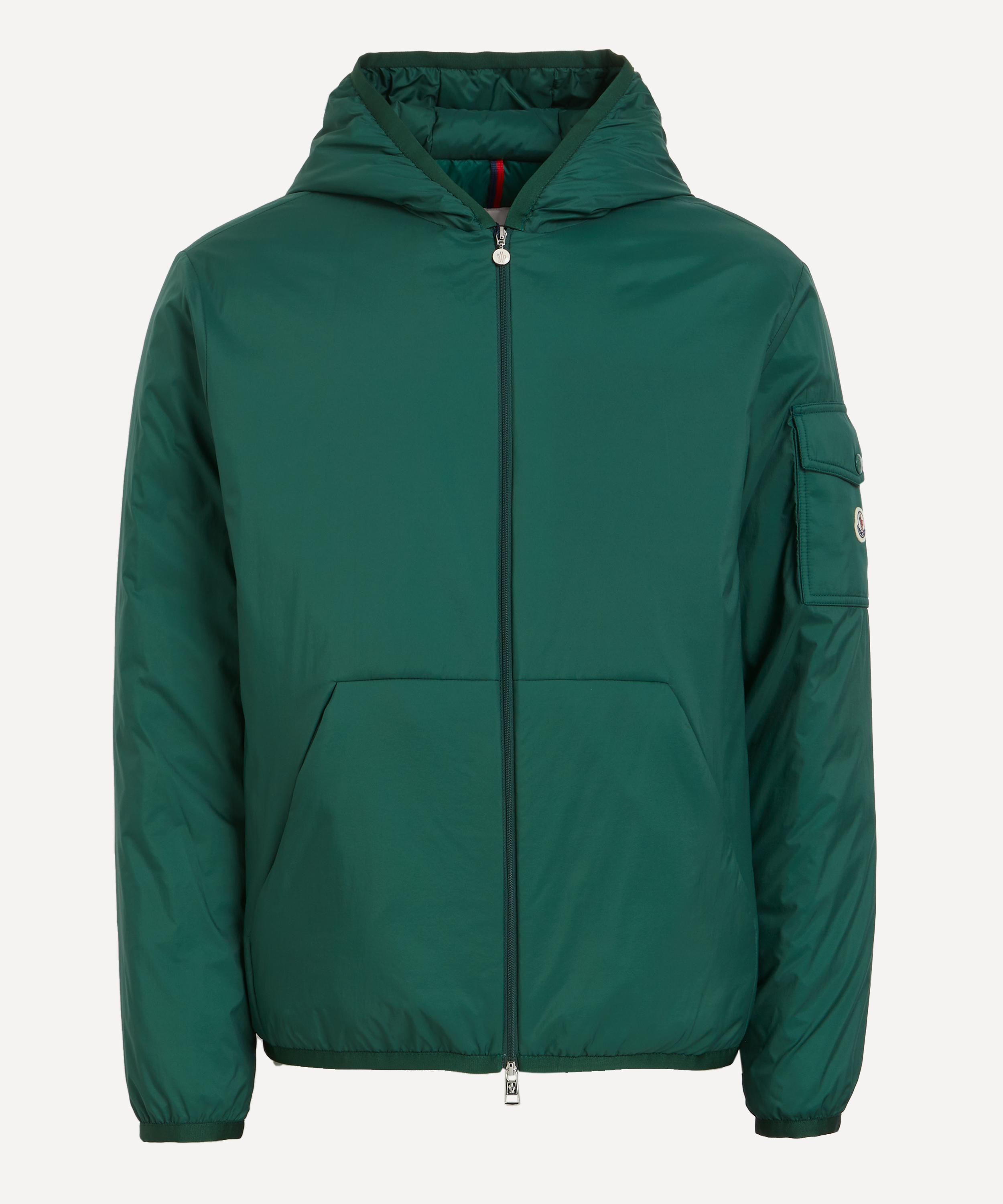 Light and durable, this green down jacket is crafted from Longue Saison, a fabric favoured for its lightweight and insulating properties. Featuring a minimalist yet functional design, it includes an adjustable hood, zip closure, kangaroo pockets, and a signature logo patch on the sleeve for a distinctive touch.