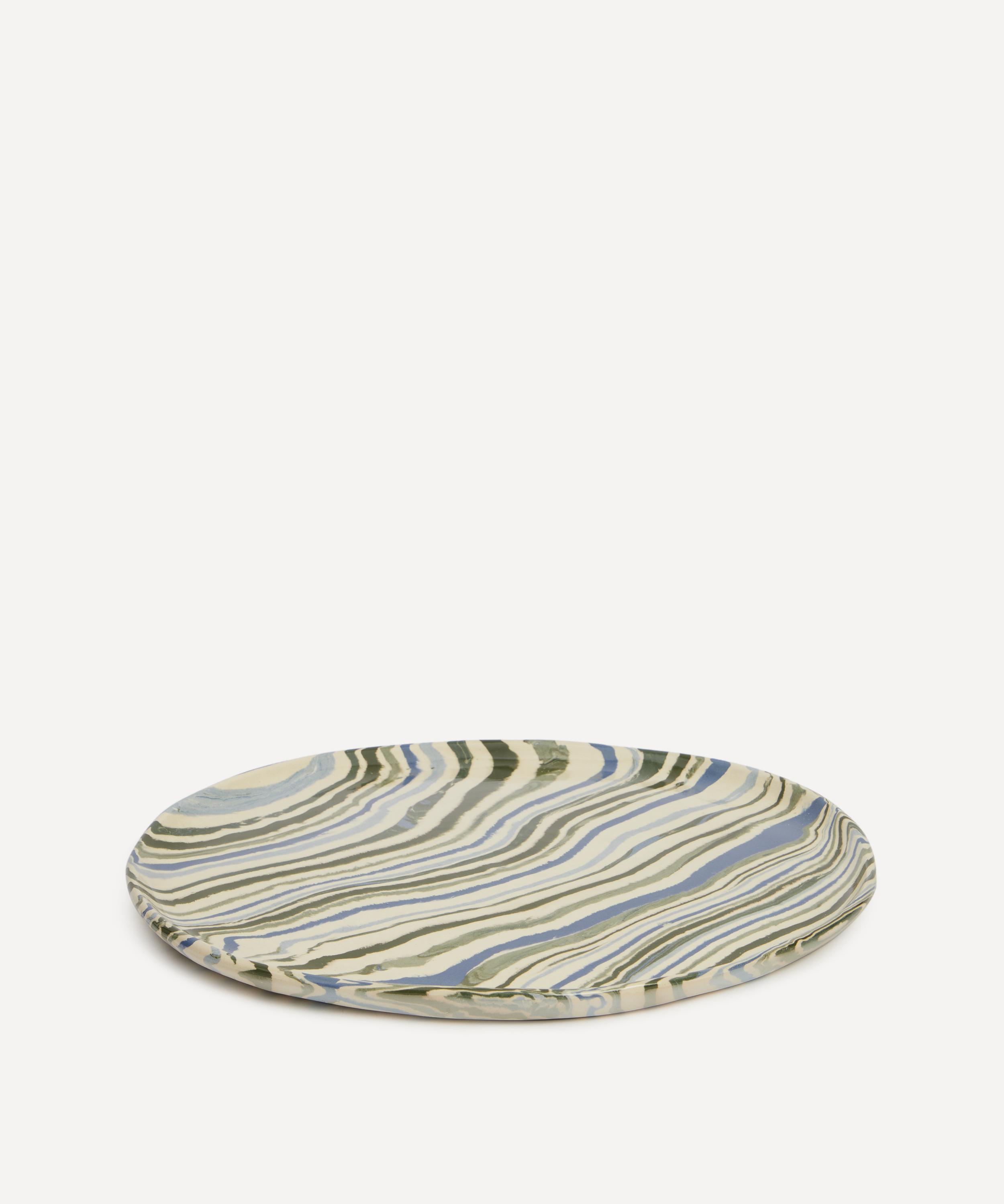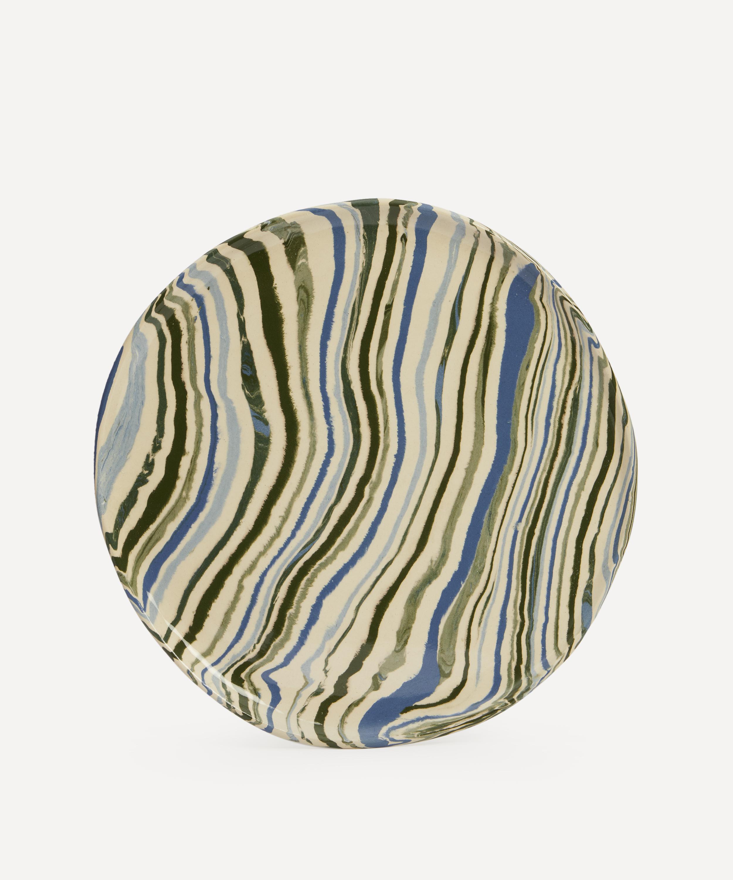 Brimming with personality, this dinner plate is made using a stylised version of the Japanese marbling technique of Nerikomi, which involves hand-building with coloured earthenware clay. Finished with a transparent high-gloss glaze to reveal the intricate pattern beneath, each plate is a statement piece in its own right. The jewel in the crown of any tablescape, it features a unique hand-pinched edge for practical appeal – layer it up with a mismatched side plate and bowl to experience the full effect.