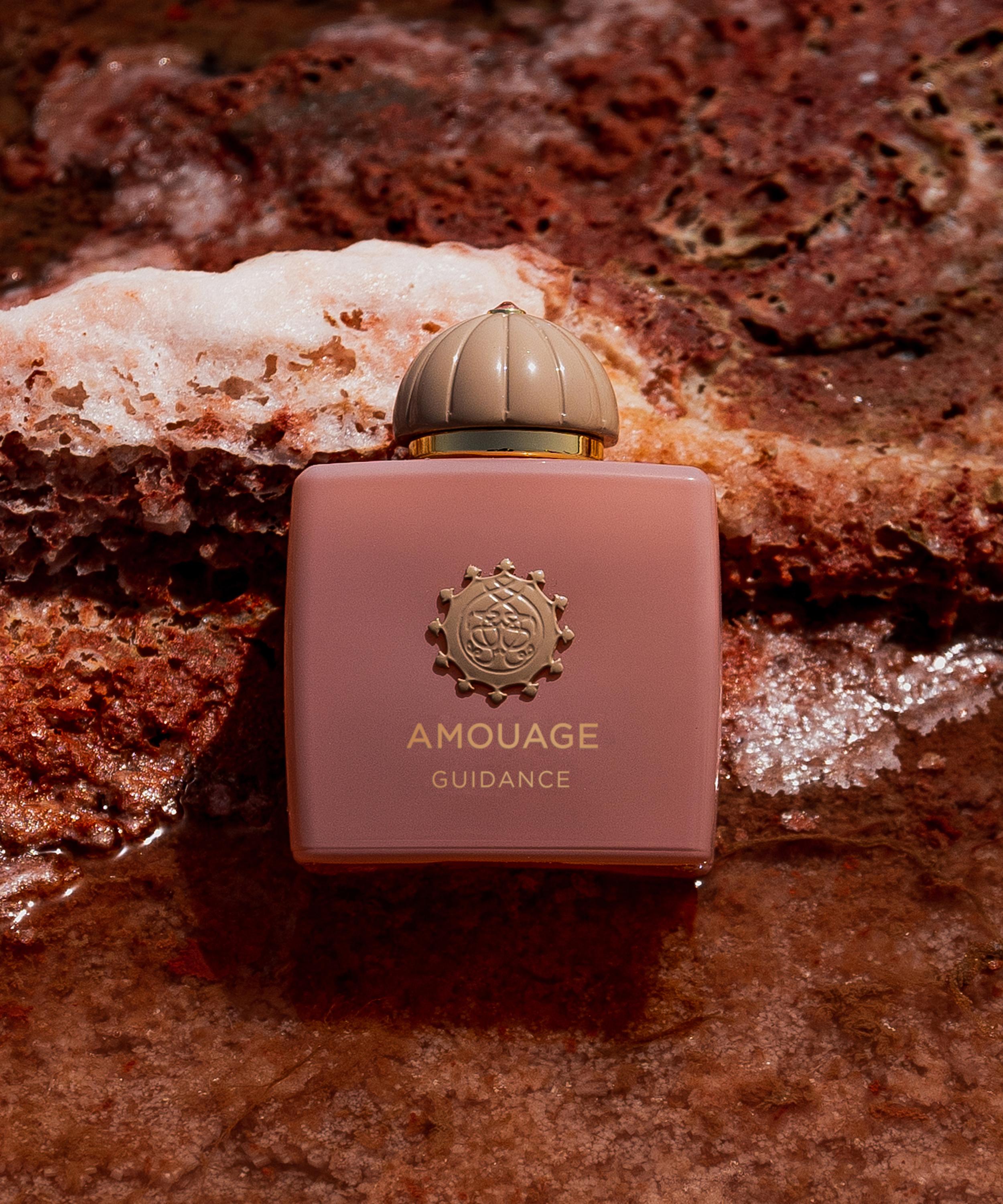 Envelop in the warm embrace of Amouage's Guidance eau de parfum, a bewitching interpretation of the Amouage triad of rose, frankincense and ambergris.