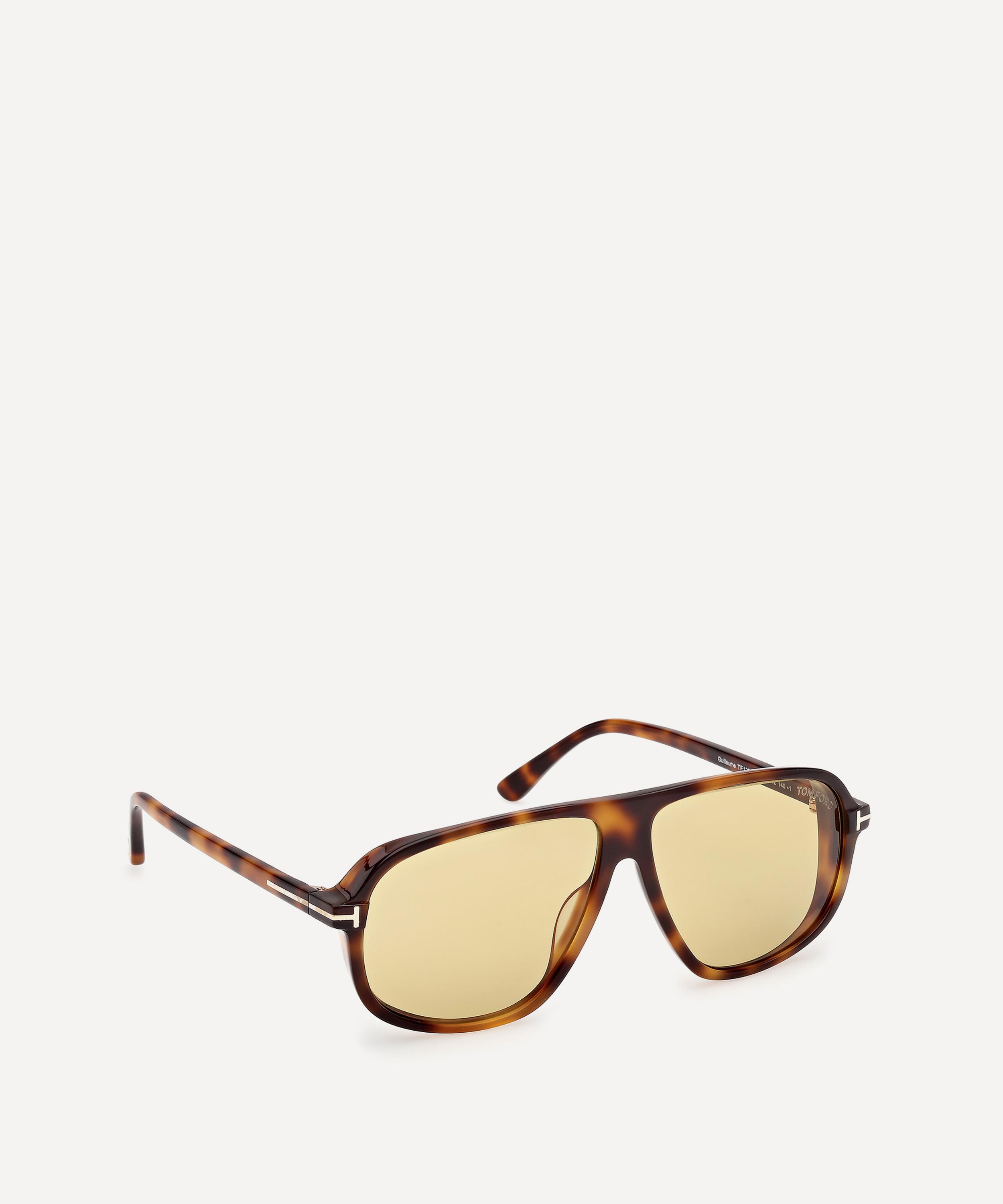 Transform your outfit and infuse a bit of edge with the Guillaume pilot sunglasses from Tom Ford. Fusing retro-inspired design cues with a premium quality craftsmanship, these sunglasses showcase the brand’s penchant for bold, statement frames. Expertly crafted from blonde Havana acetate with UV-protective, yellow-tinted lenses, they’re finished with a metal T logo to the temples – boasting a prerequisite addition to your eyewear edit.