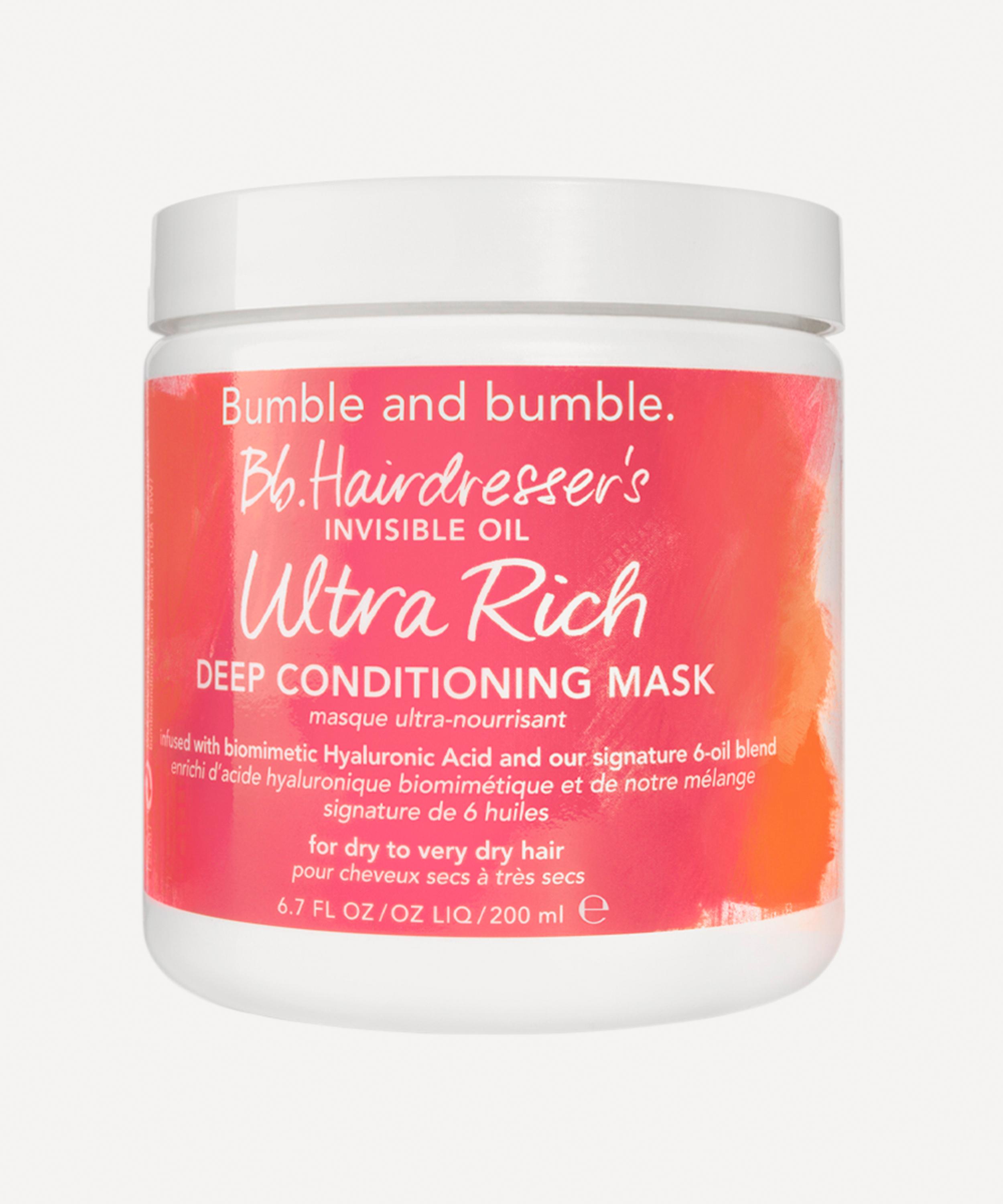 Delivering potent hydration to thirsty hair, the Hairdresser’s Invisible Oil Ultra Rich hair mask from Bumble and Bumble is formulated to leave strands shiny, smooth and soft.