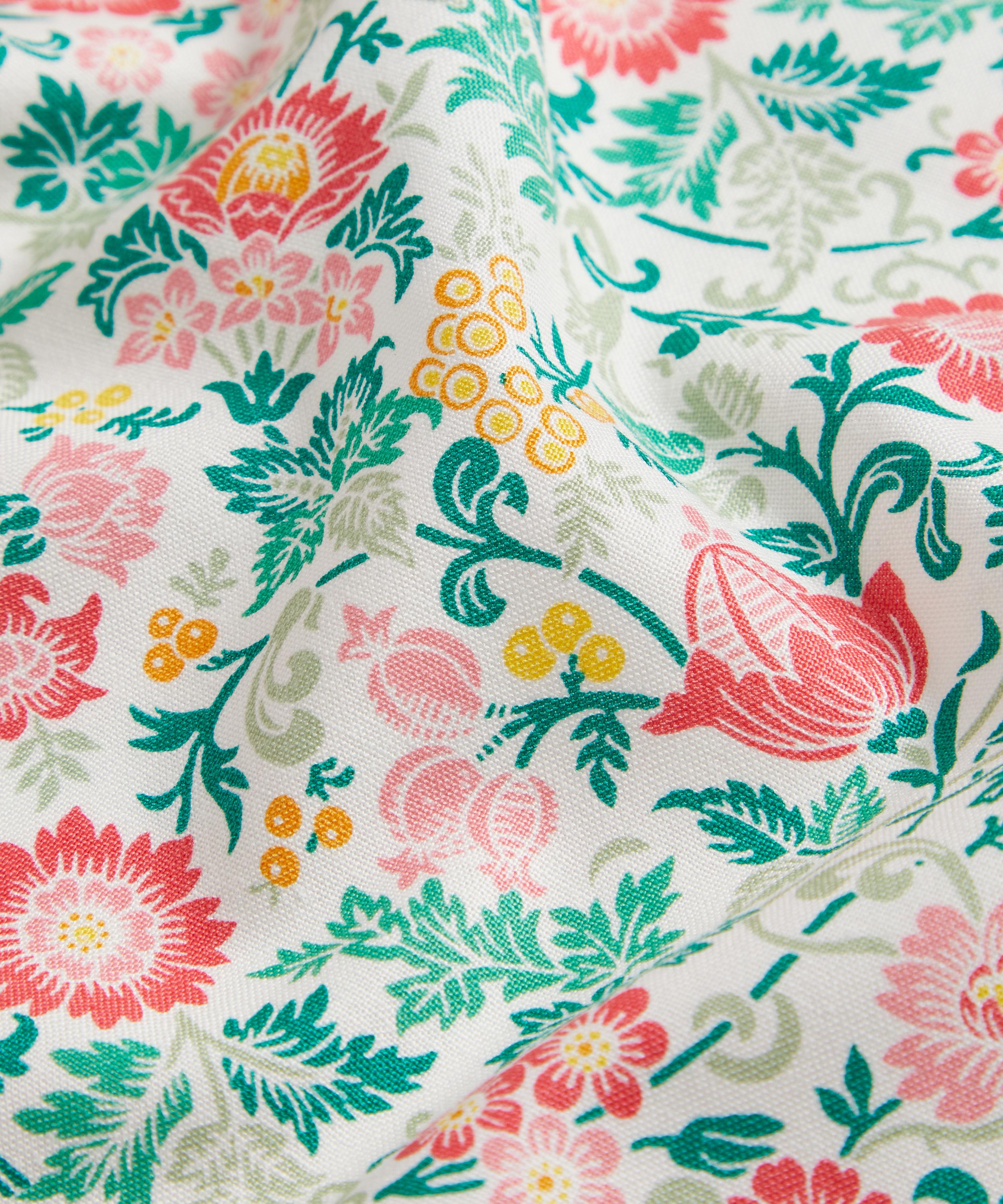 Annabelle Bailey is an Asian style botanical featuring trailing ornamental flowers, elegant leaves, and delectable berries. It is printed on our Lasenby base – designed specifically for quilting, this soft cotton is suitable for a range of creative projects, including bedspreads, cushions and cosies. It is machine washable and durable enough for daily use, with each richly coloured design created using traditional screen-printing techniques.