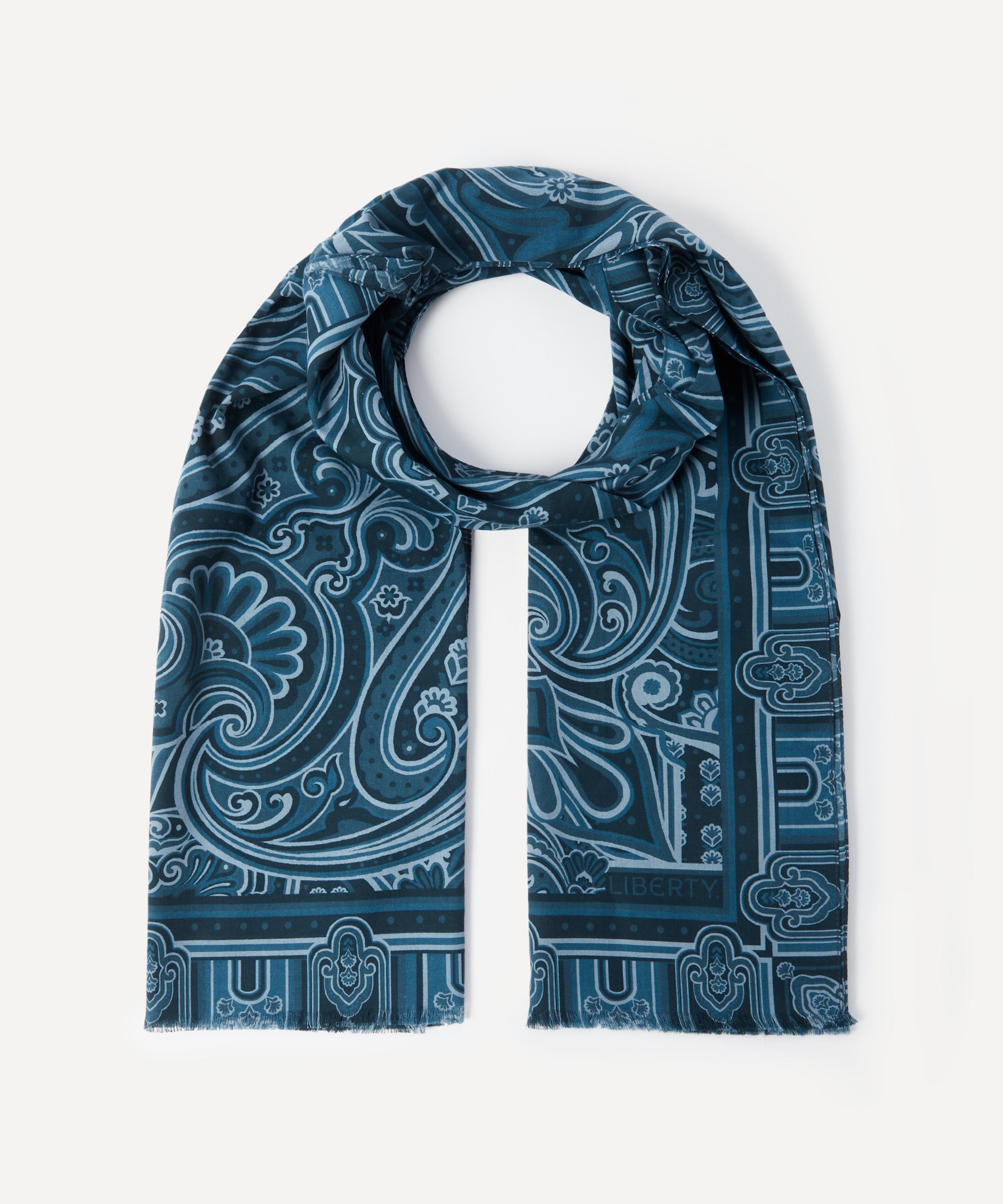 Elevate your daily edit with the Harlequin Paisley cotton scarf, featuring an archival Liberty design for a heritage-inflected addition to your accessories arsenal.