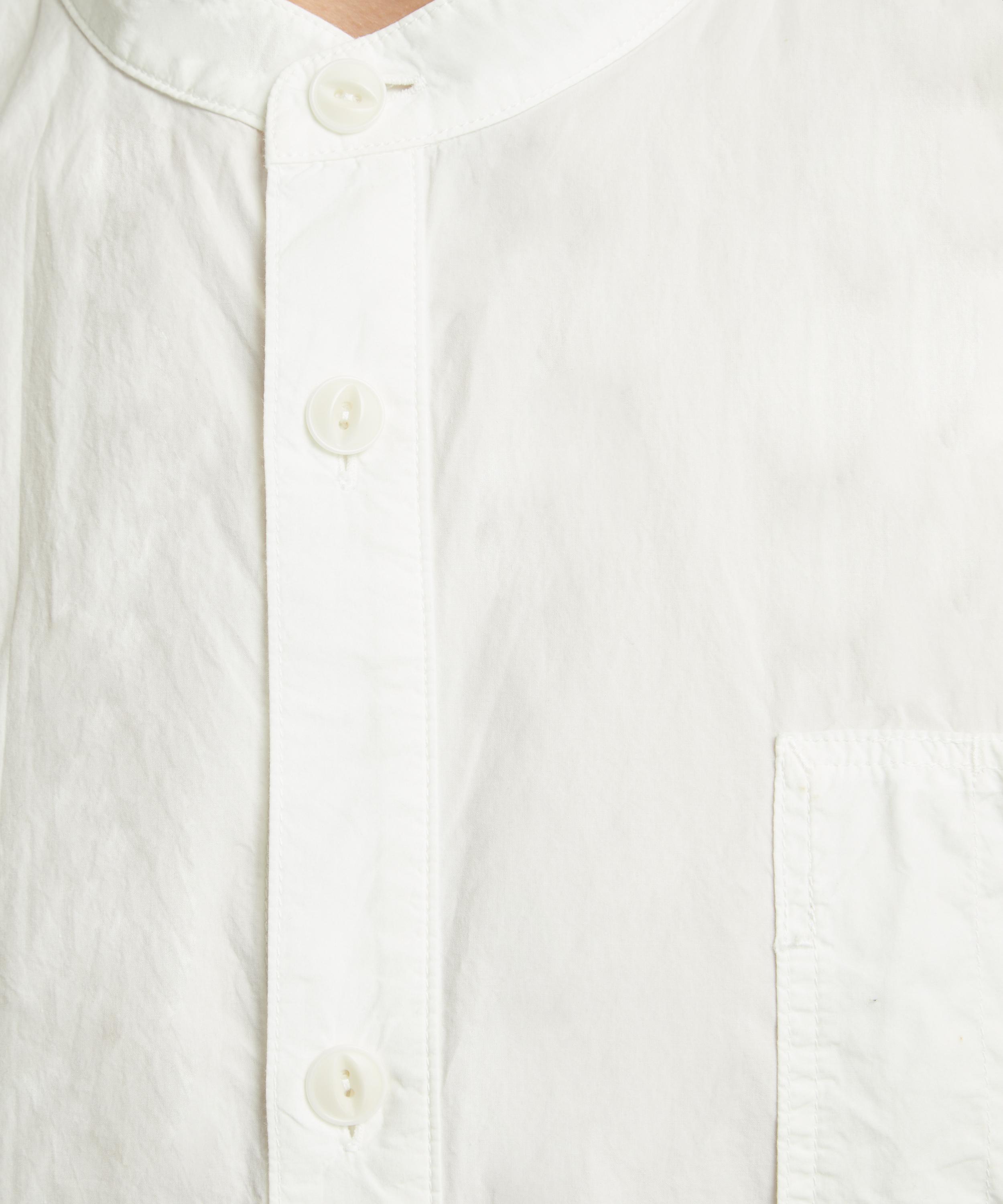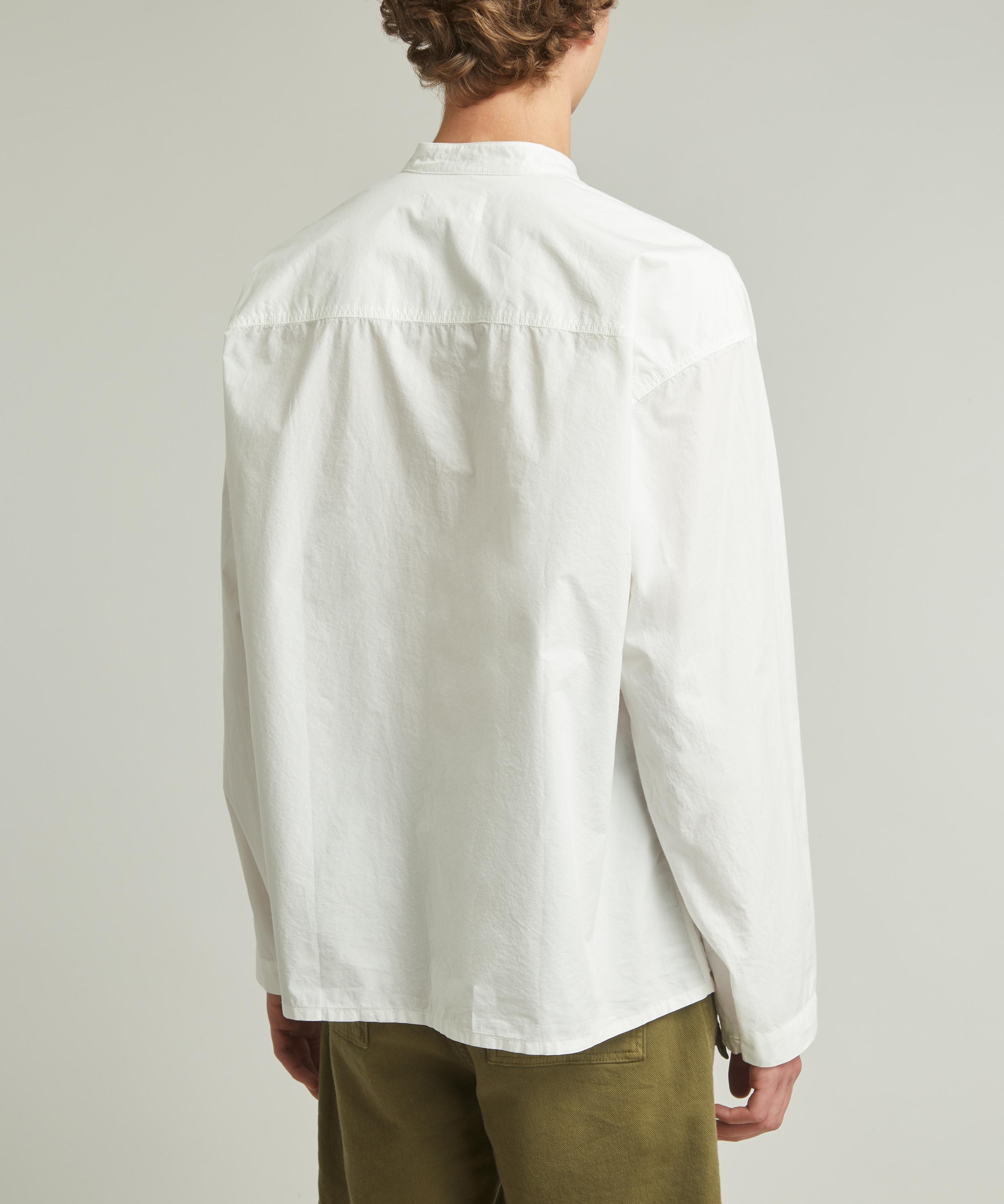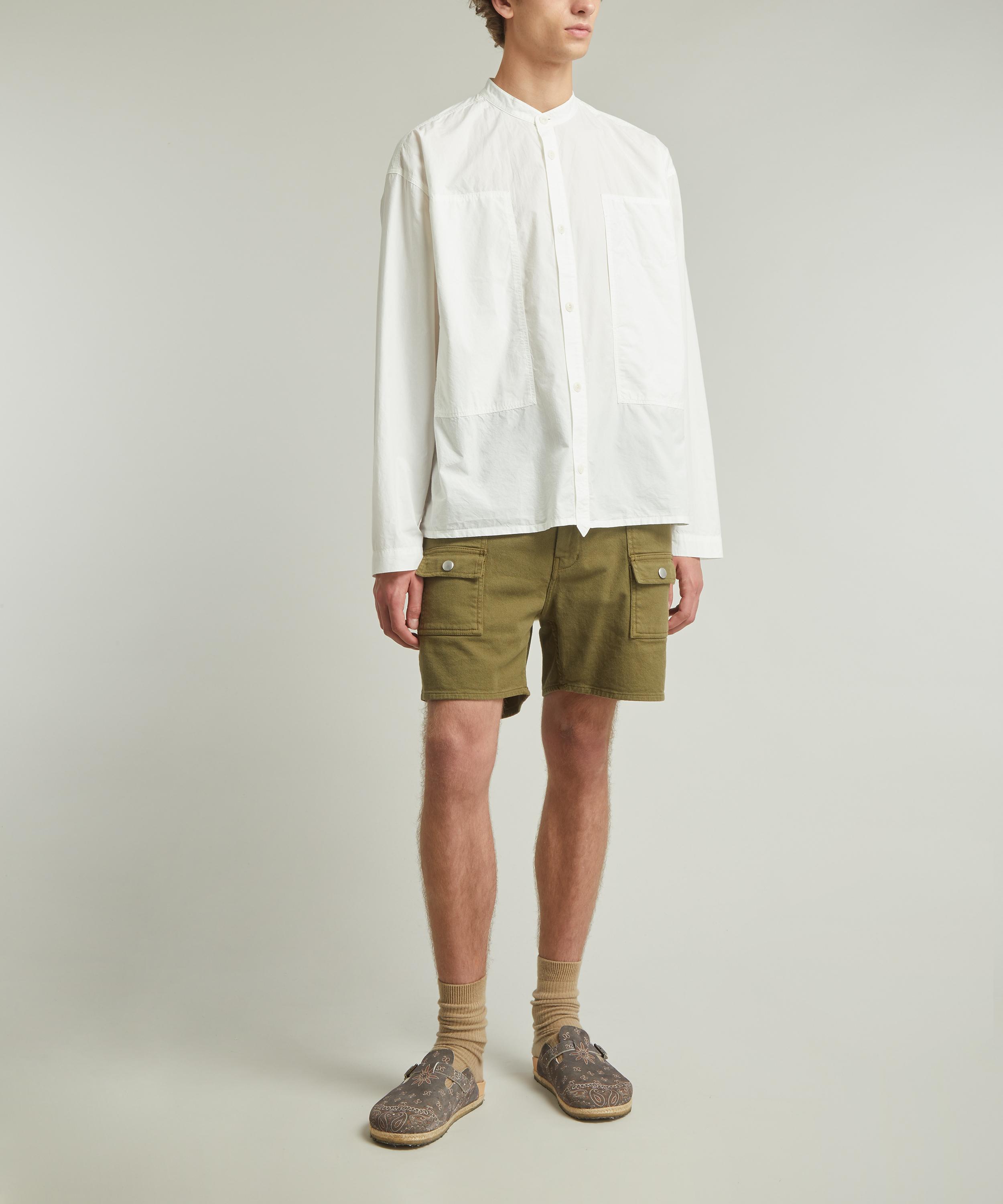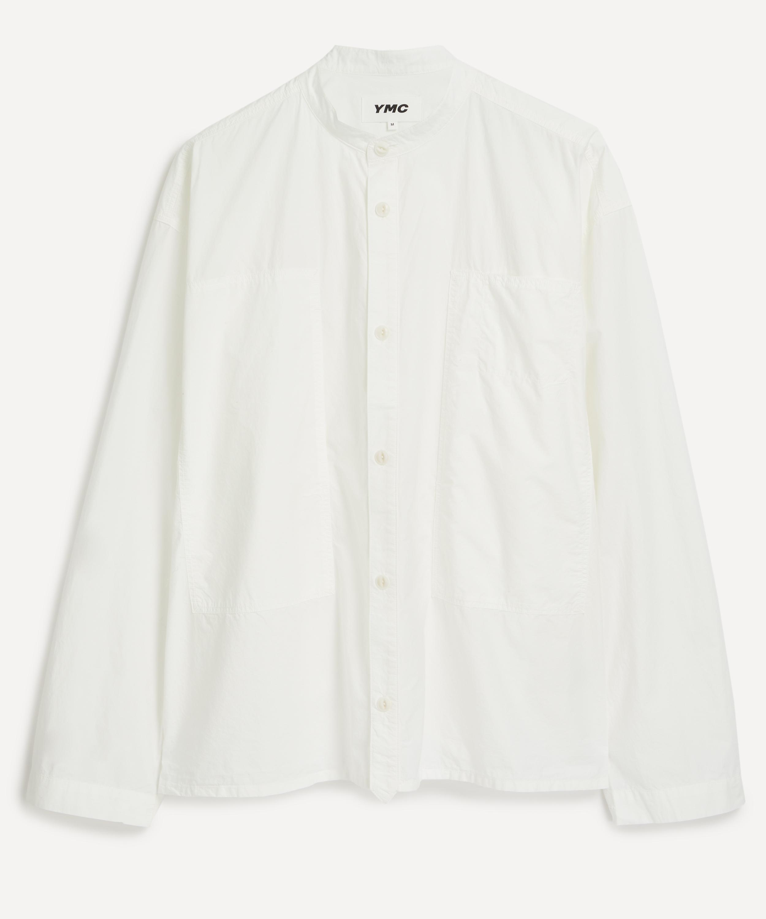 Cut from Italian garment dyed ultrafine cotton, this easy-going shirt reflects YMC’s meticulous eye for detail with lapped seams and an understated grandad collar. Oversized chest patch pockets, corozo button fastenings and a pointed shape lower front placket complete the look – layer over a boxy tee for a laid-back look.