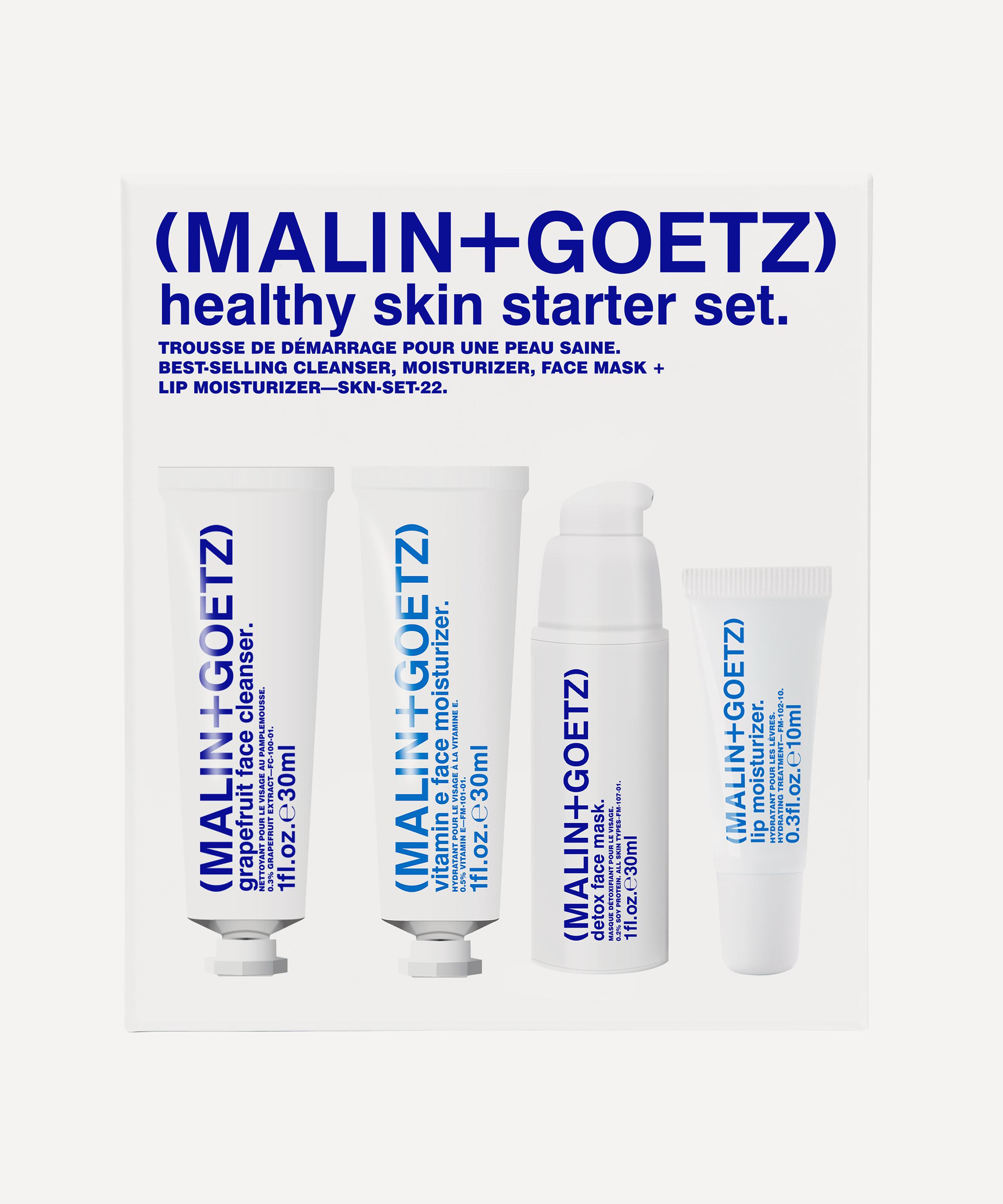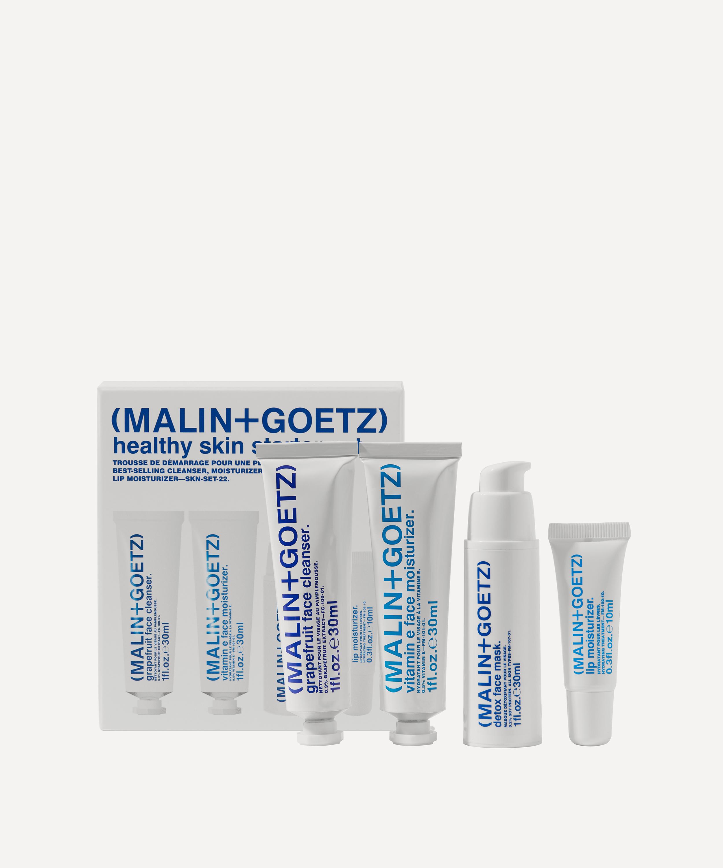 Discover your new skin care routine, delivering a radiant, clear complexion with this expertly curated Healthy Skin Starter Set from MALIN+GOETZ. Featuring four trial-sized products from their range including the Grapefruit Face Cleanser, infused with natural grapefruit extract to purify and balance skin and the Vitamin E Face Moisturiser, a nourishing cream enriched with chamomile fatty acids and antioxidants.