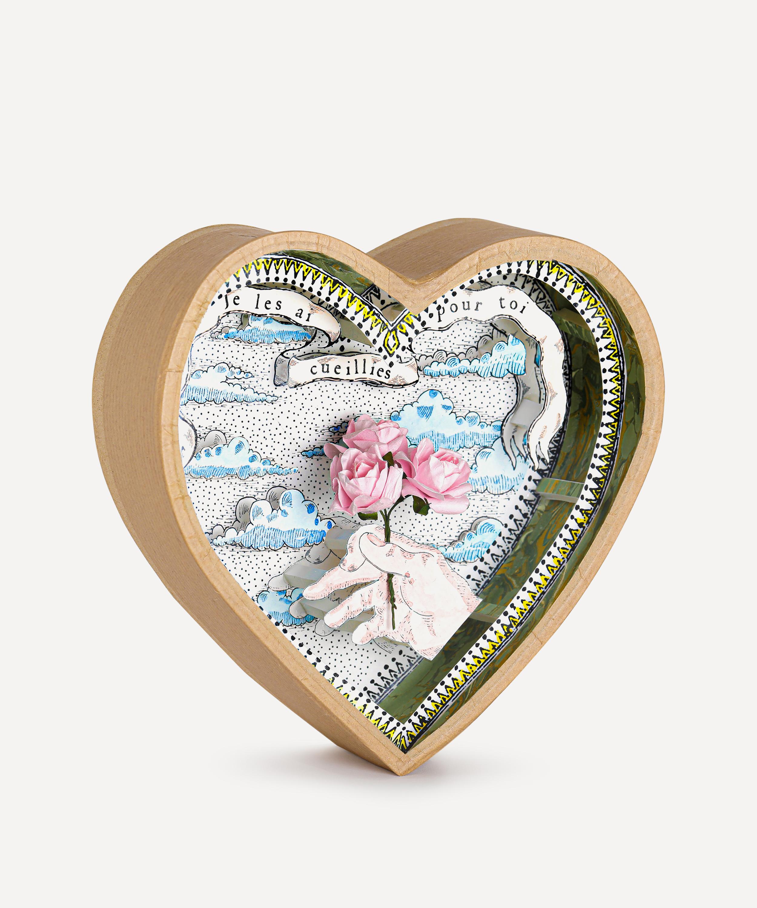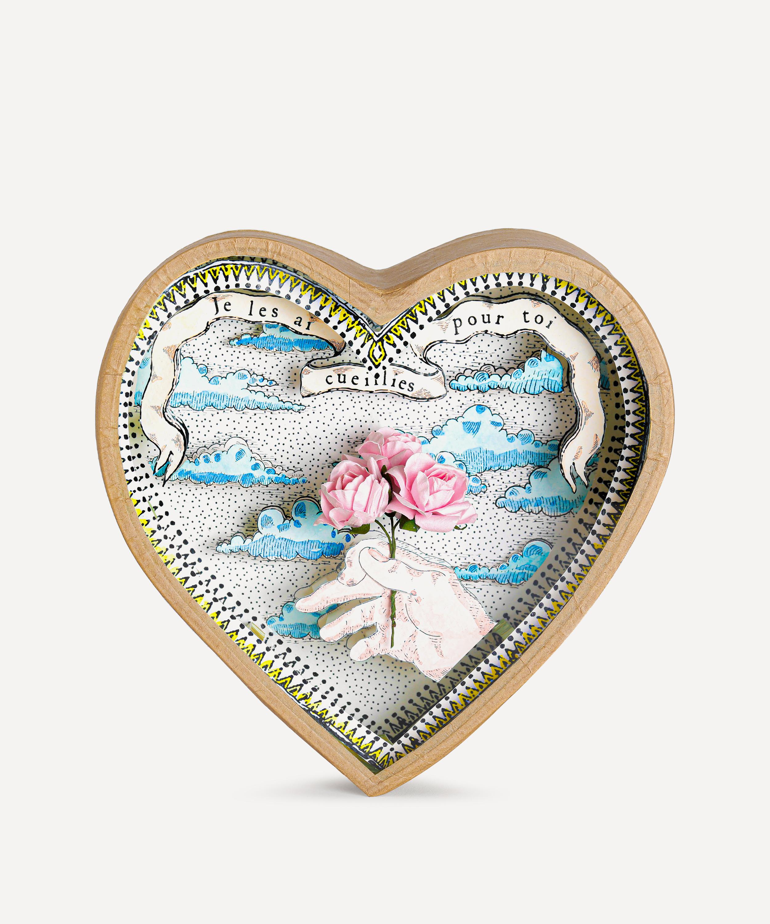 Presenting the eponymous founder’s whimsical style, this charming posy design is beautifully displayed here in the form of a heart-shaped Showcase of Wonder. The Vitrine À Merveilles is a 3D volume object, delicately crafted from papier-mâché in Paris and complete with a glass window - ready to display on a mantelpiece or shelfscape for an elegant dose of eclecticism.