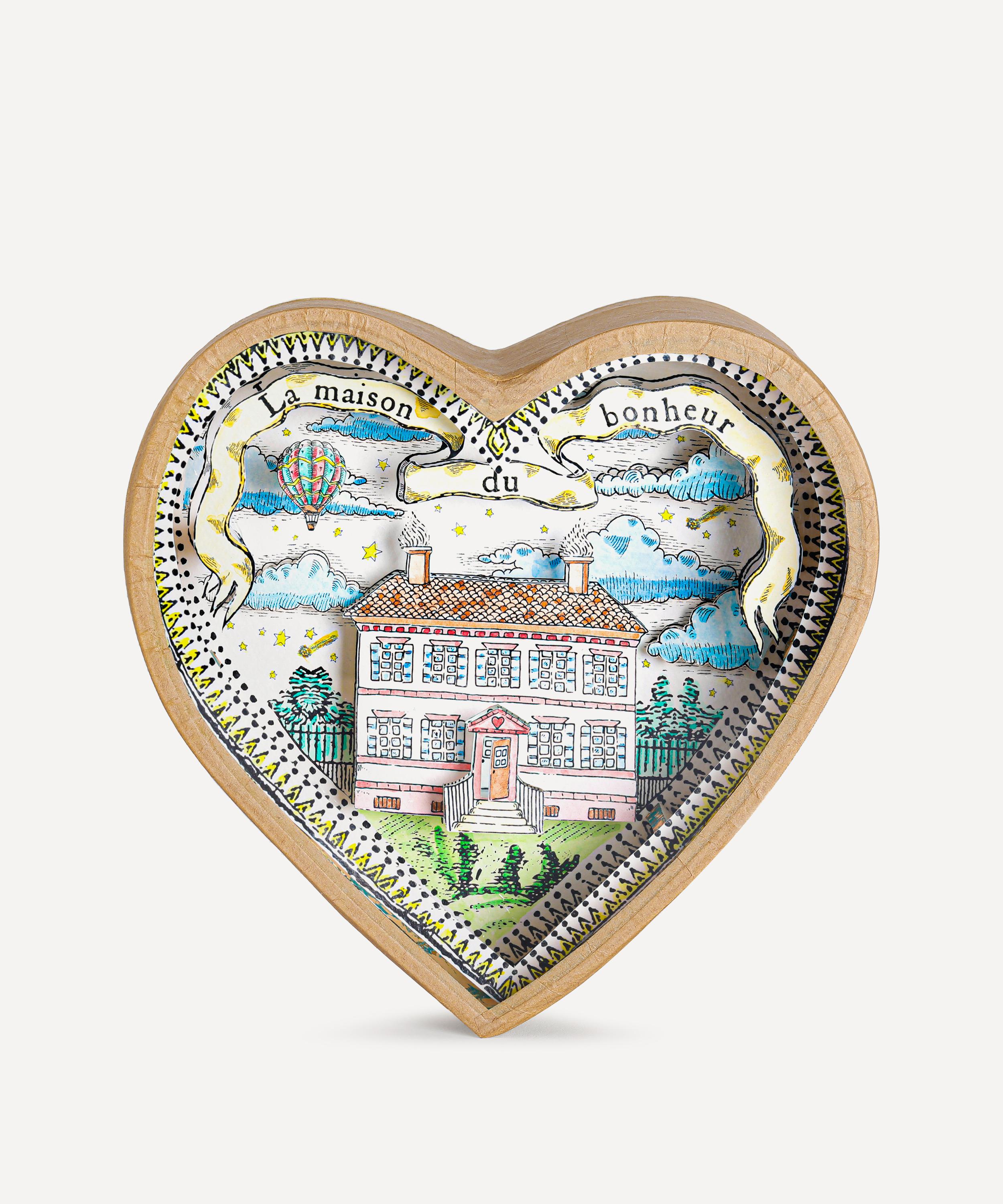 Presenting the eponymous founder’s Normandy home, this charming design is beautifully displayed here in the form of a heart-shaped Showcase of Wonder. The Vitrine À Merveilles is a 3D volume object, delicately crafted from papier-mâché in Paris and complete with a glass window - ready to display on a mantelpiece or shelfscape for an elegant dose of eclecticism.