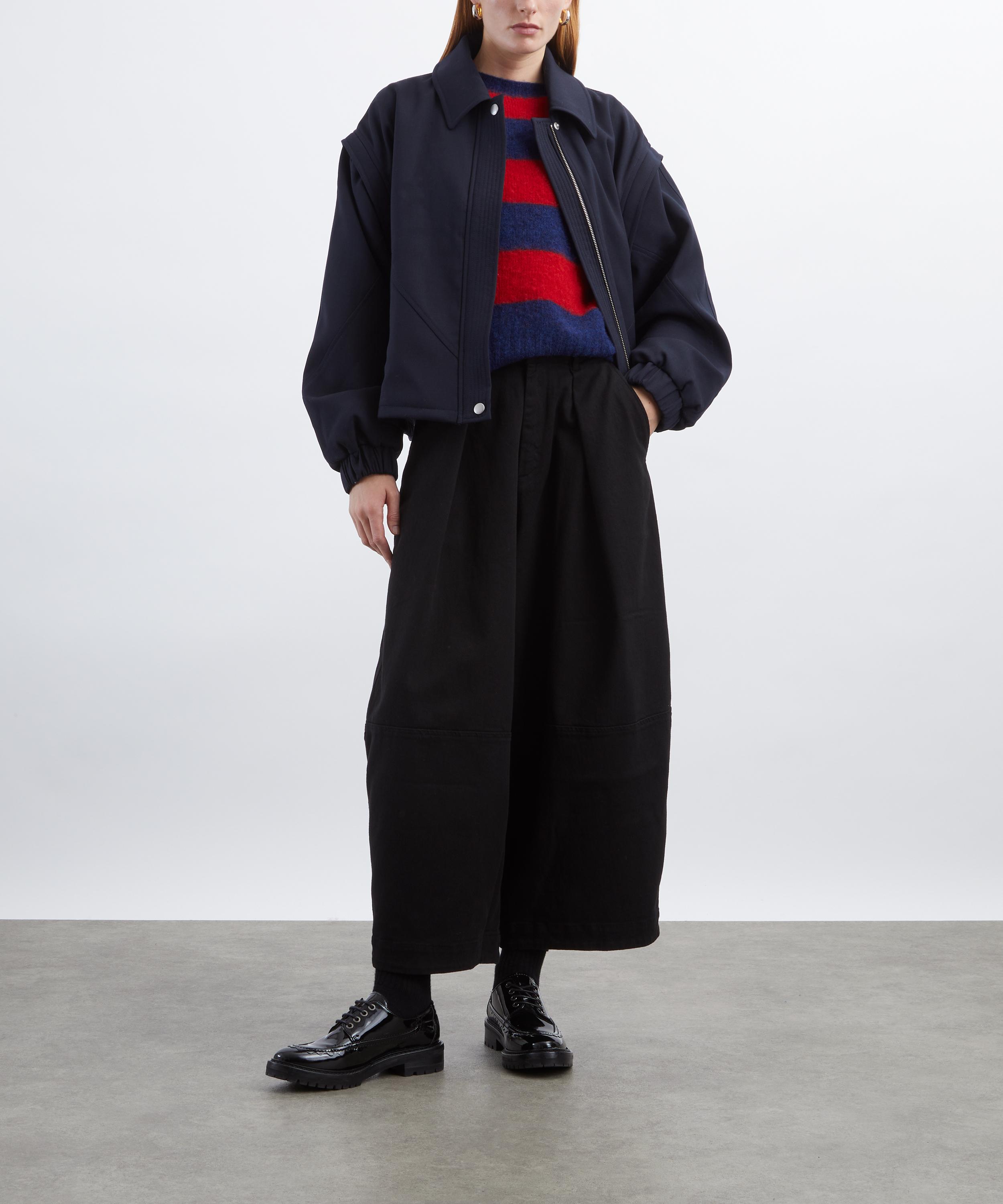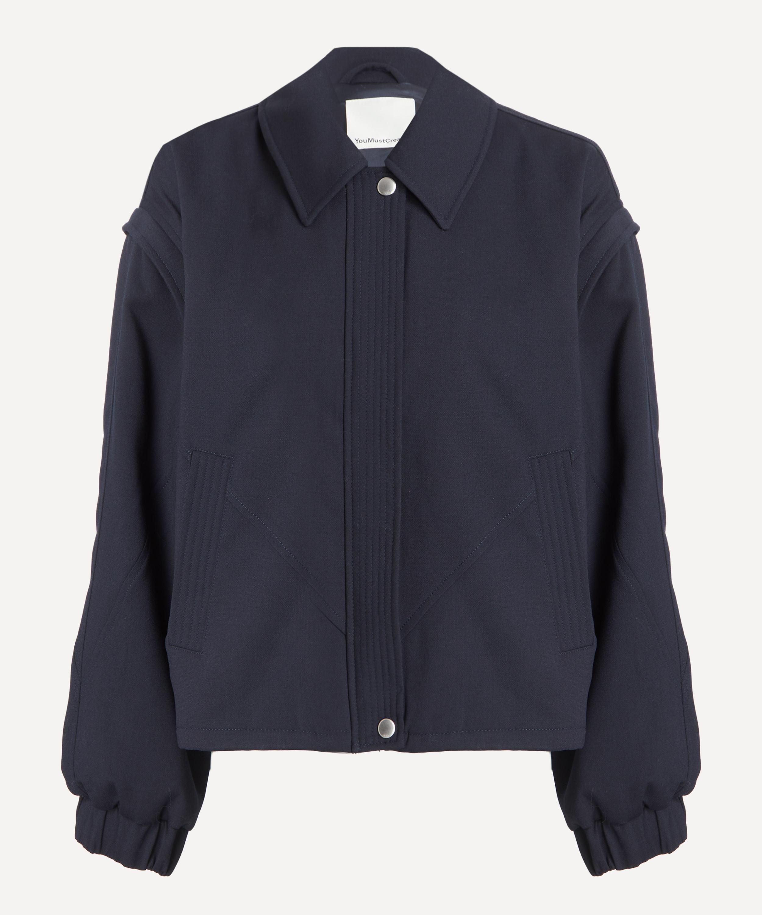 Crafted from a wool blend, this collared bomber jacket is cut for a boxy fit and features a concealed zip fastening, front welt pockets, an adjustable drawcord hem, and detachable sleeves for versatile styling.