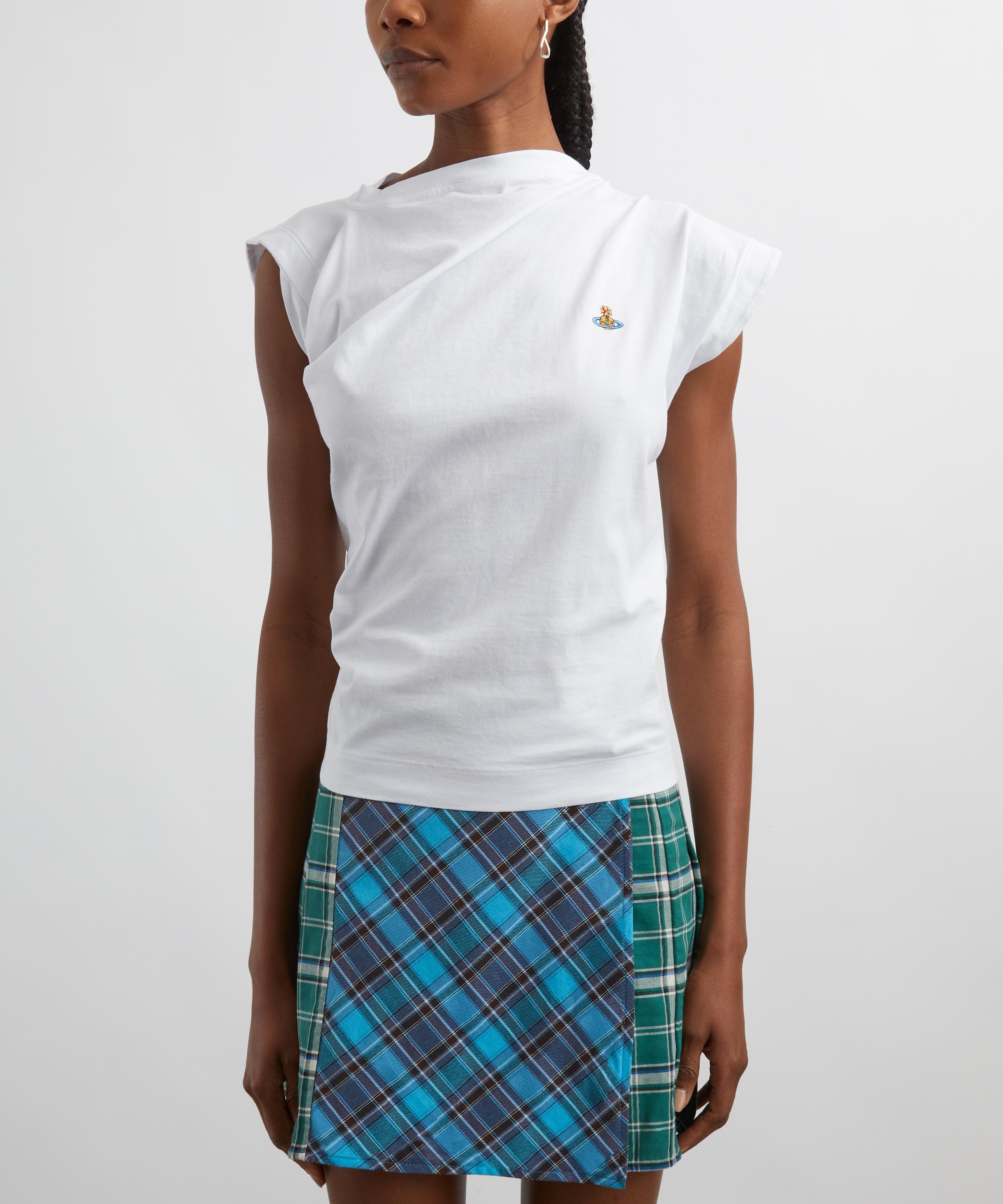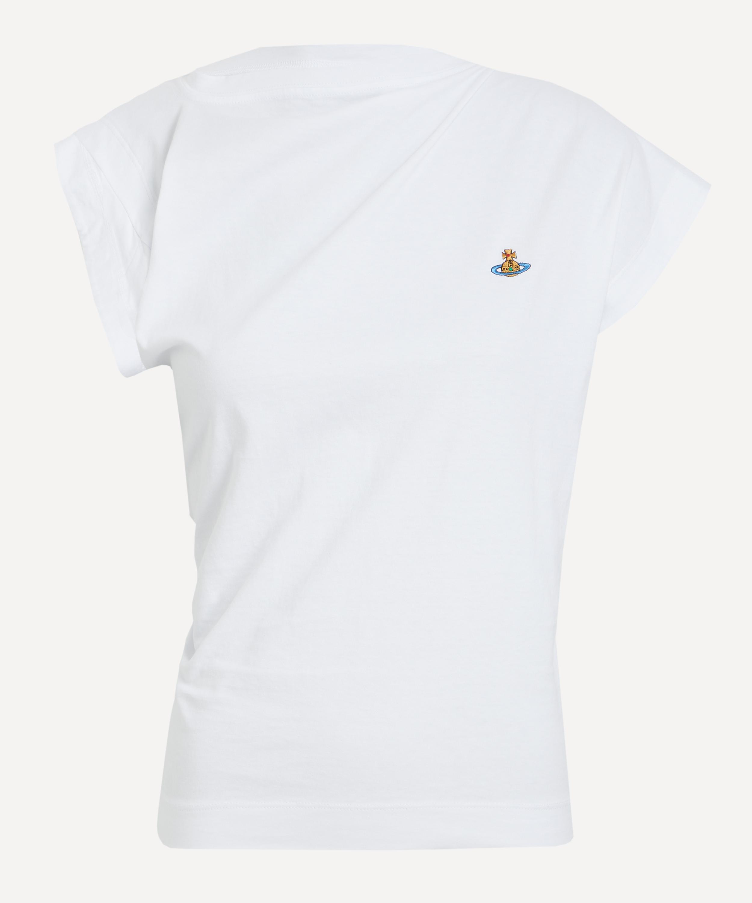 Crafted from soft cotton, this abstract t-shirt features Vivienne Westwood’s archival tailoring with a slash-inspired neckline, drape details, and twisted fabric at the back. Finished with a multicoloured orb embroidered on the chest, it effortlessly elevates your casual look.