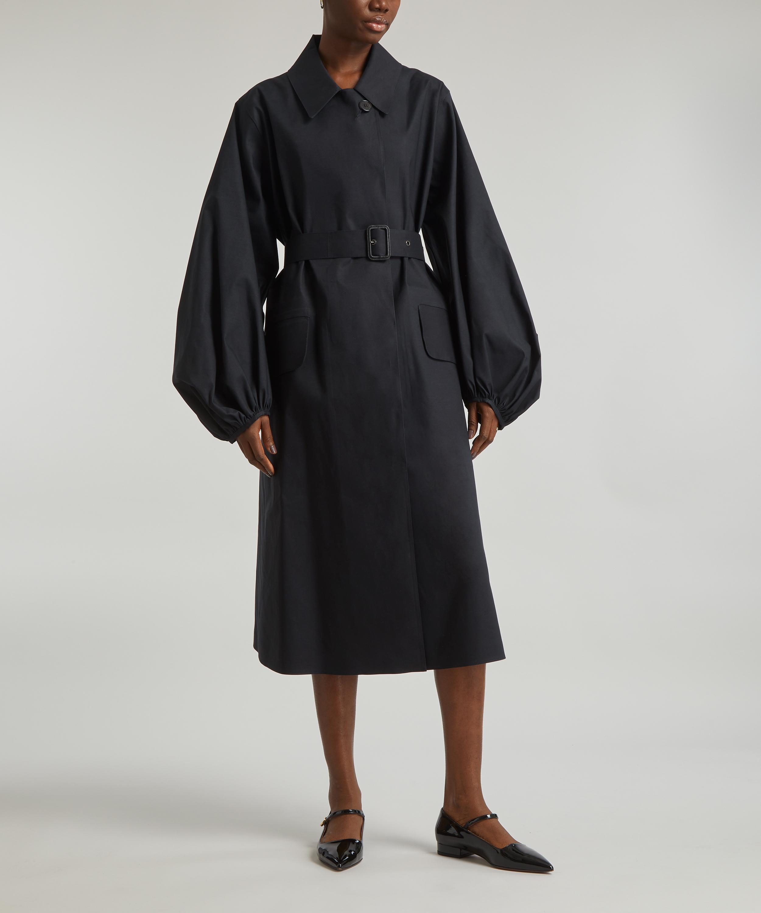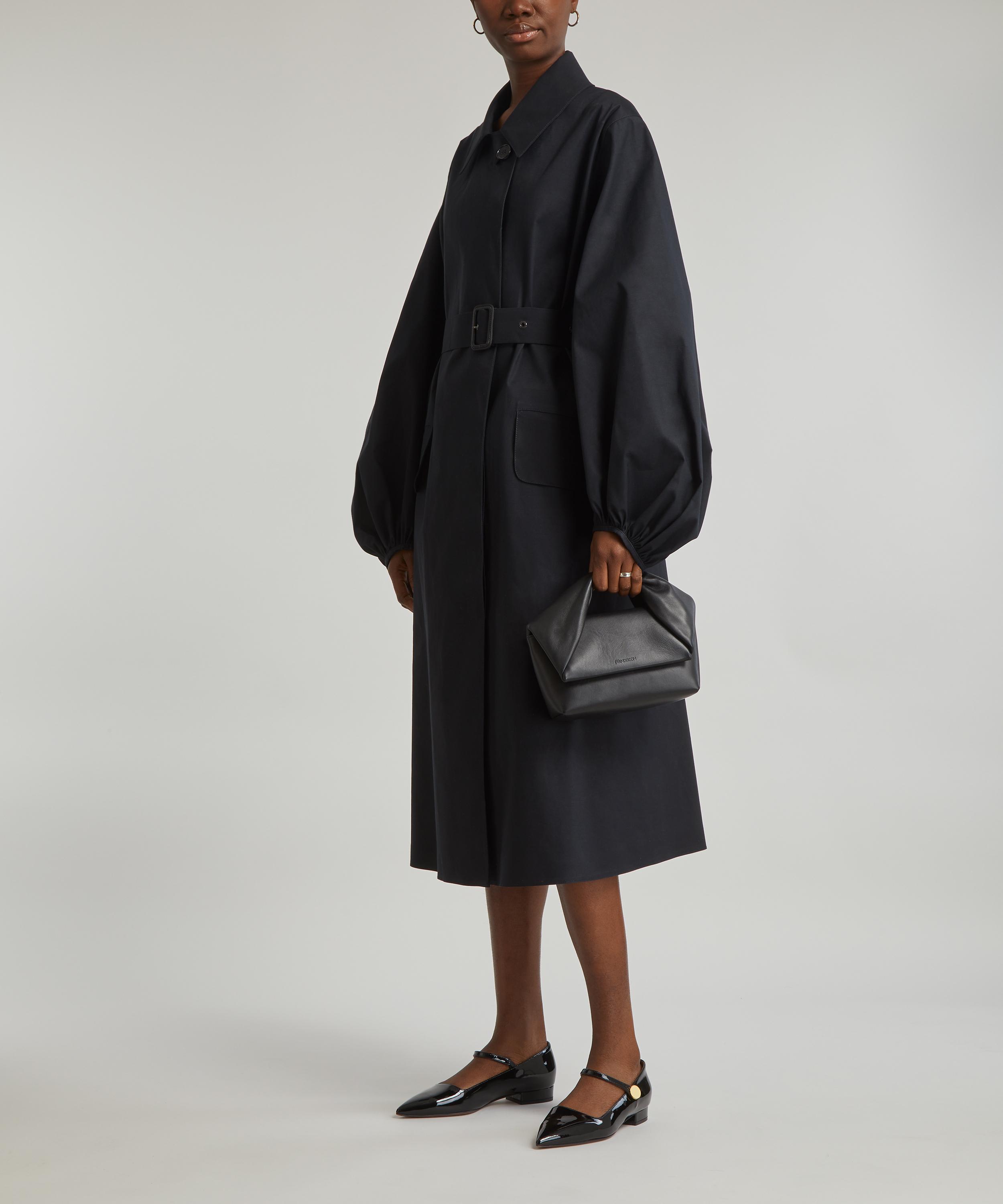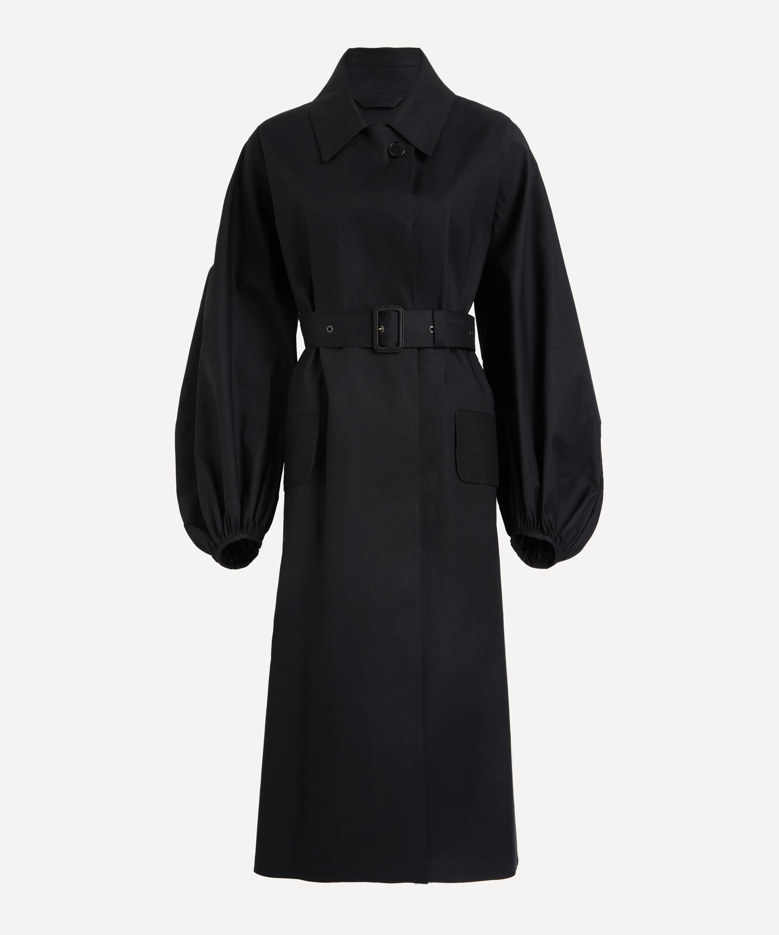 Made in collaboration with Mackintosh, the Helen coat from Cecilie Bahnsen embodies the designer’s alluring aesthetic for whimsical silhouettes with a sculptural edge. A voluminous take on utilitarian outerwear, it’s crafted from daffodil bonded cotton with billowing, sculptural sleeves and a cinched-in waist complete with an adjustable buckle-belt, and front flap-pockets for a classic finish.