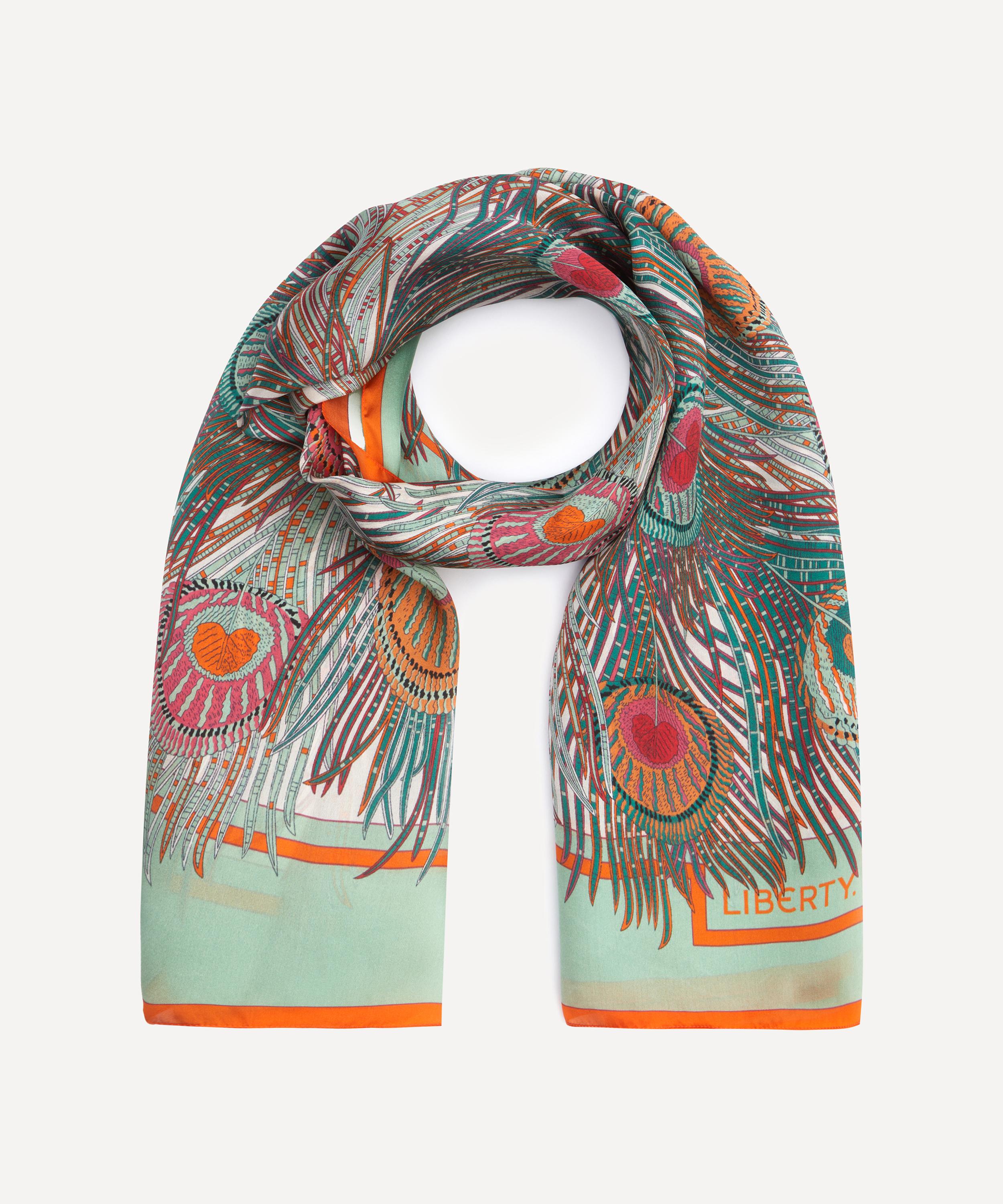 New for this season, this silk molare scarf features our iconic Hera print - originally designed by Arthur Silver in 1887, Hera boasts a true heritage icon with its all over peacock feather design. Complete with hand rolled hems, try draping it over neutral outerwear for a burst of contemporary colour, or knot it close to the neck to lock in warmth.