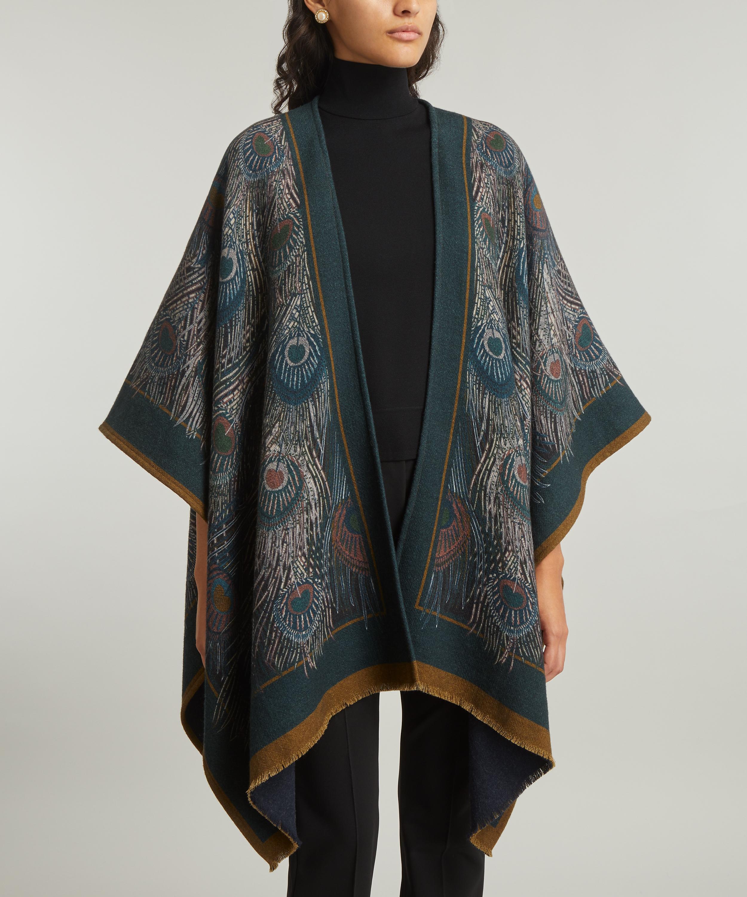 Bring out the colours this season with Liberty’s Hera cape, offering a unique addition to your cold-weather wardrobe. Meticulously crafted from an ultra-soft wool, this chic cape features our Hera print – originally designed by Arthur Silver in 1887, Hera boasts a true heritage icon with its all-over peacock feathers which have been individually woven to create a design which seamlessly drapes over the shoulders as its worn. Designed to instantly dress up your edit, it’s perfect for layering to keep your warm during colder seasons.