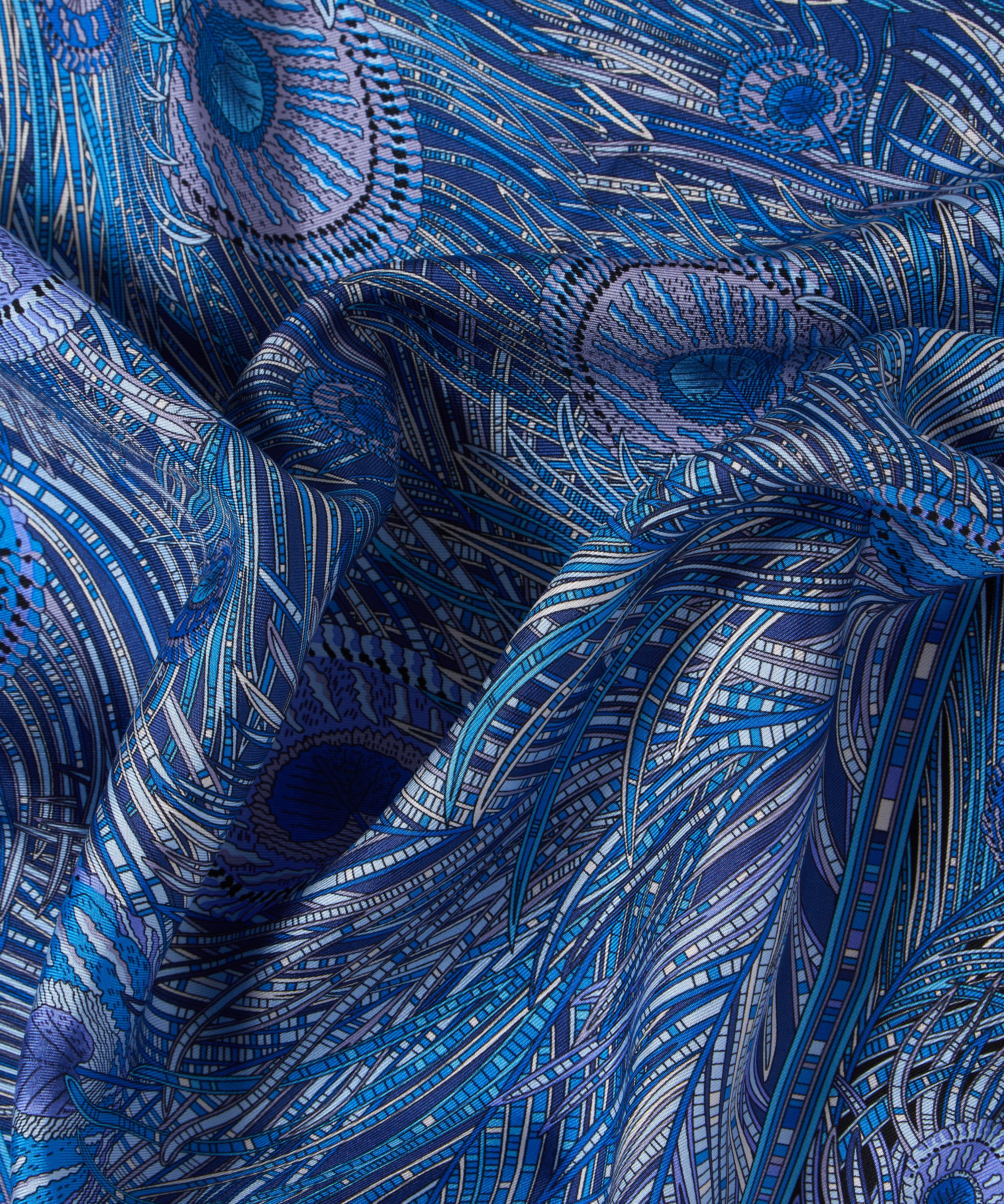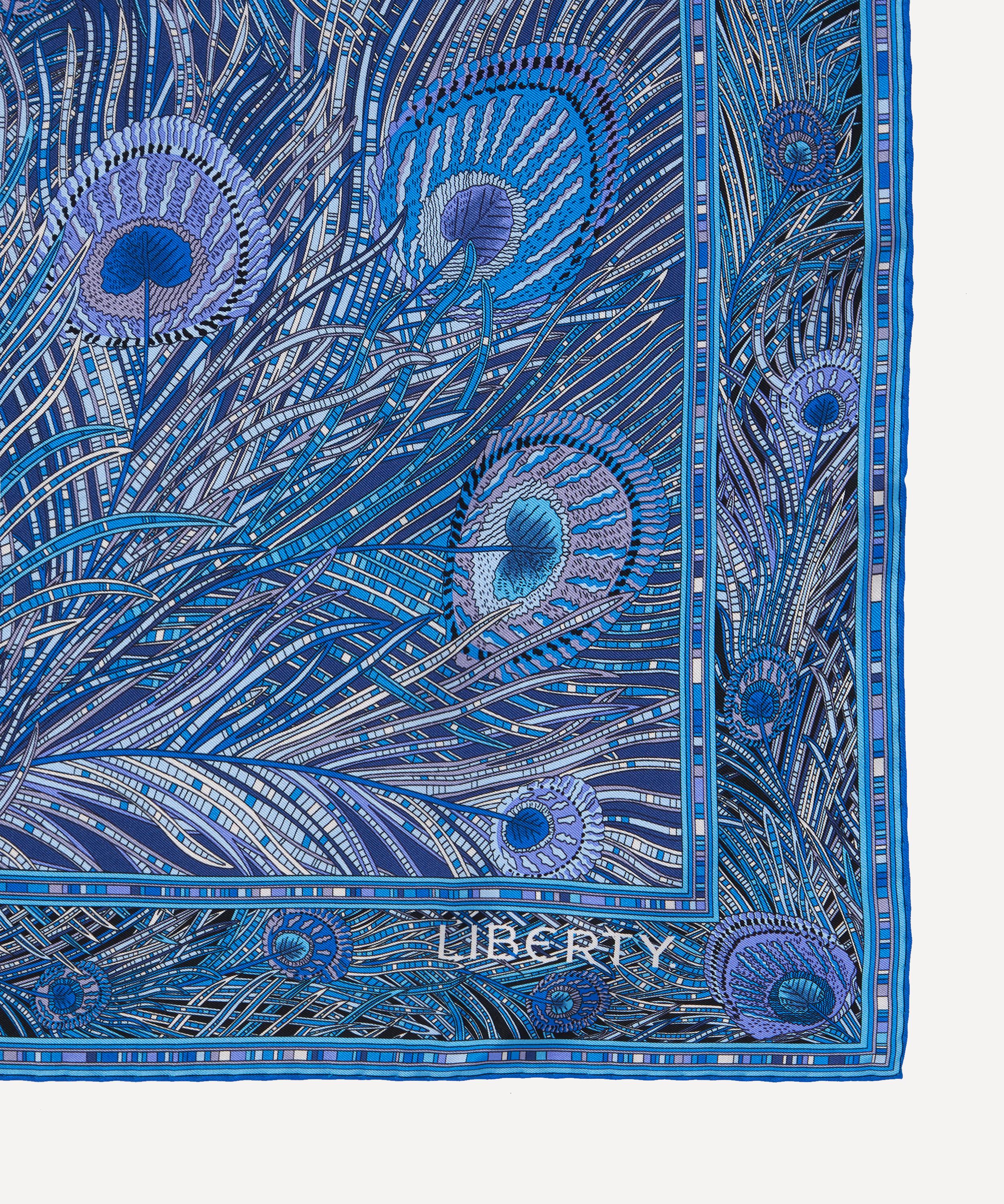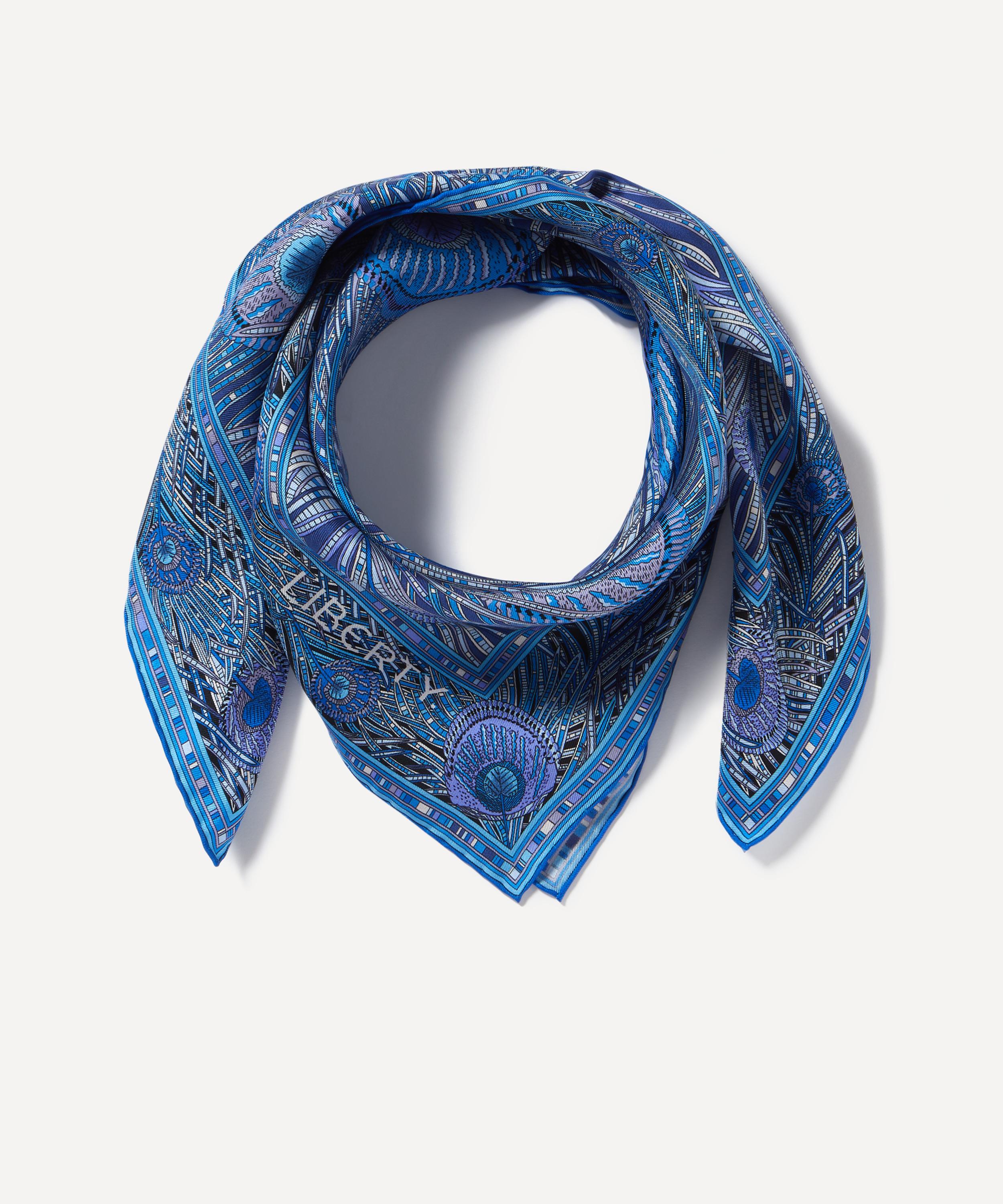 Give your ensemble a finishing flourish with this striking Liberty silk scarf. Credited to an 1887 design by Arthur Silver, founder of the Silver Studio, Hera has been a Liberty favourite since the mid 1890s when it was first printed onto Liberty furnishing fabrics. The peacock feather was a frequently used symbol during the Aesthetic Movement of the 1880s. Pair it with statement earrings and voluminous tailoring for maximalist daytime glamour.