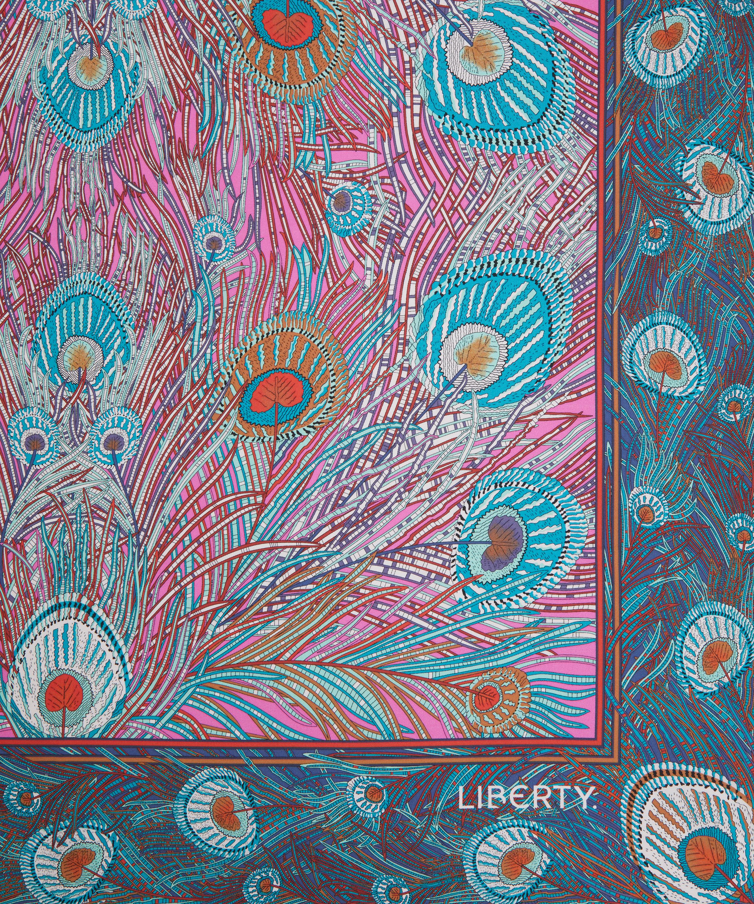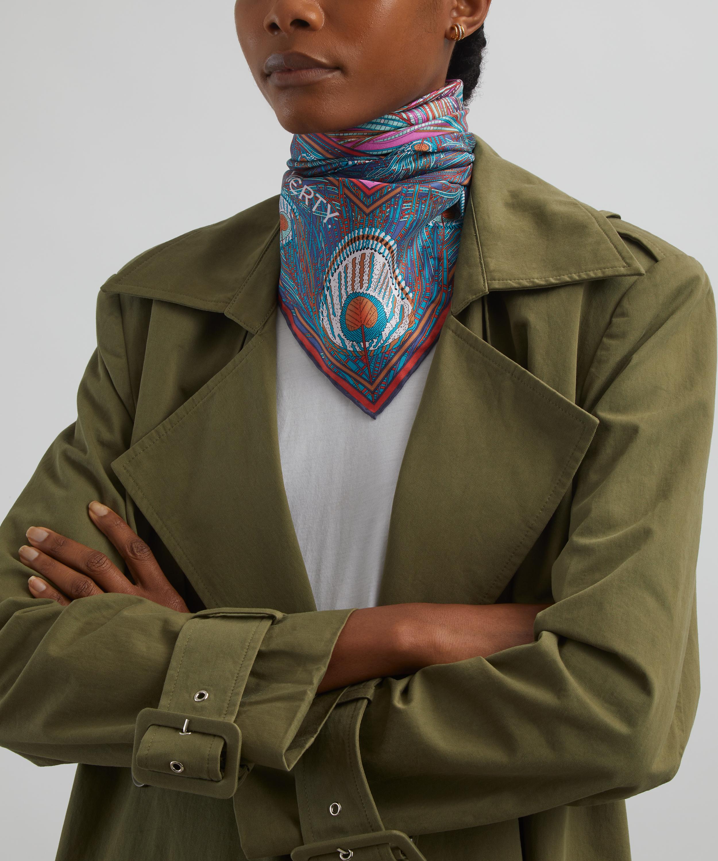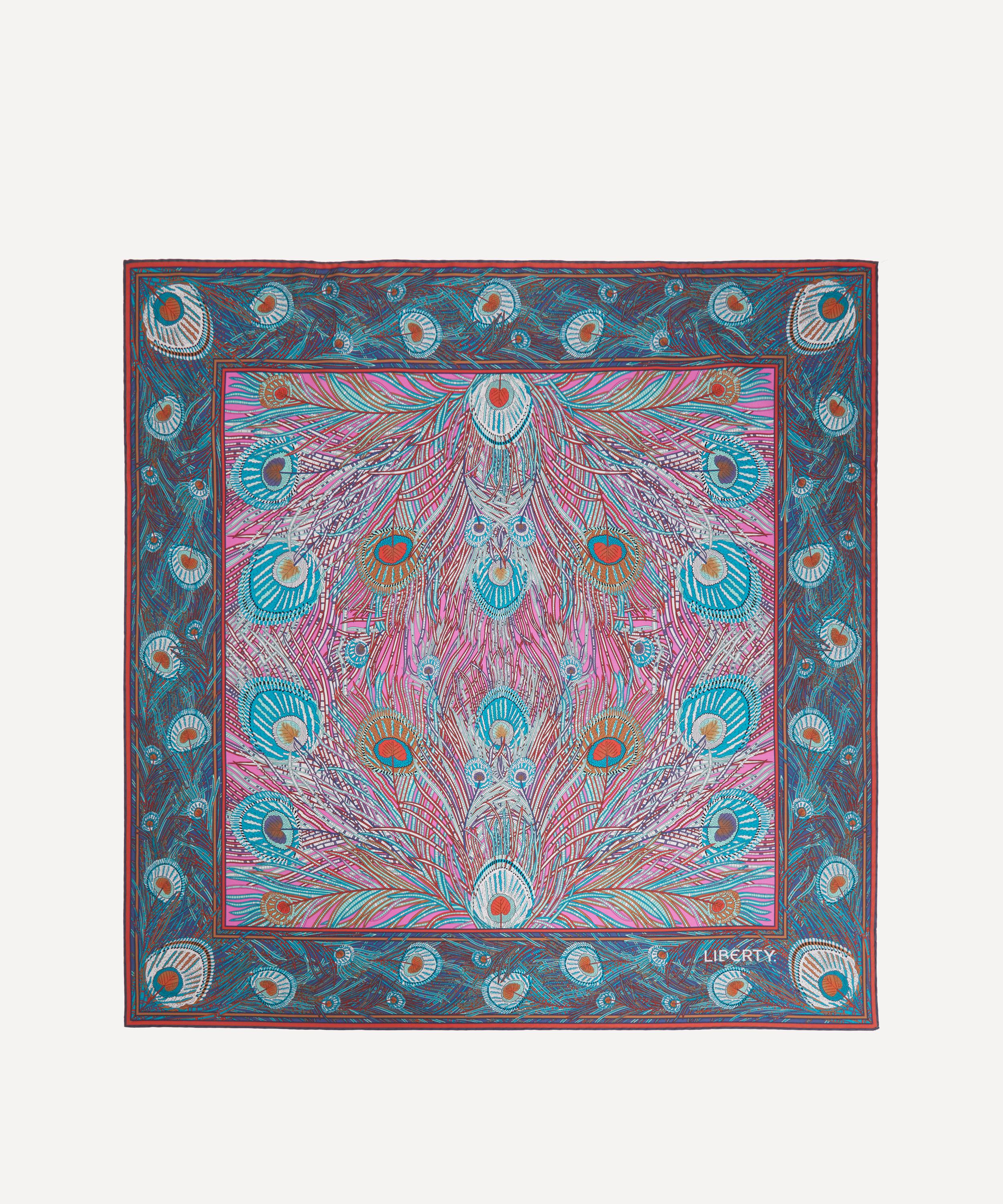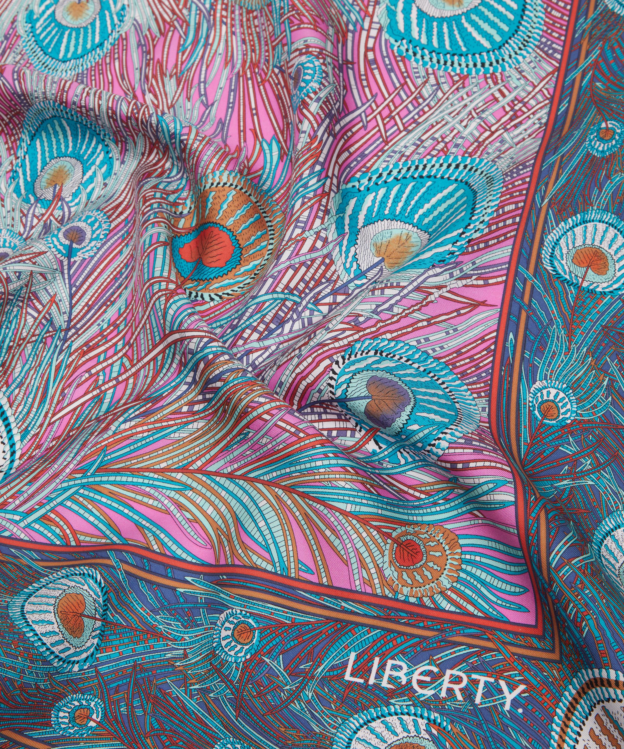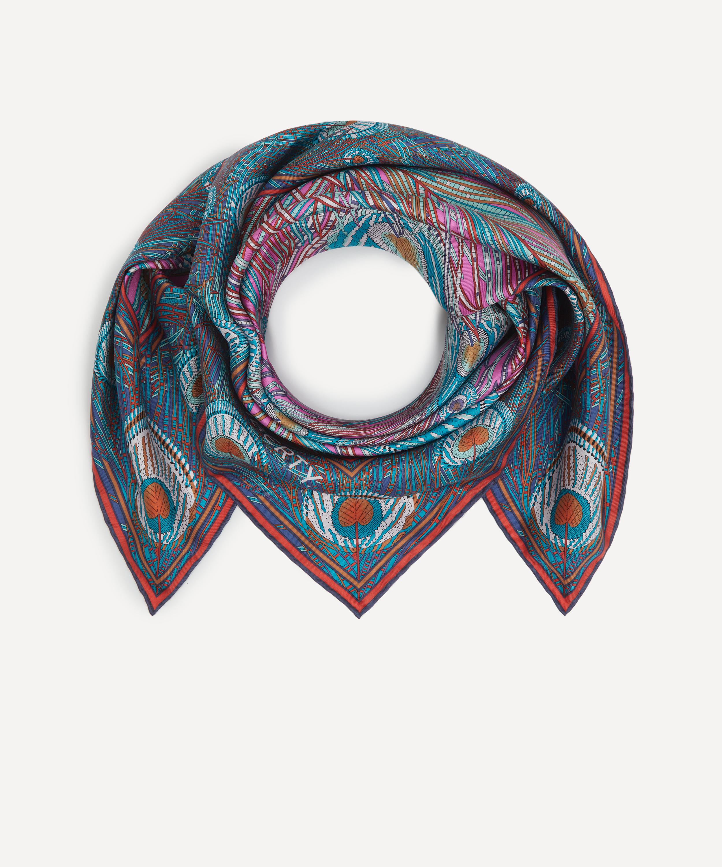 This classic silk square scarf is beautifully decorated in one of Liberty's best-loved prints. Credited to an 1887 design by Arthur Silver, founder of the Silver Studio, Hera has been a Liberty favourite since the mid 1890s when it was first printed onto Liberty furnishing fabrics. The peacock feather was a frequently used symbol during the Aesthetic Movement of the 1880s.