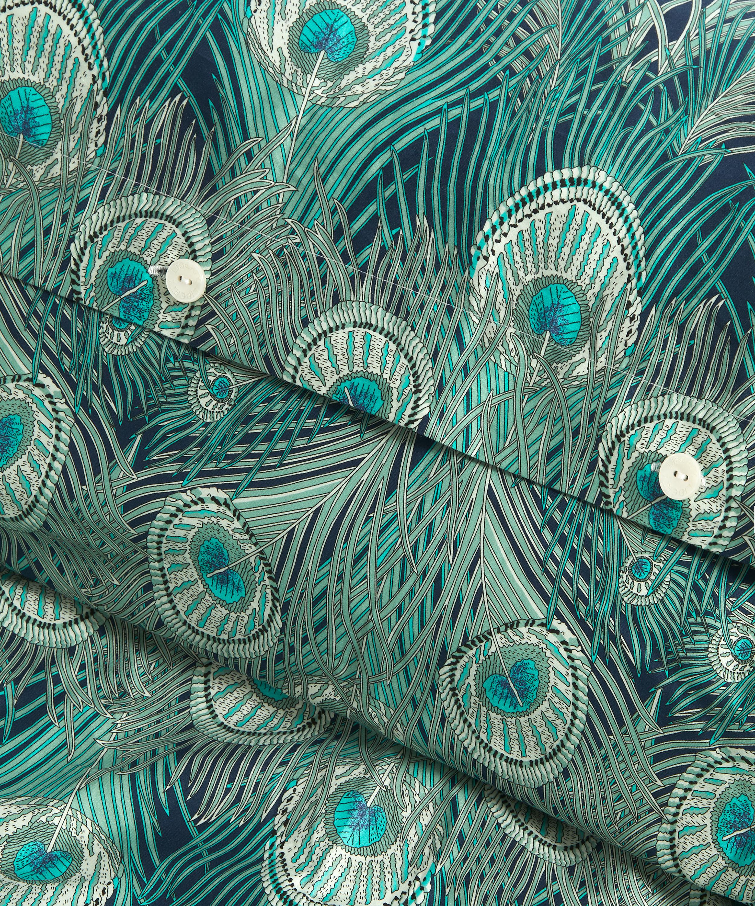 Liberty’s Hera duvet set features two standard pillowcases and a super king duvet cover, all expertly crafted from luxurious 300-thread-count cotton sateen – a silky-smooth and soft material with a sheeny mercerised finish. Hera is an icon of Liberty print heritage, taking its name from the Greek goddess of the same name whose sacred animal was the peacock. It features sinuously intertwined arrangement of peacock feathers - a popular symbol during the aesthetic movement of the 1880s. Use the set as a pop of vibrancy within a pared-down bedroom set-up, or go all out with ruffled lampshades, textural throws and clashing curtains to embrace the cottagecore aesthetic.