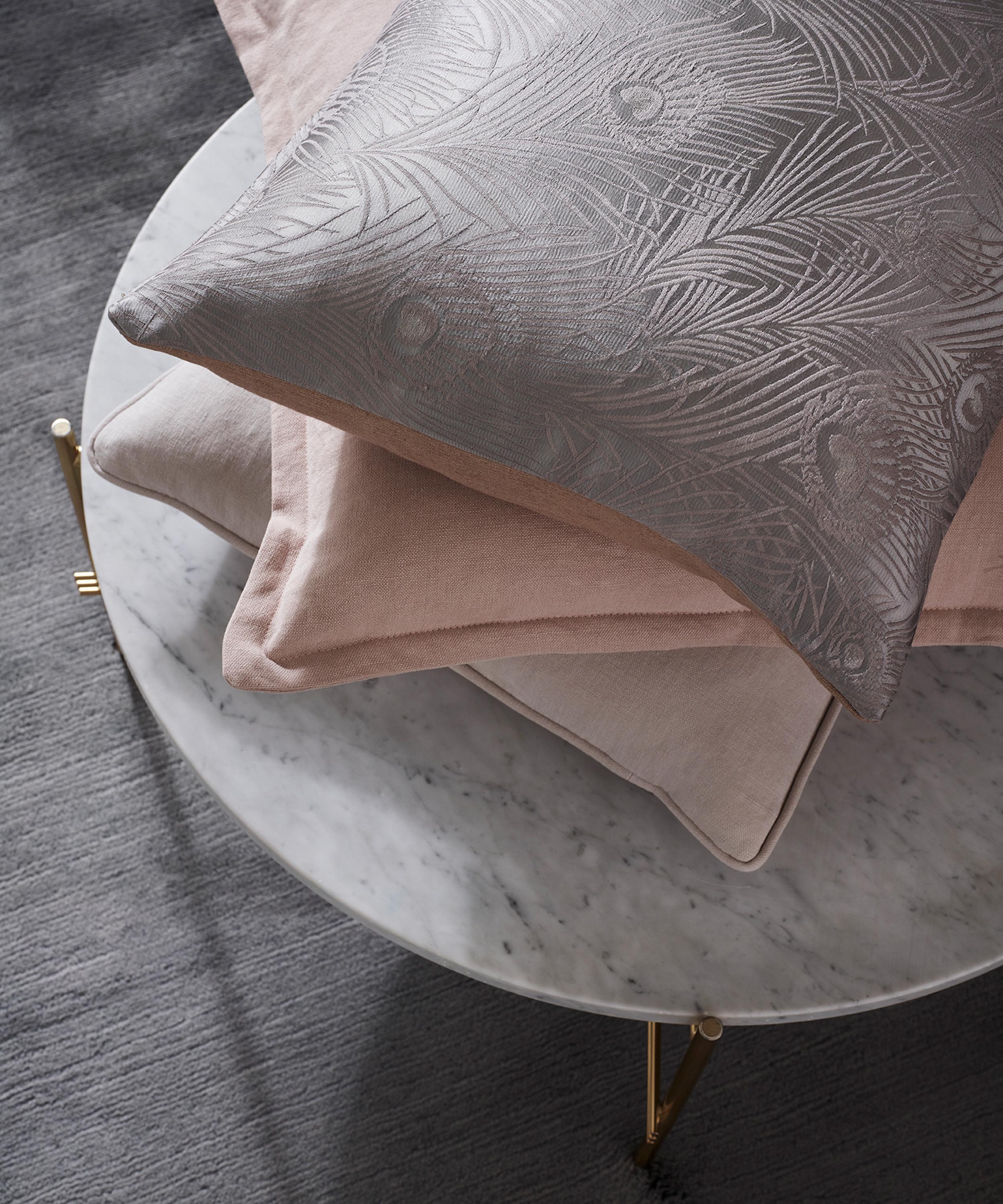 Hera Plume is a multidirectional one-colour version of Hera, inspired by the jacquard design for our Liberty silk pyjamas and adapted for modern interiors. The base is expertly woven in Italy using bespoke dyed linen and viscose, creating a soft effect with fine detail and rich colour effects. The mixed fibres of the piece-dyed jacquard weave creates beautiful matte and lustrous contrast effects, perfect for light domestic upholstery, soft cushions and luxurious drapery.