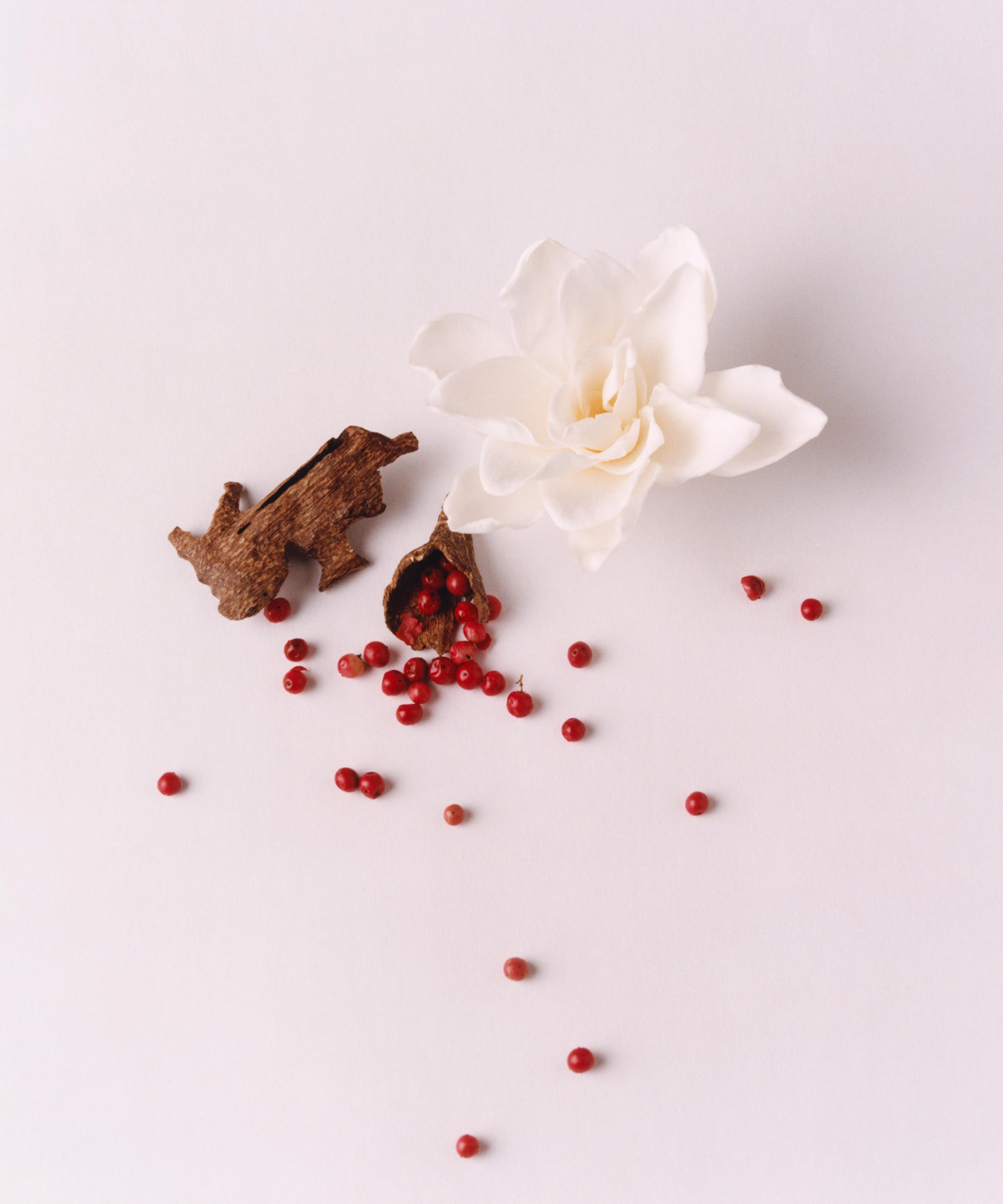 “I wanted to create something noble and so the queen of flowers: Jasmin Sambac, is enveloped by her sophisticated partner of Oud Wood. Together they weave back and forth between noble elegance and brilliant naturality.”