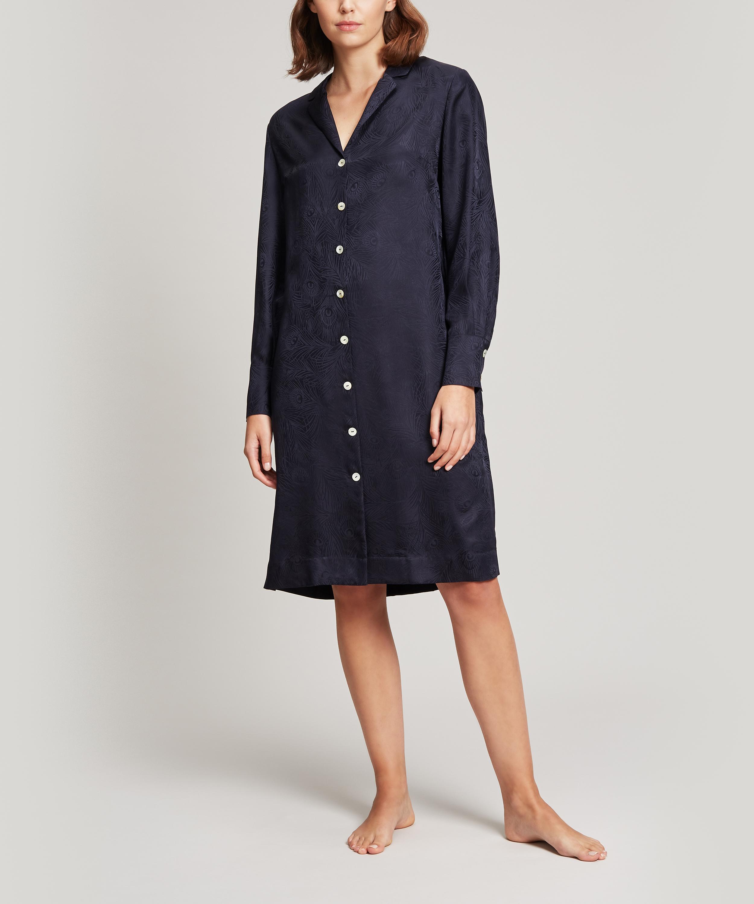Liberty’s nightshirt is created from luminous silk jacquard and woven with our Hera design – a heritage-inspired take on the ready-to-wear pyjama trend.
