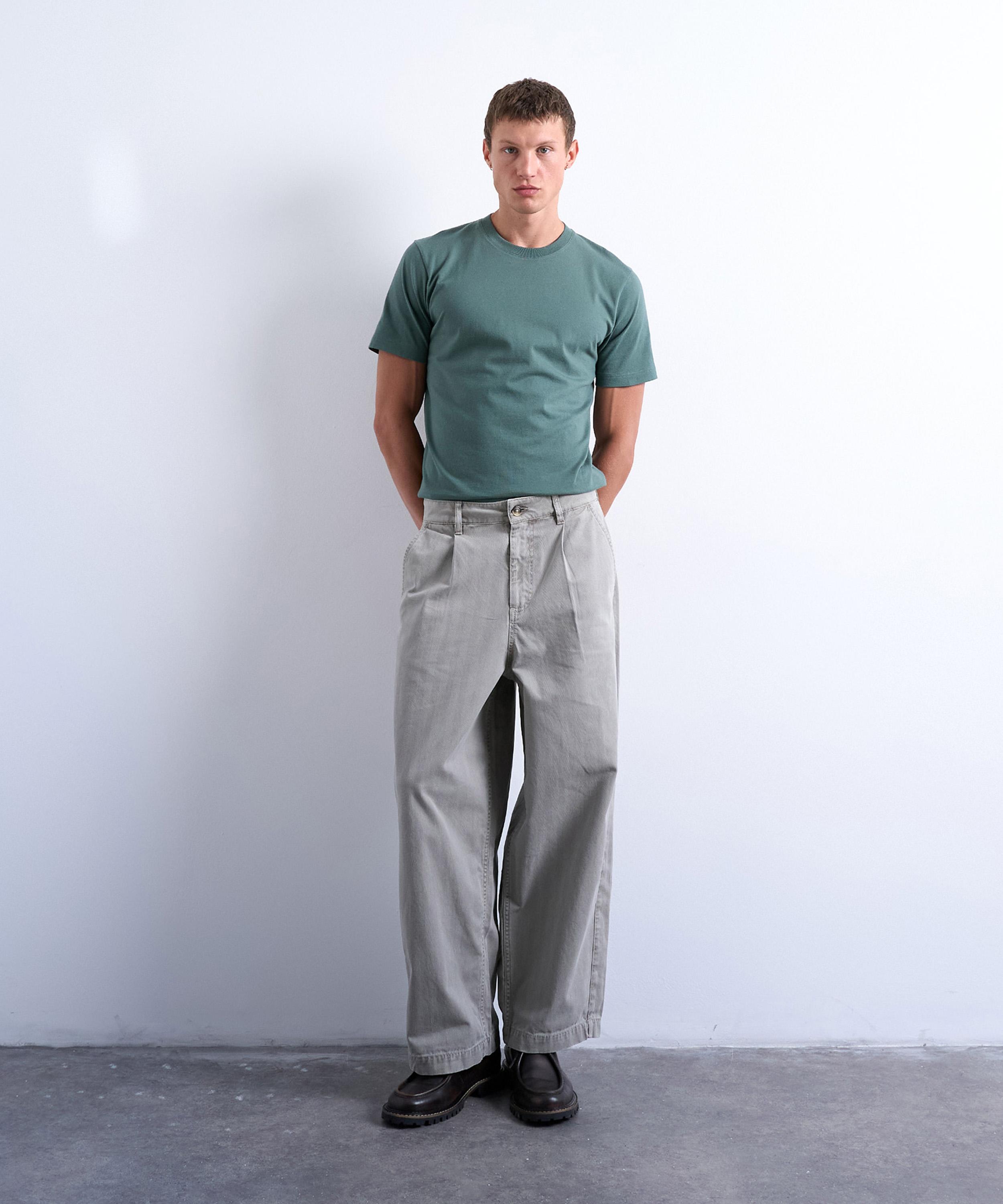 Cut from faded herringbone cotton twill, they feature a regular-rise, barrel-leg silhouette complete with belt loops, functional pockets, and a button-and-zip fly. Effortlessly versatile, they pair perfectly with everything from relaxed tees to refined knits.