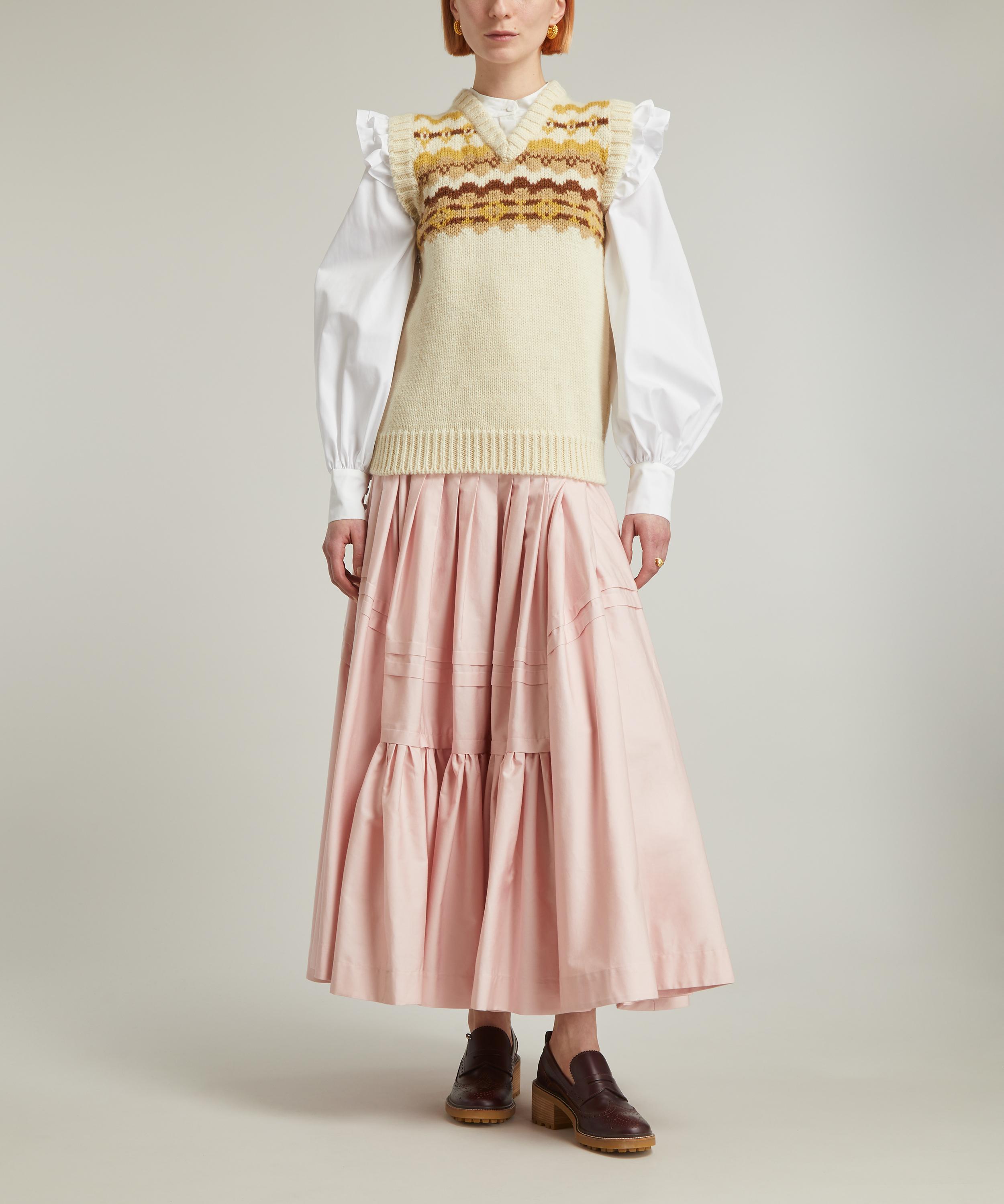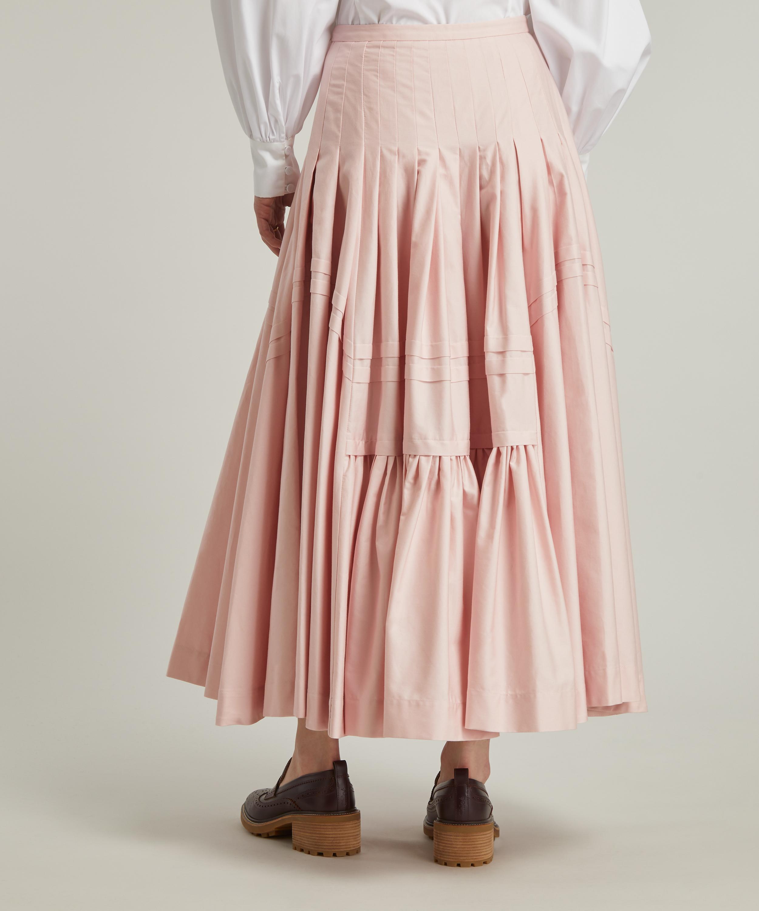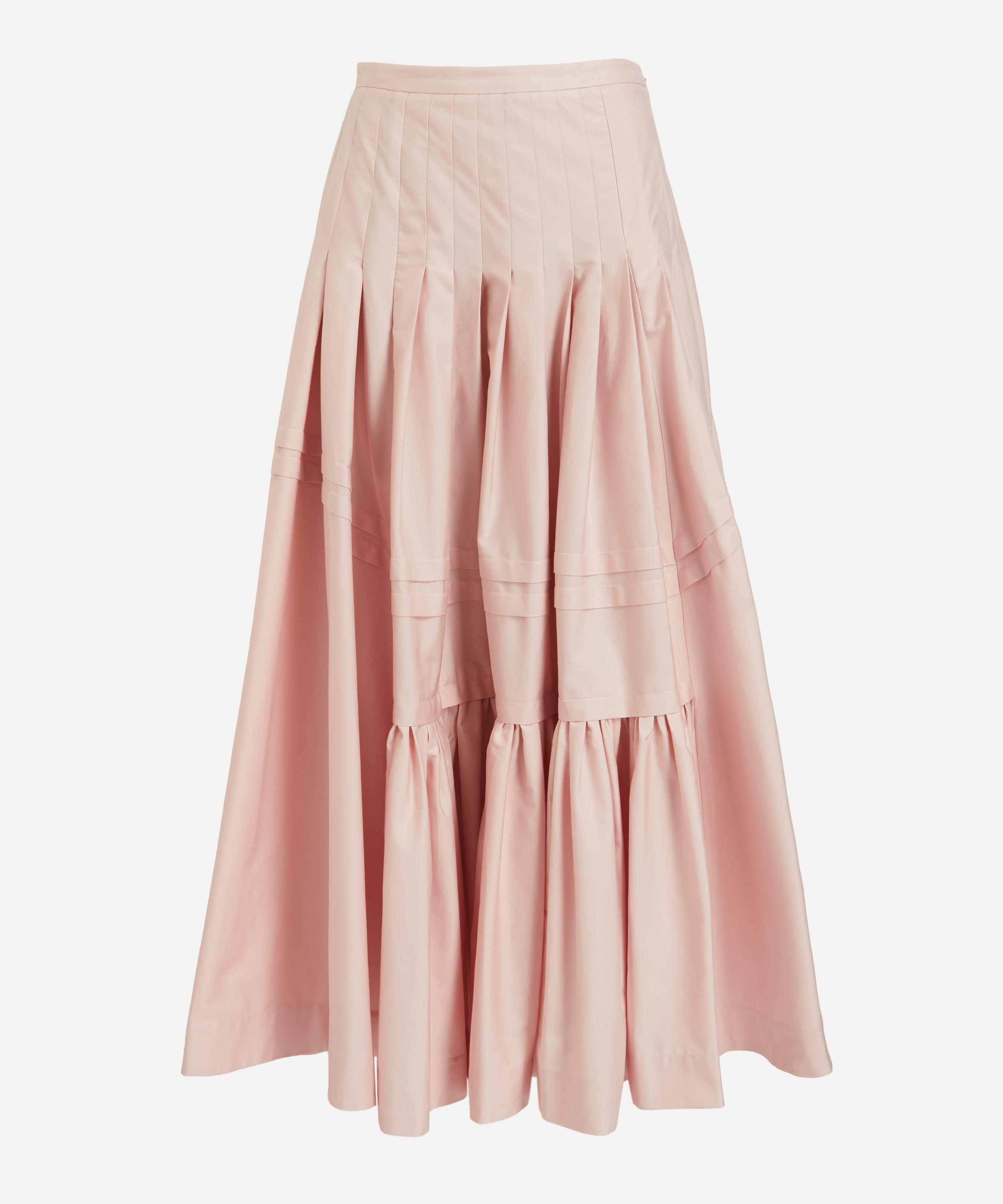 Fabled for her intricate pleats and playful proportions, this powder-pink midi length skirt showcases Molly Goddard’s signature pintuck-pleating technique. Effortlessly flattering with its elegant A-line silhouette, it has pintucks on the front and back, as well as a gathered front panel for a flouncy finish.