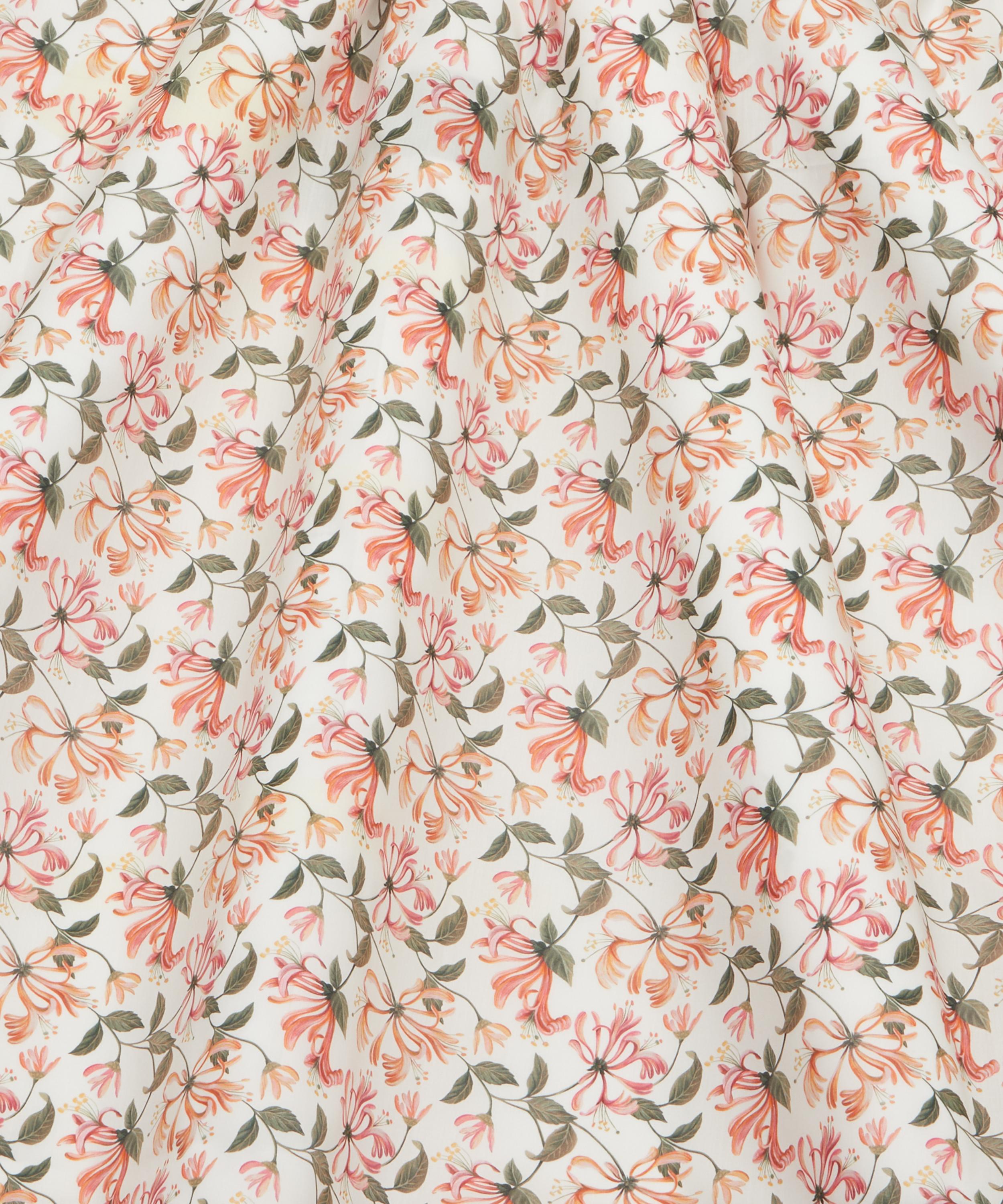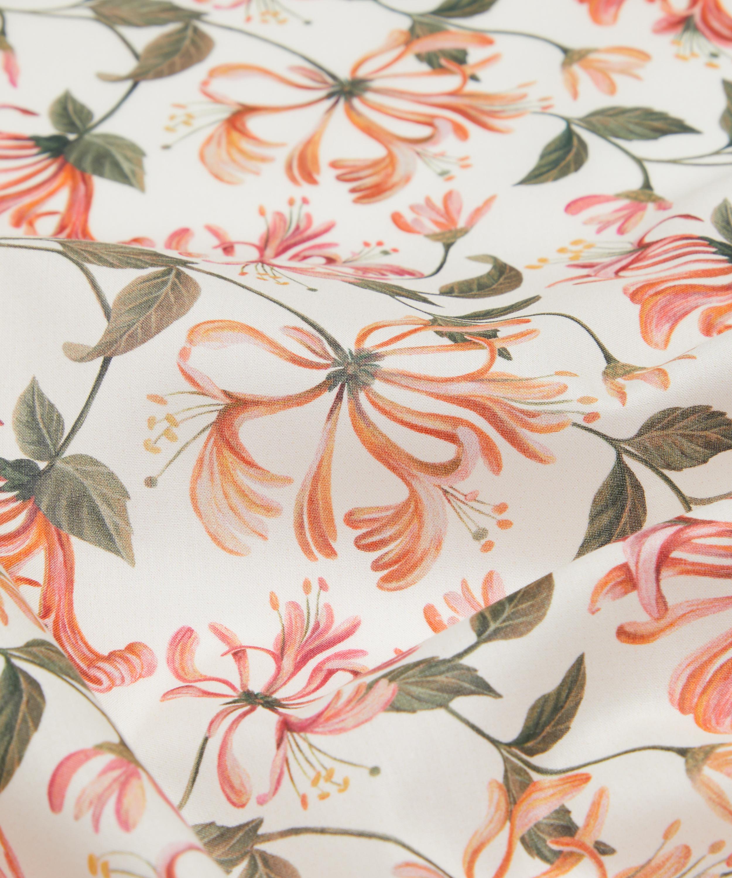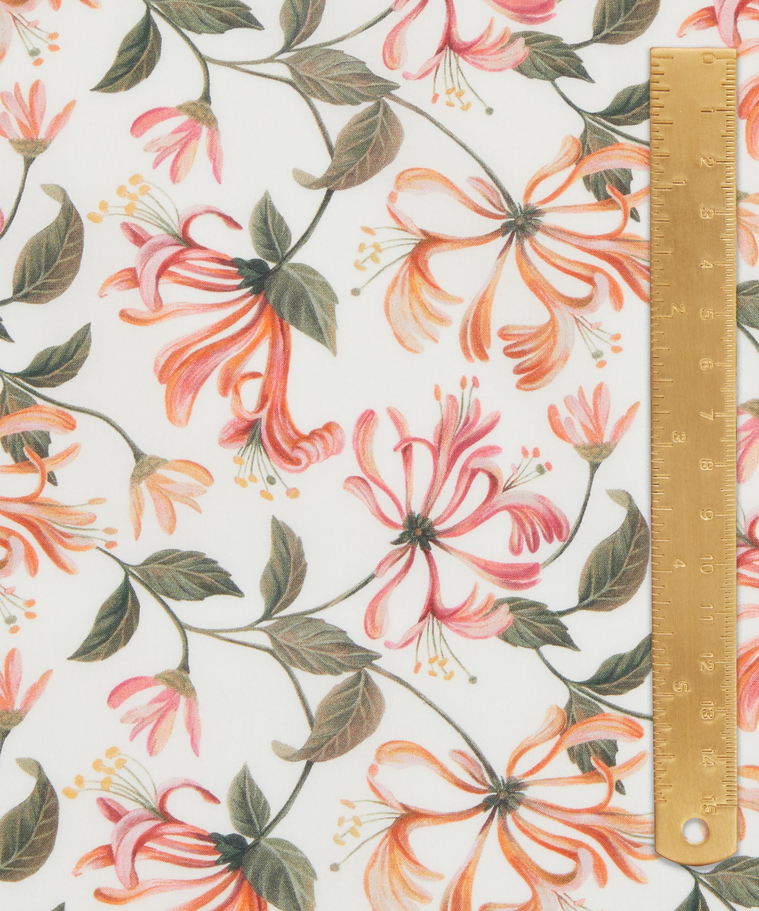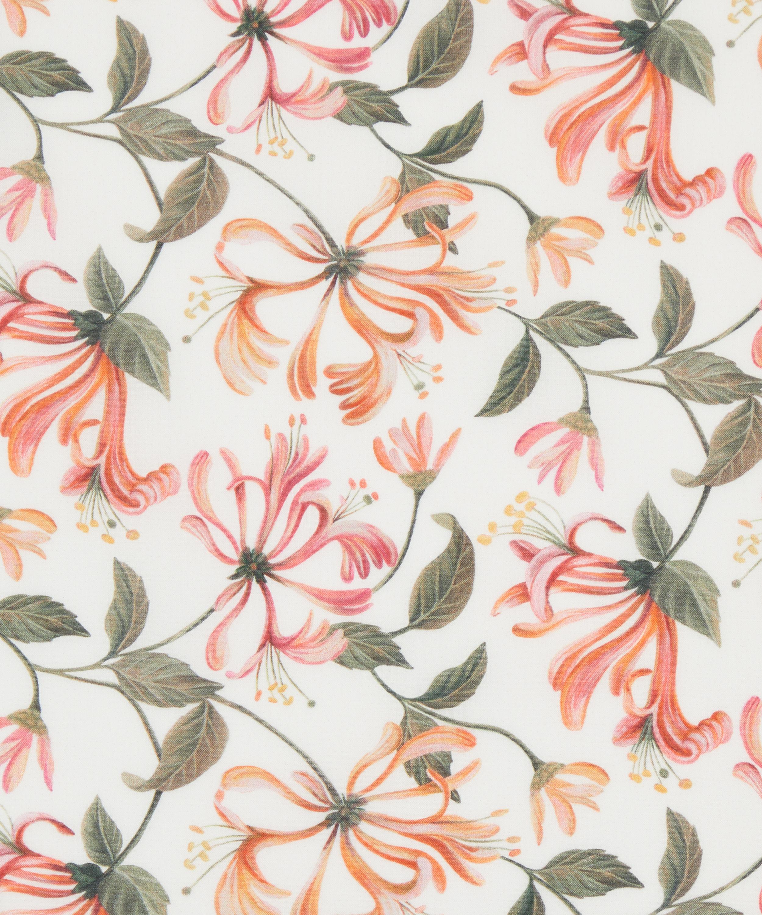 Honeysuckle Dance has been delicately painted in watercolours to create this trailing, multidirectional floral design. This print is part of the Floral Library narrative of the AW24 collection, which studies the subject through the Botanist’s eye, cataloguing and exploring an assortment of species as well as a being a celebration of key florals throughout Liberty’s history.