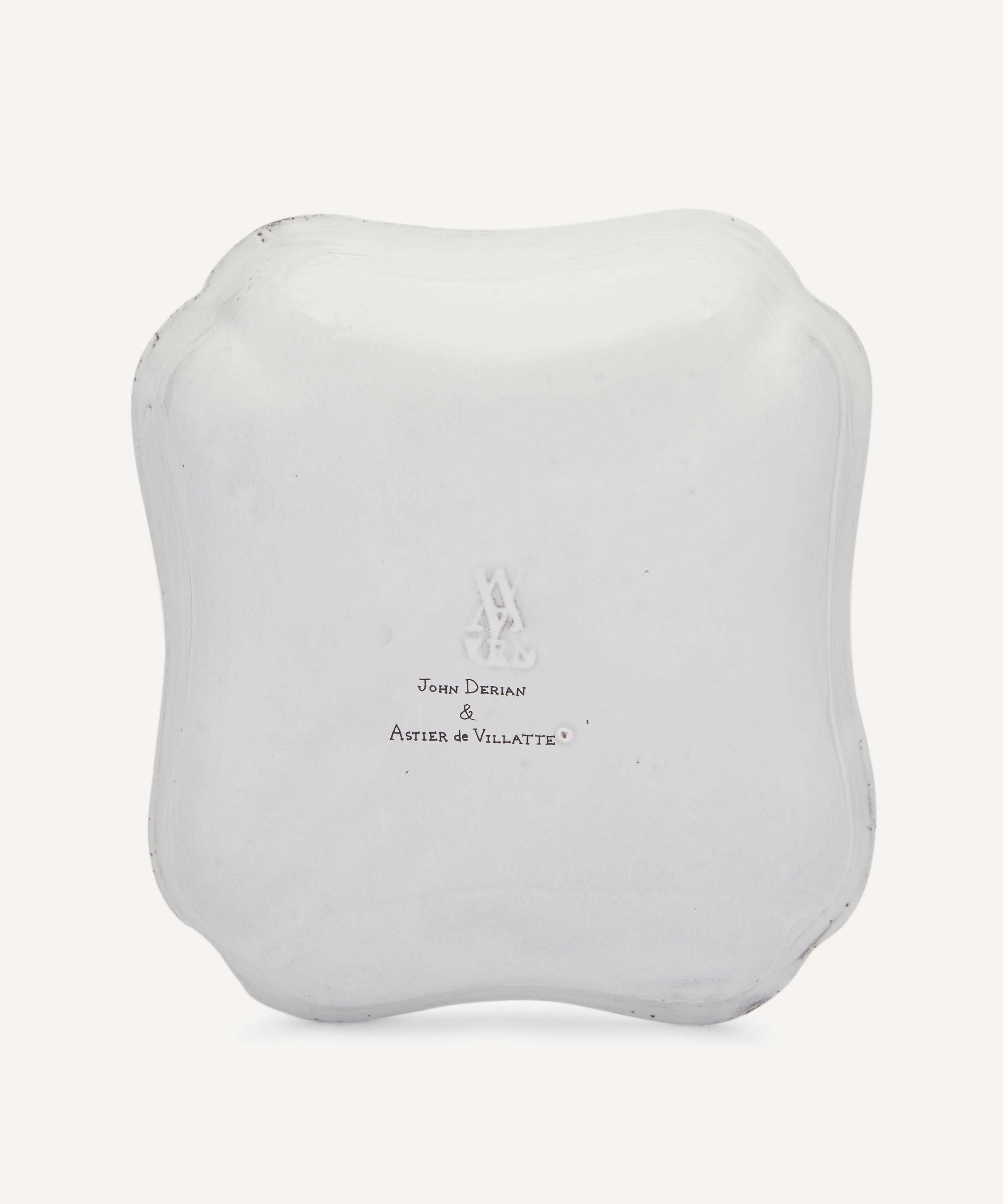 Votary of pre-industrial fabrication, Astier de Villatte is celebrated for being the one and only studio in Paris to hold and harbour the traditions of artisanal ceramic production. Restoring the ancestral systems of moulding and stamping, the Hydrangea soup plate is made using handcrafting techniques from the Middle Ages which involve moulding a handmade sheet of clay, double firing the ‘biscuit’ piece and glazing the product in white enamel – a lengthy process that involves a drying time of up to one month. Characterised by John Derian's hydrangea découpage, the soup plate is engraved with the brand’s signature crest - depicting an interlacing A & V - alongside the initials of one of the 40 master artisans who created it. Each handmade piece tells a beautiful story, it romances and imparts a sense of nostalgia into its owner. Arrange with other glazed bowls and plates in the collection to breathe an air of authenticity into your dining collection.