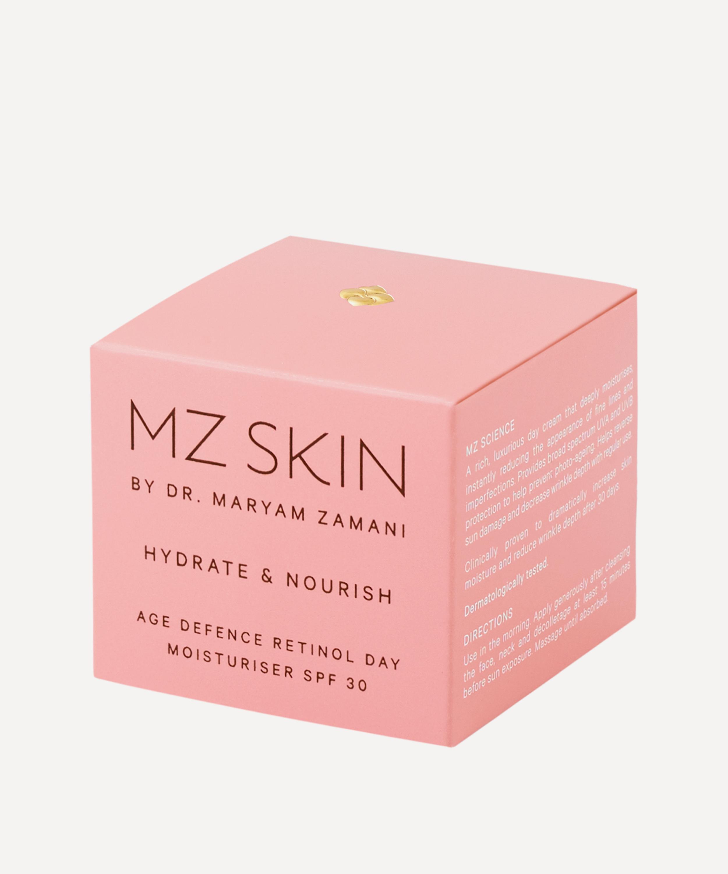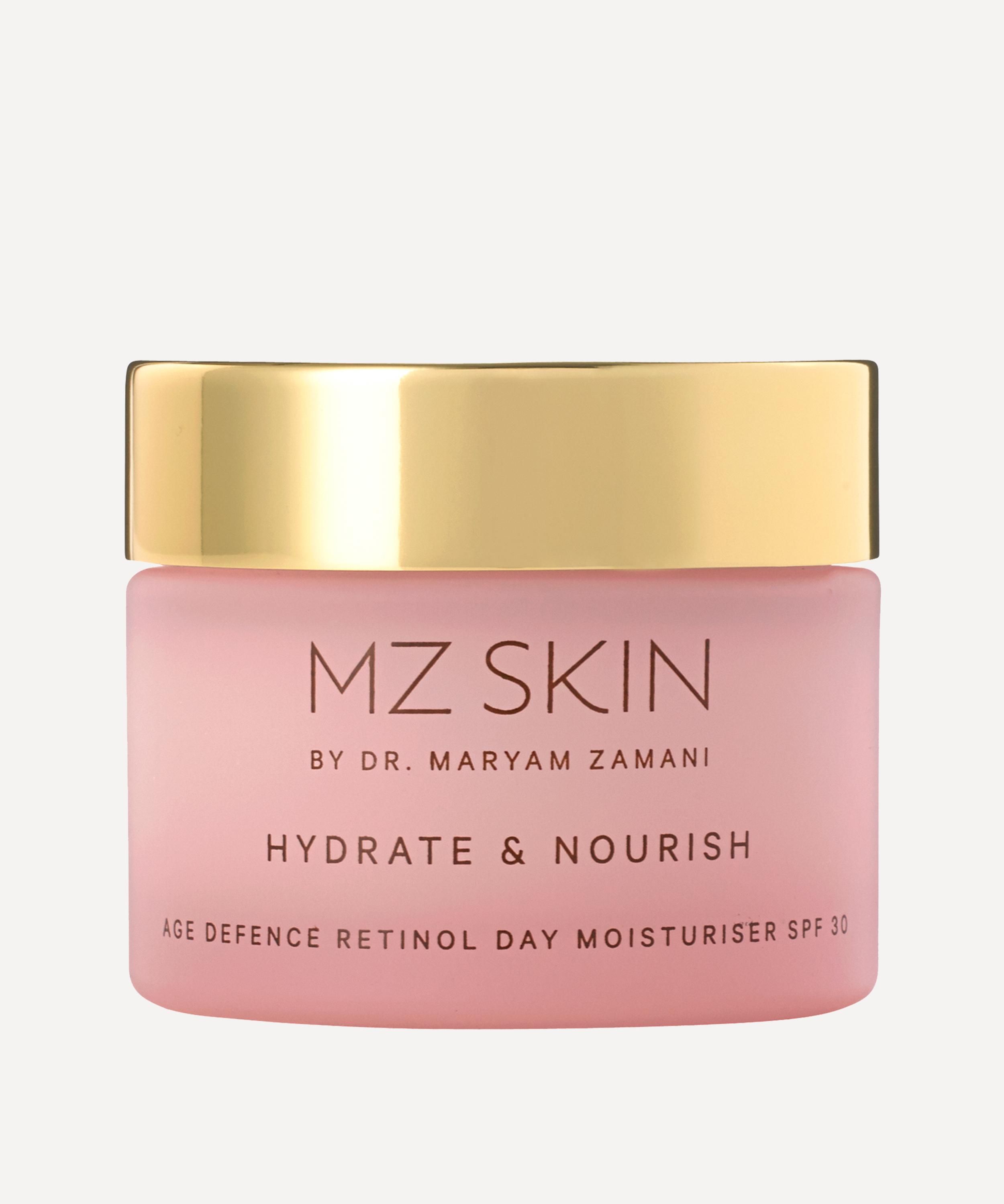 HYDRATE & NOURISH Age Defence Retinol Day Moisturiser from MZ Skin contains retinol and SPF 30 to simultaneously refine the complexion and offer essential sun protection.