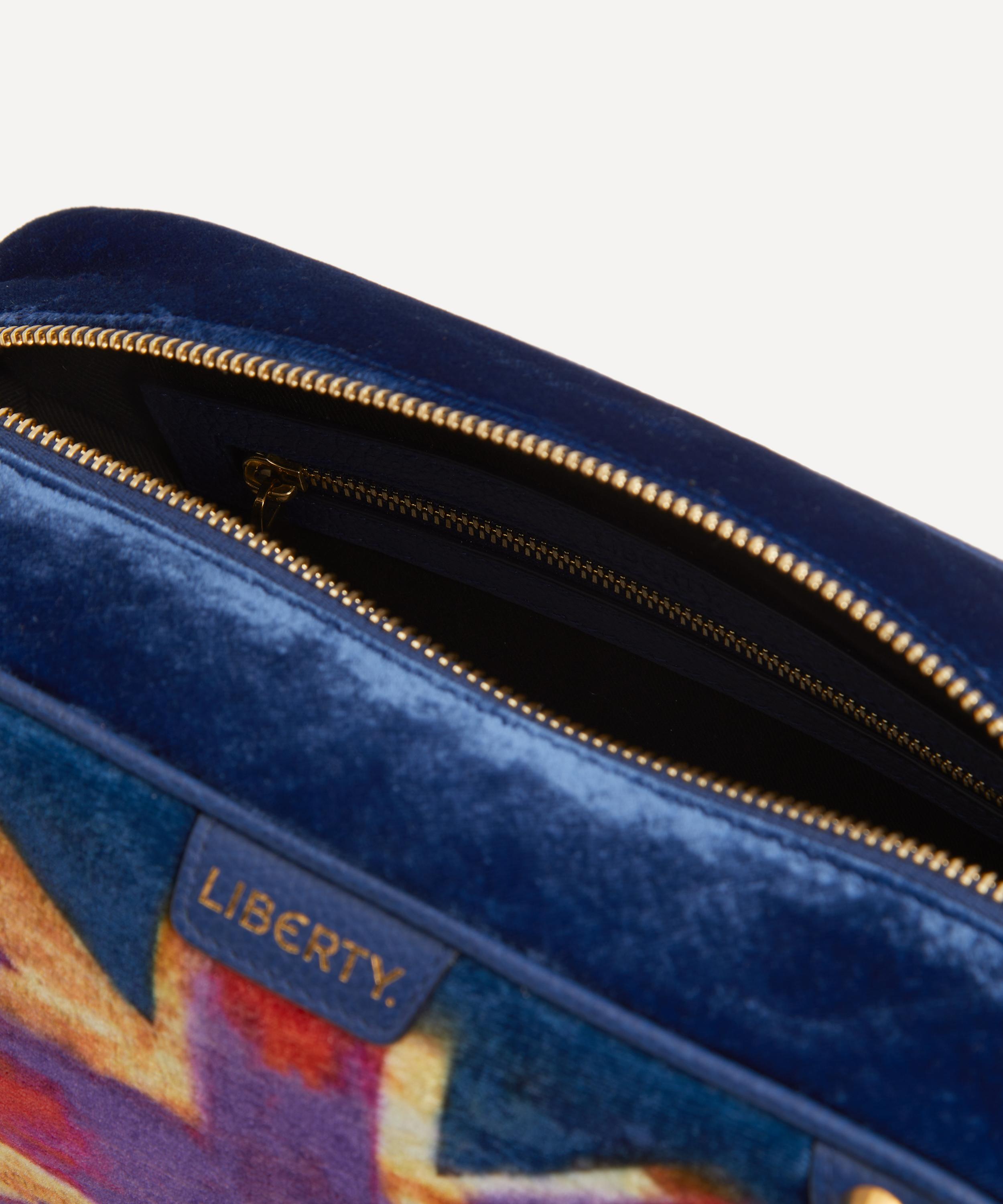 Masterfully crafted in Italy from a satin-velvet devoree in our custom Hypernova print, The Carnaby Camera Bag features a streamlined silhouette with a top zip closure and an external zip pocket. Defined by a gold-foiled Liberty logo, it blends functionality with a refined edge through its studded detailing, internal pocket and spacious interior, perfect for every day. Complete with an adjustable, detachable leather strap, it can be worn over the shoulder or across the body.