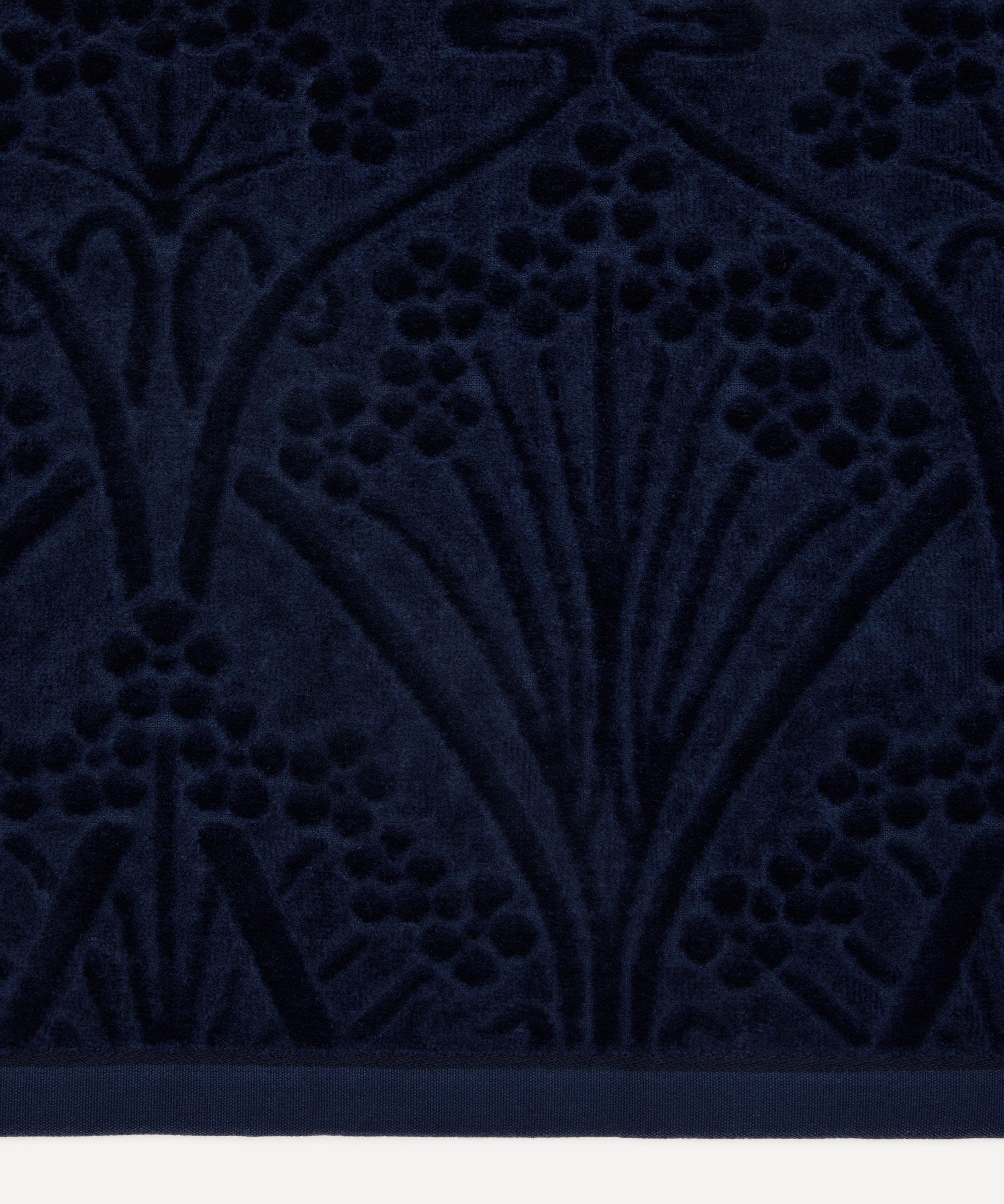 Liberty’s Ianthe bath towel is made from luxurious cotton, expertly crafted using a double face terry and velour technique. Part of the Arts Club collection which pays homage to Liberty’s iconic eccentricity, this towel is printed with a contemporary version of Ianthe – a jewel of the ‘60s Nouveau revival, it features highly stylised violet flowers in a sinuously interwoven pattern, reimagined for interiors in a modern, two-tone design.