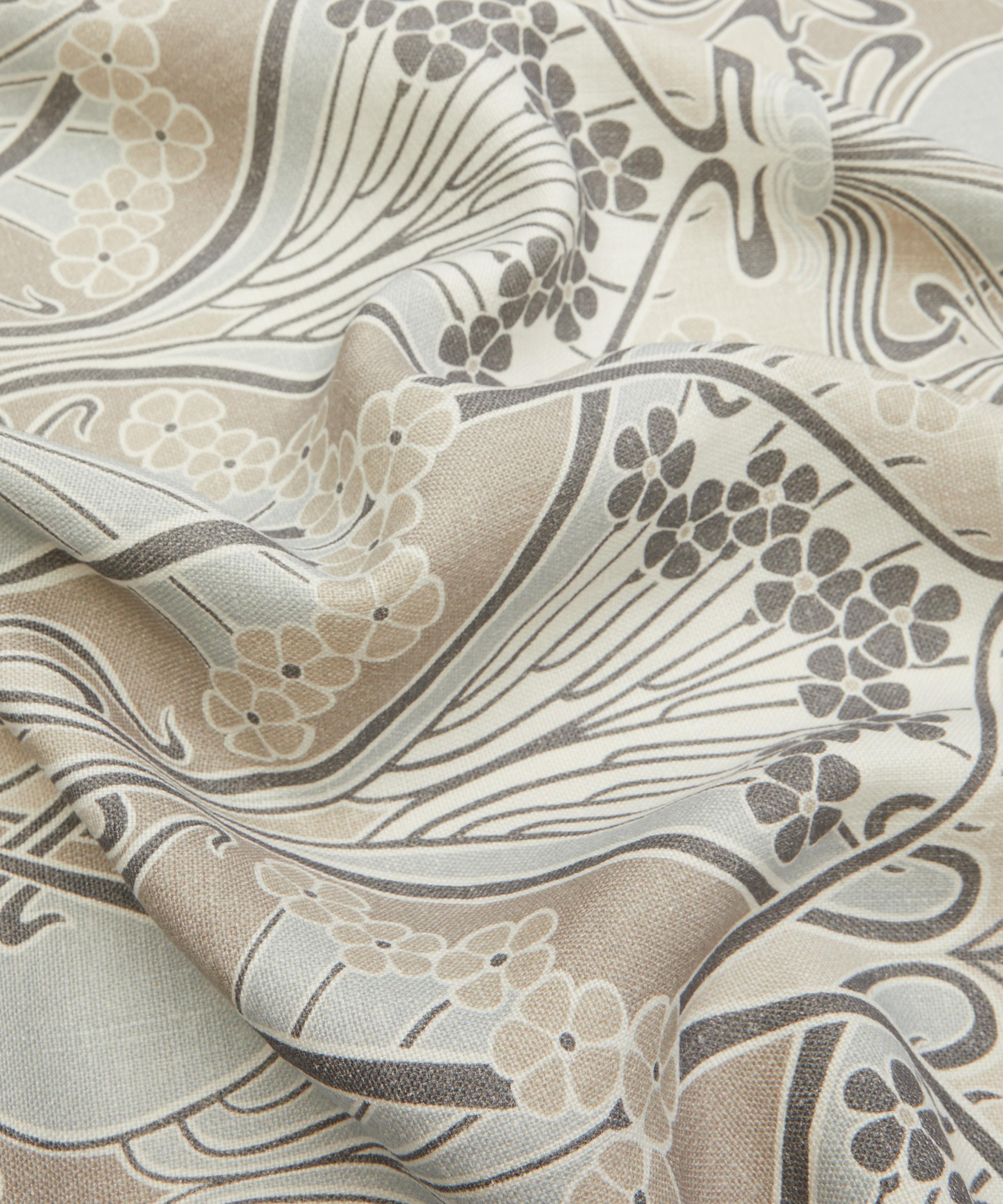 Designed by French artist R. Beauclair in c.1902 and first printed for Liberty in 1967, Ianthe is an iconic example of Art Nouveau design, with its highly stylised flowers arranged into a sinuous layout. It is expertly printed in Italy onto our Ladbroke linen – a beautiful heavyweight base created from pure linen. Ladbroke linen has an excellent drape due to its superior weight, and is also well-suited for use in domestic upholstery. The fine weave allows a beautiful print interpretation.