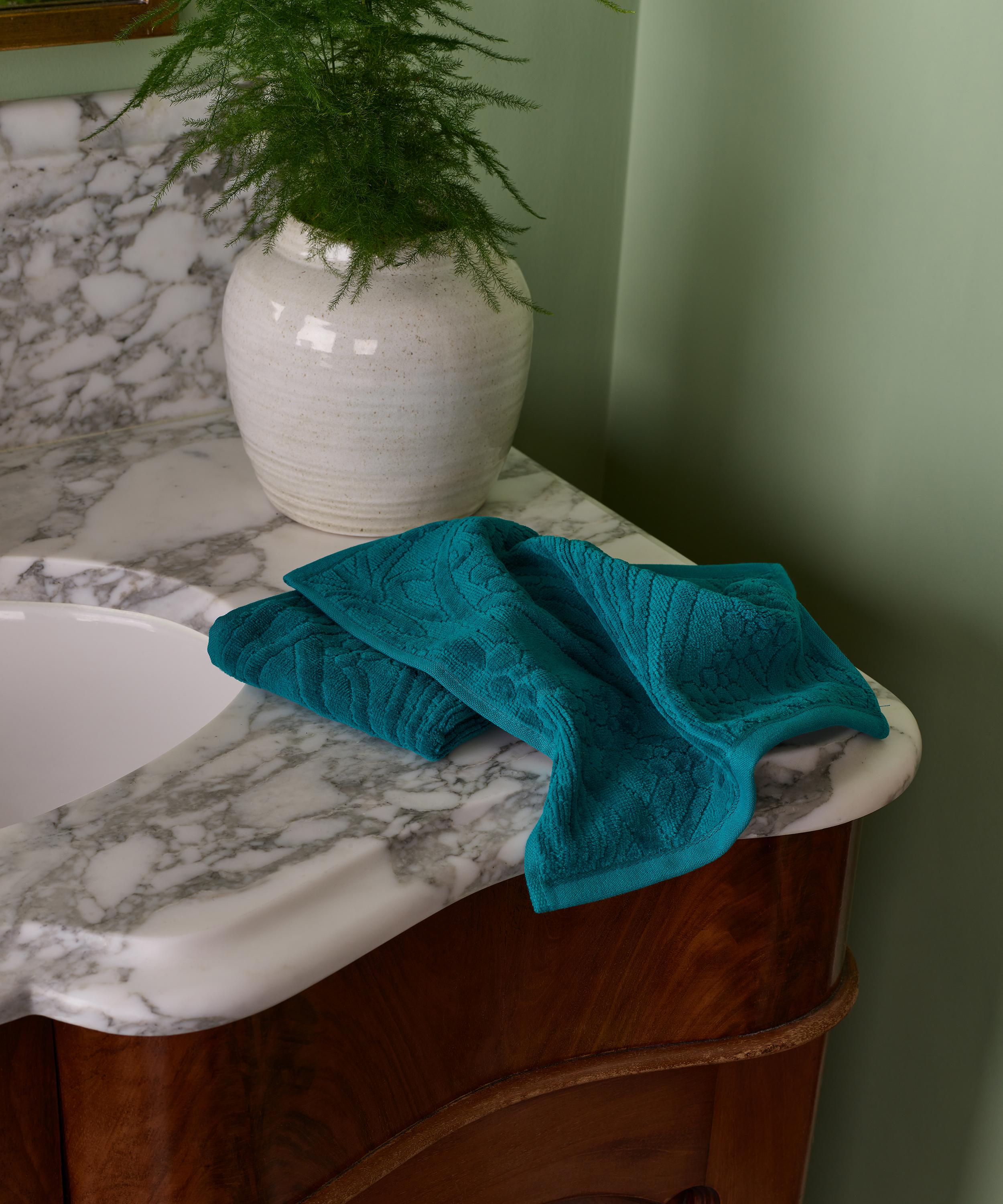 Elevate your space with the Ianthe hand towel – featuring a sumptuously soft cotton towel in our Ianthe design that will effortlessly infuse your bathroom set-up with a touch of print.