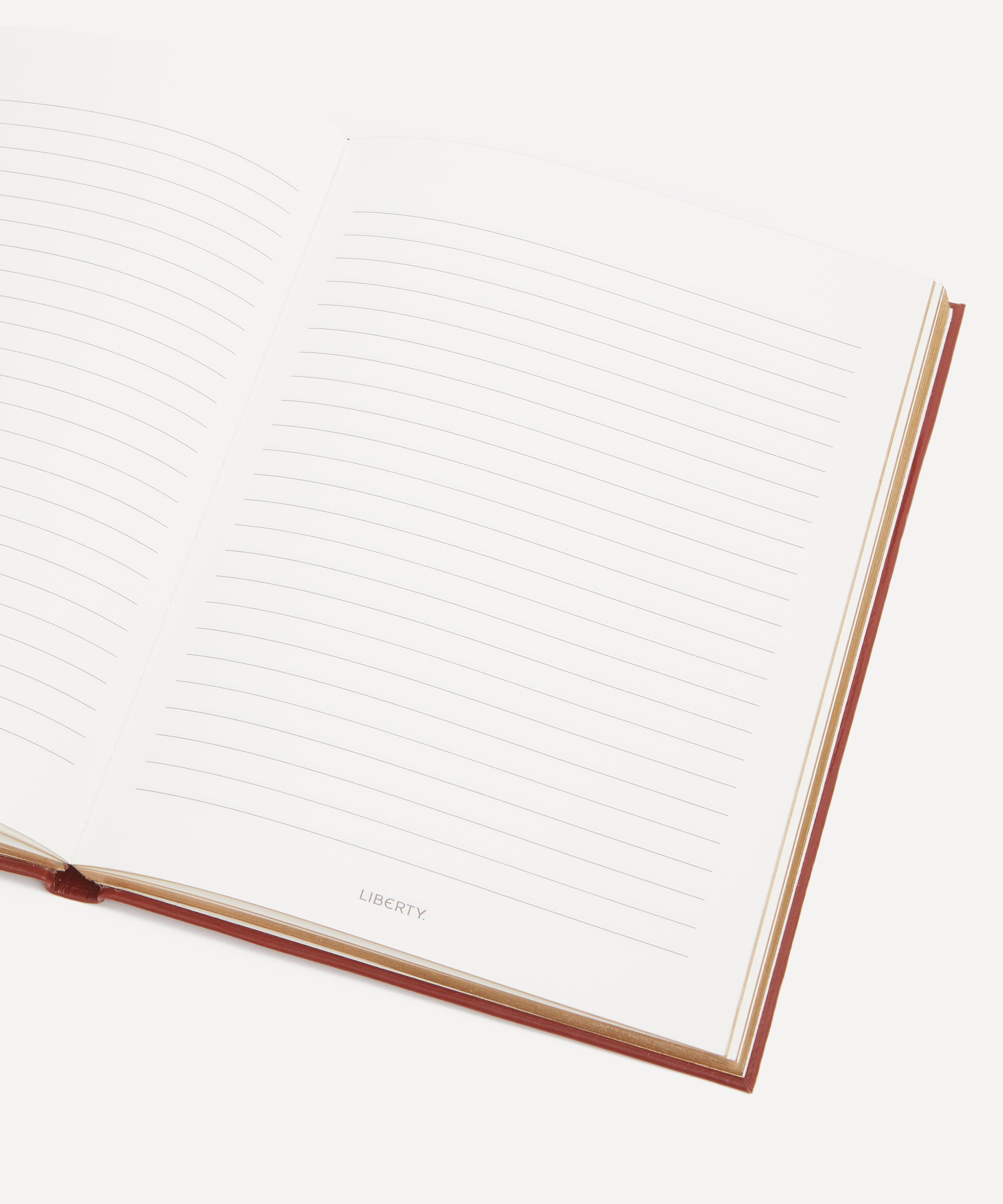 An elegant addition to your desk or handbag, this large leather Liberty notebook features our iconic Ianthe print in embossed form, adding a hint of character and dimension to your journalling. Bound and boasting a metallic trim around each page, consider this your new go-to for flashes of inspiration – or for simply recording your brightest thoughts and ideas.